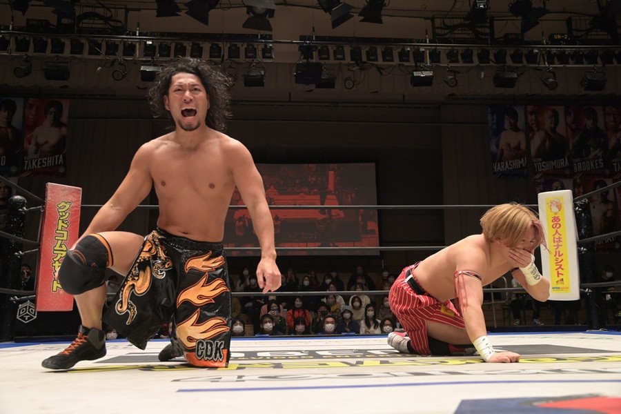 CDK(クリス、高梨)はBブロックで勝ち点4止まりで決勝に上がれなかったものの、公式戦でHARASHIMA組を破っており、同チームの全勝を阻んでいた。CDKがリングインすると、HARASHIMAが「このベルトを懸けて僕たちとタイトルマッチやりましょう」と指名。高梨は「オマエらに勝ったけど決勝に残れなかった。DDTで一番強いタッグチームはオマエら。でも最もドラマチックでドリームなチームはCDK。タイトルマッチ、やろうじゃないか。勝って、それを証明してやる」と受諾。HARASHIMAが決戦の場を3・20両国に指定し、同大会でのタッグ選手権戦が決定した。