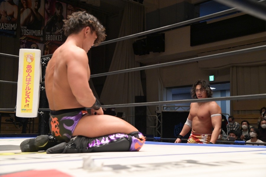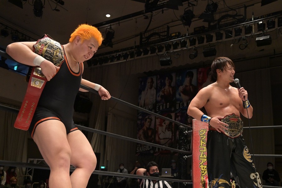 一方、優勝決定戦で散った竹下は「この2人でタッグチャンピオンになるというのが、すごくドラマチックドリームだなと思って狙ってましたけど、あと一歩届かず。でも、咲くやこの花タッグとして、今日の2試合は一つの集大成というか、僕たちでしか見せられない試合ができたと思います」と、上野は「リーグ戦で僕とタケちゃんで組めることなんか、これからチャンスは少ないだろうけど。僕らがプロレスやってる間に、2人でKO-Dタッグチャンピオンとして、咲くやこの花に行きますから」とコメント。
