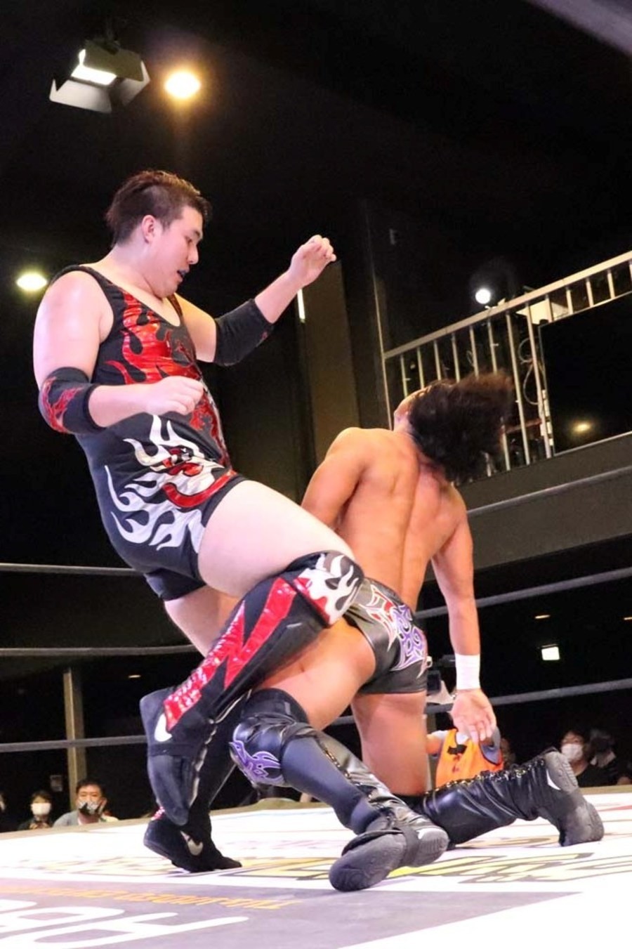 中村はデビュー戦以来の吉村とのシングルマッチ。吉村のパワーに押される中村。何をしてもビクともしない吉村に苦戦を強いられたが、ブレーンバスターを着地するやホイップ式のドロップキックで形勢逆転。スワンダイブミサイルからミドルキック連打で吉村に襲い掛かる中村。しかし吉村は逆水平で動きを止め、さらにミドルの蹴り足をラリアットで撃墜する。中村は諦めずハイキックからウラカンラナもカウント2。吉村はショルダーアタックから串刺しラリアット、垂直落下式ブレーンバスターから最後も右腕を振りぬいて勝利した。
