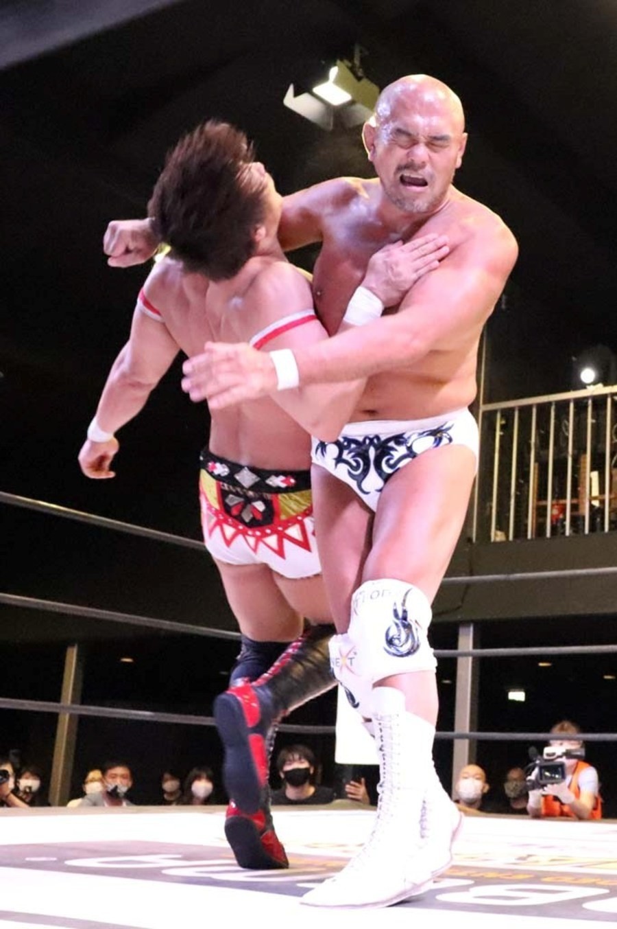 竹下 それはもう、俺はずっといままで彼とやったことないから、いままでの違いを全部感じてますよ。彼の知らないところばかりだから。ただ、彼も俺の知らないところがある。だけど俺、もうちょっと引き出しあるんで。もしかしたら本番、もうちょっと違う何かがあるのかもしれない、ないかもわからない。やってみないとわからない。俺は彼の動き十分わかったし。俺が唯一彼に勝てないとしたら、若さだけだよ。あとは全部勝ってる、俺が。だから若さでこいよ。若さと勢い。たぶん俺に勝てるとしたらそこしかない。あと何を俺に勝てる? まあ力もアイツ強いよな。