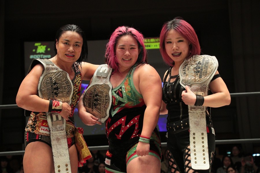 橋本 最後も言ったんですけど、男とか女とか関係なく、こうやって真っ向勝負で闘えて。そして3人でベルトを獲れて、本当によかったです。