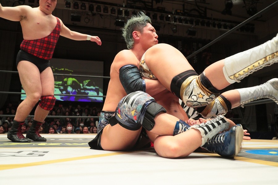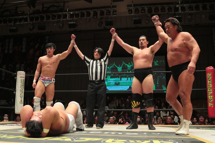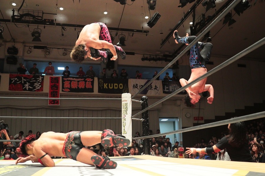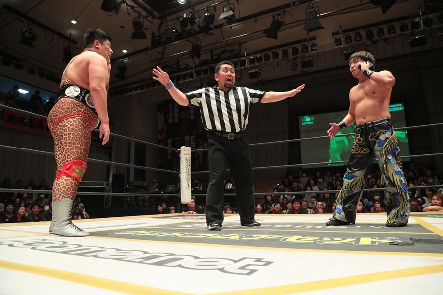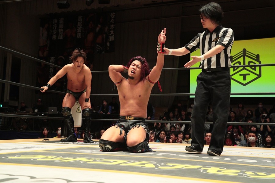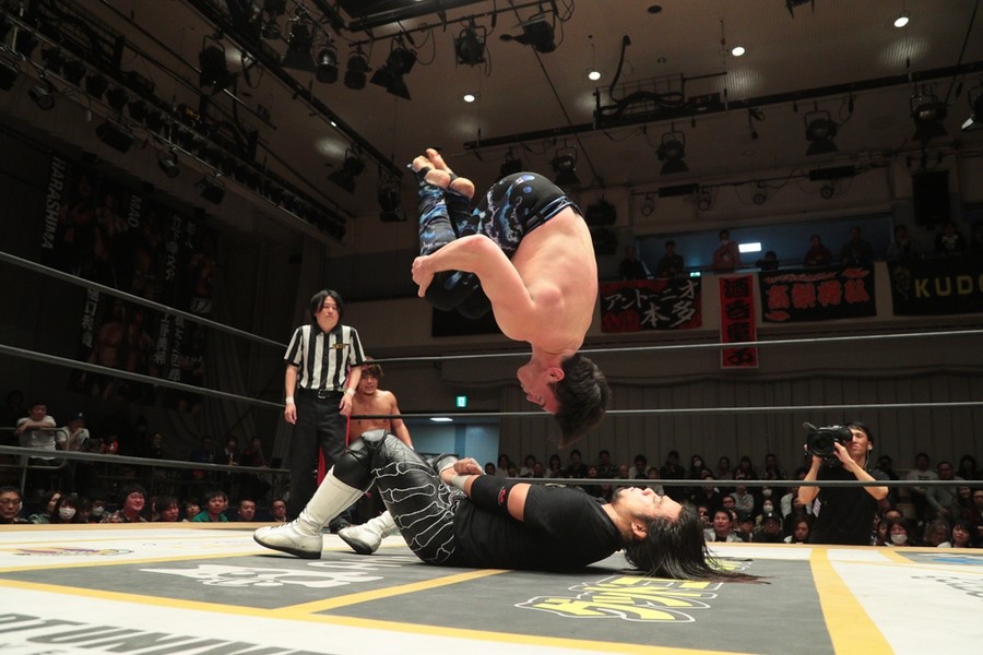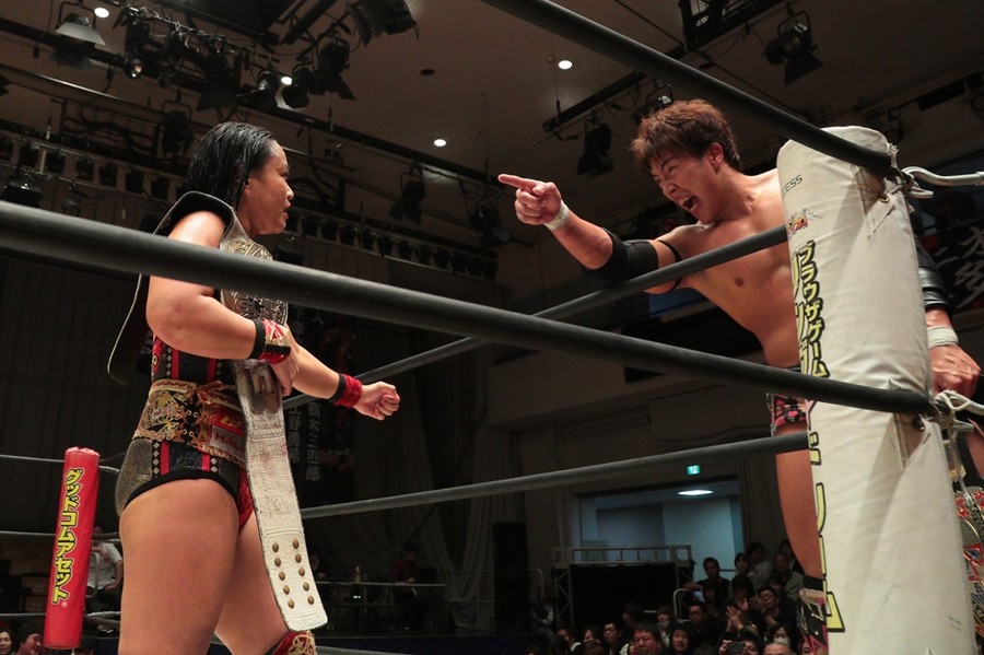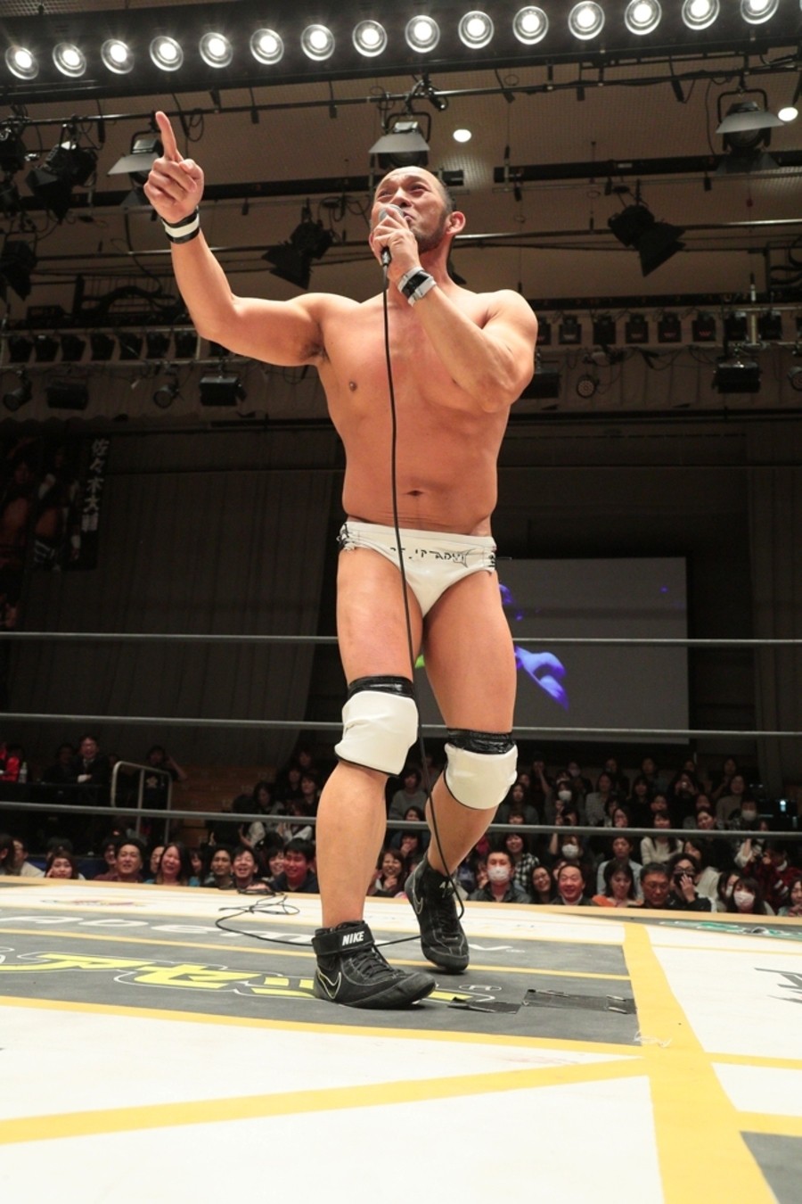 上野 長州さんは俺たちの前にラッキィ池田さんが出たのとかも、控えてる段階で気になってたのかなと思います。今日は凄くいい経験ができて、でもいただいた言葉に燃える部分もあって。4月4日の新木場、僕は自分で望んで特殊なルールでスーパー・ササダンゴ・マシン選手とやることが決まってるので。(長州から)学べる部分と、僕が好きになったDDTで面白いものを見せていけるように、もっともっとやっていきたいと思いました。