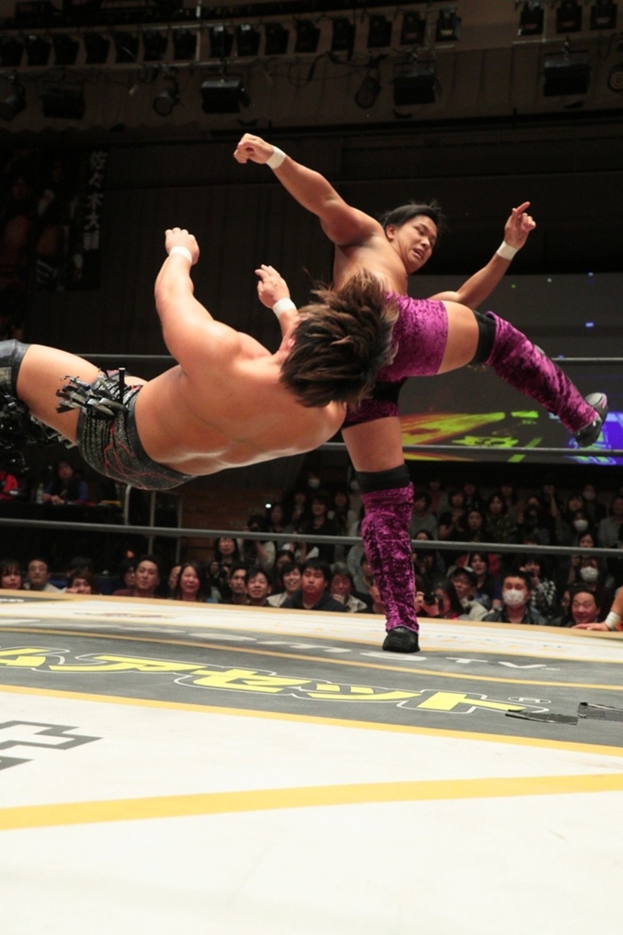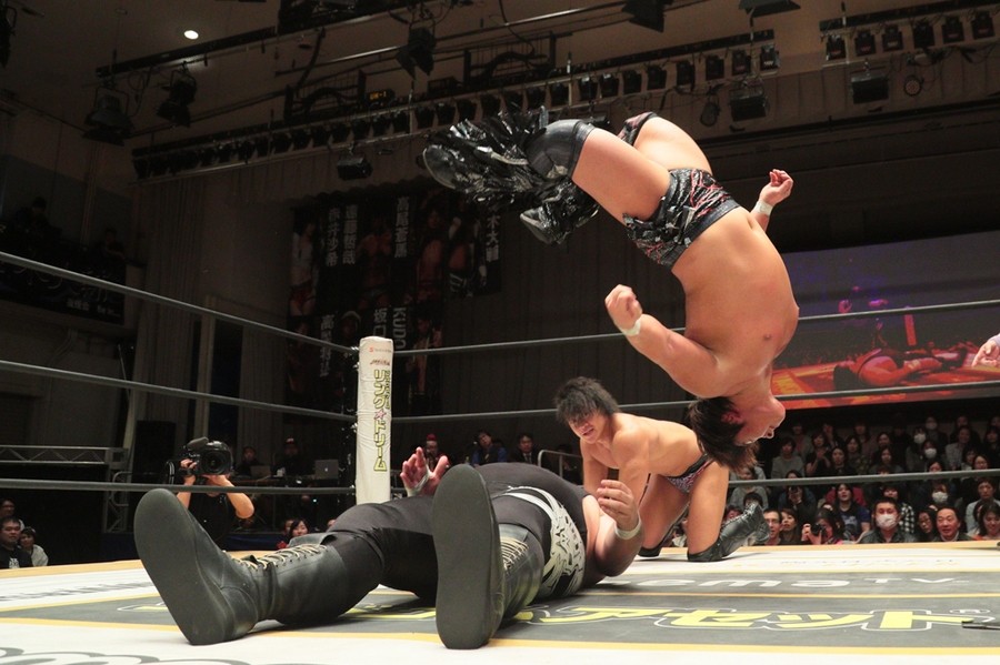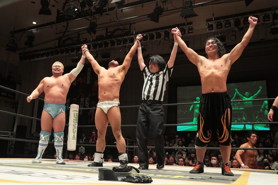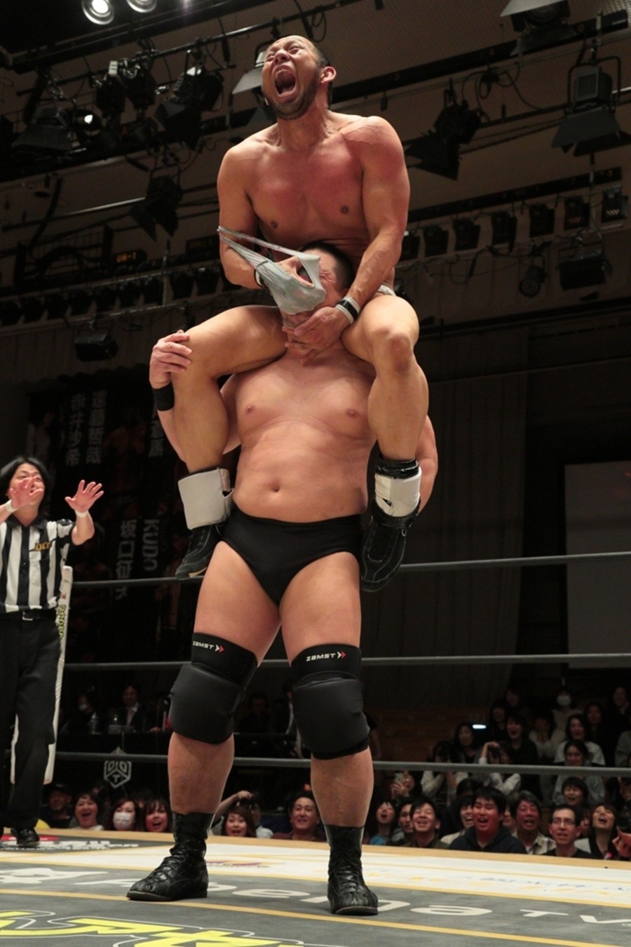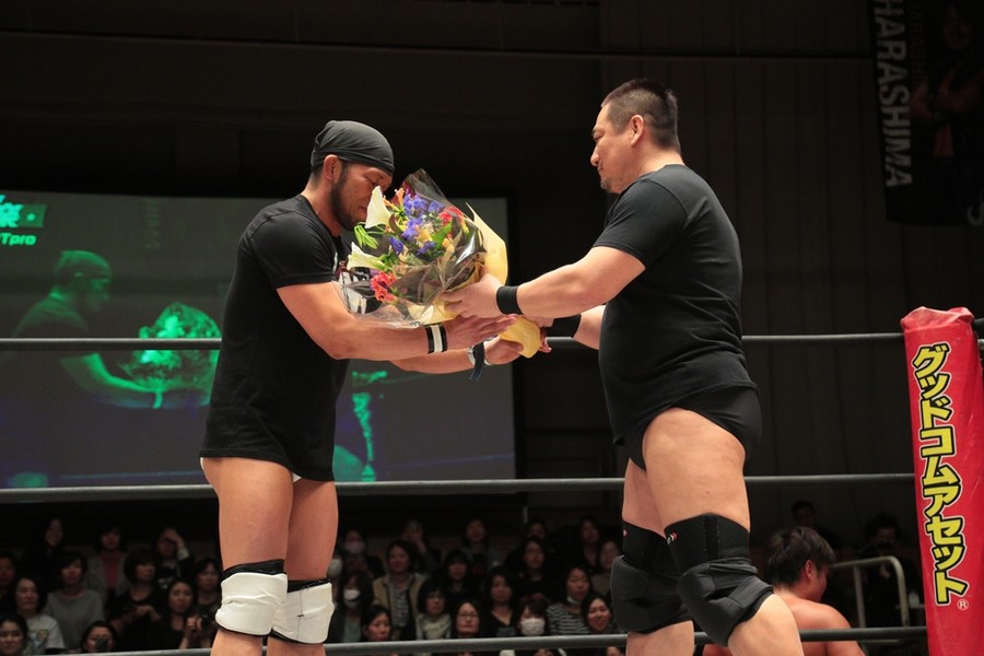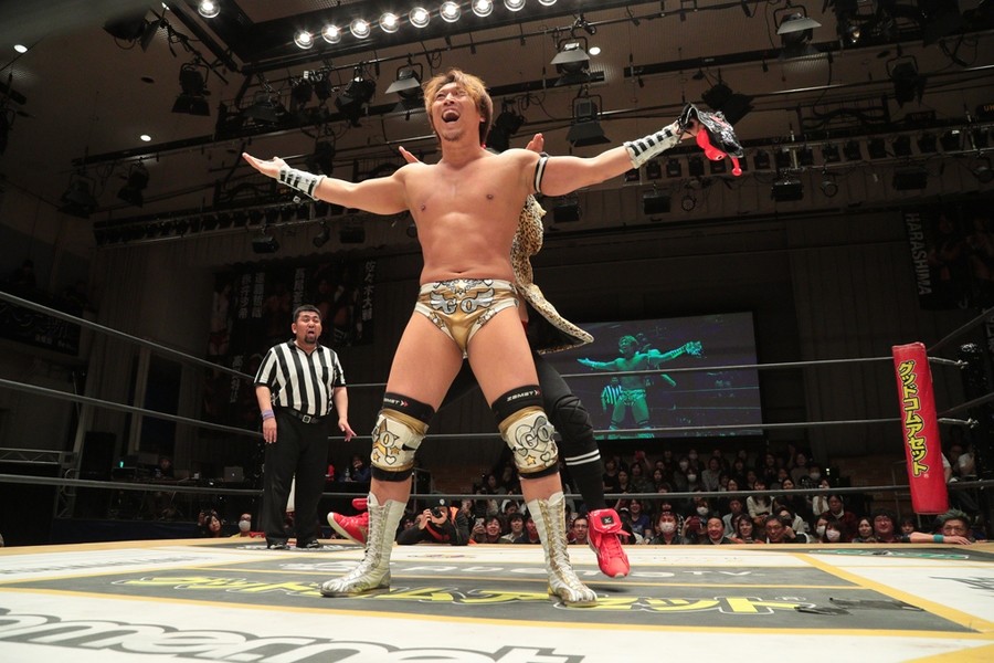 上野 長州さんは俺たちの前にラッキィ池田さんが出たのとかも、控えてる段階で気になってたのかなと思います。今日は凄くいい経験ができて、でもいただいた言葉に燃える部分もあって。4月4日の新木場、僕は自分で望んで特殊なルールでスーパー・ササダンゴ・マシン選手とやることが決まってるので。(長州から)学べる部分と、僕が好きになったDDTで面白いものを見せていけるように、もっともっとやっていきたいと思いました。