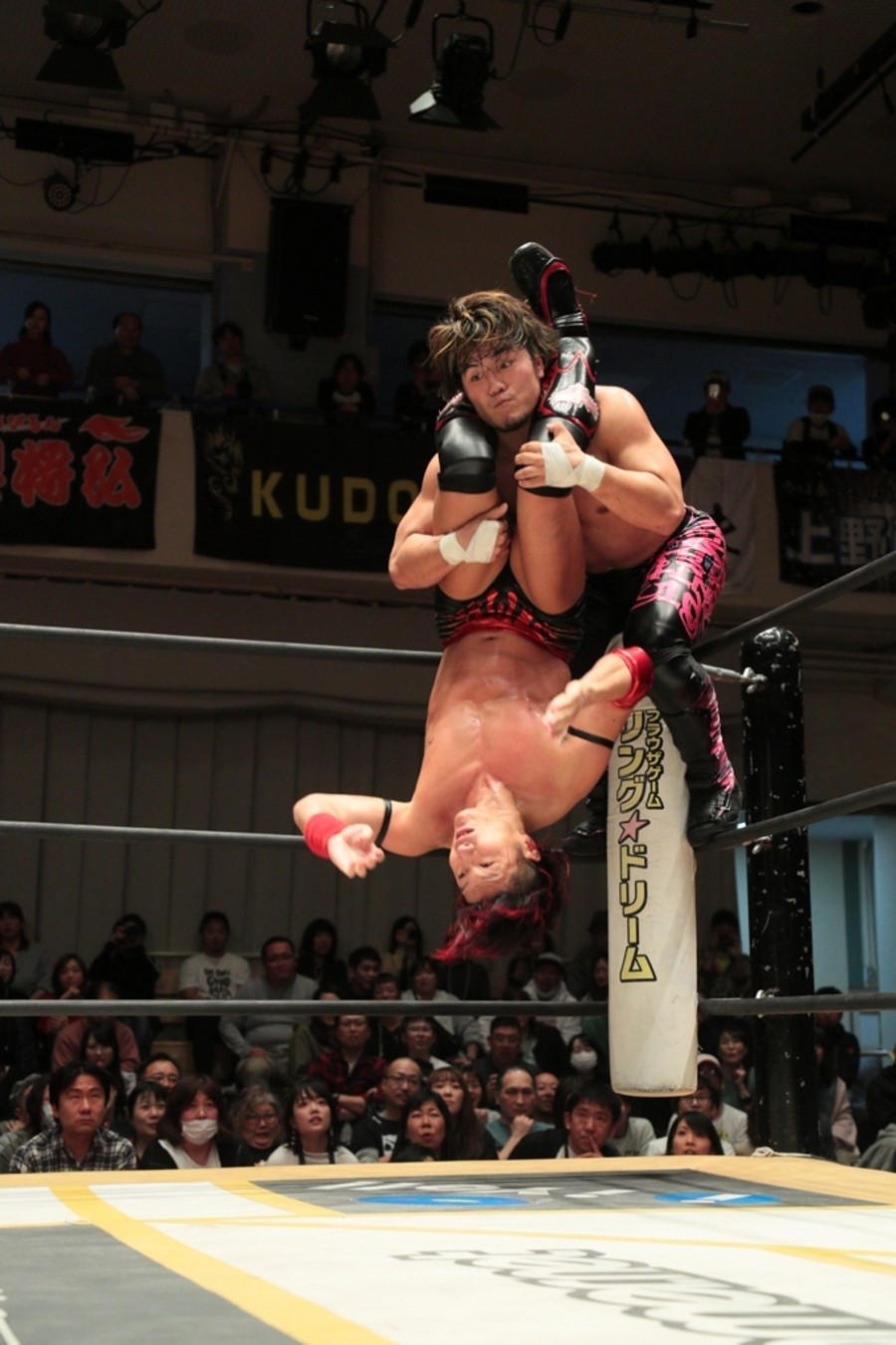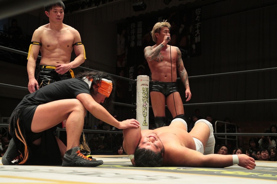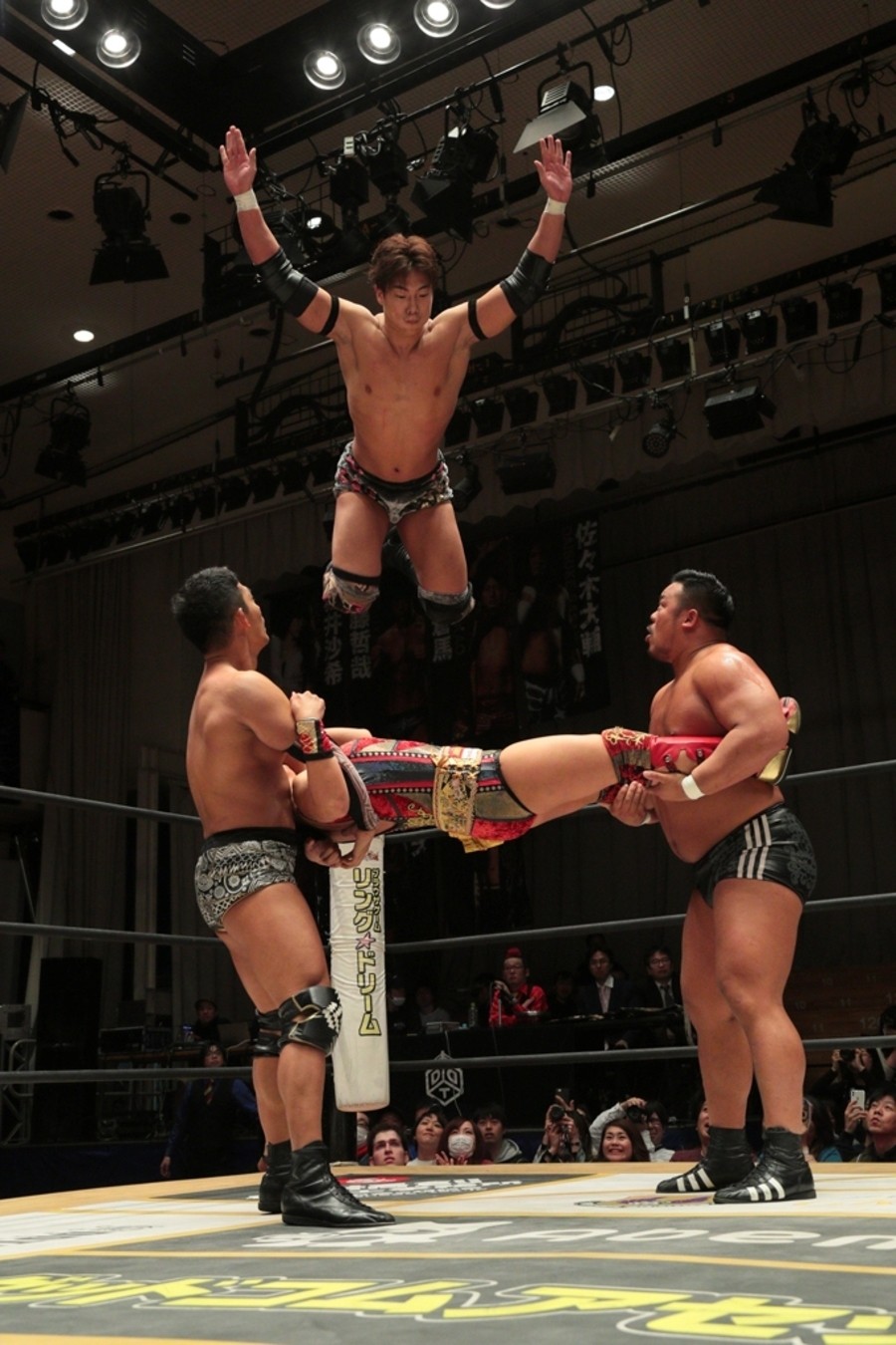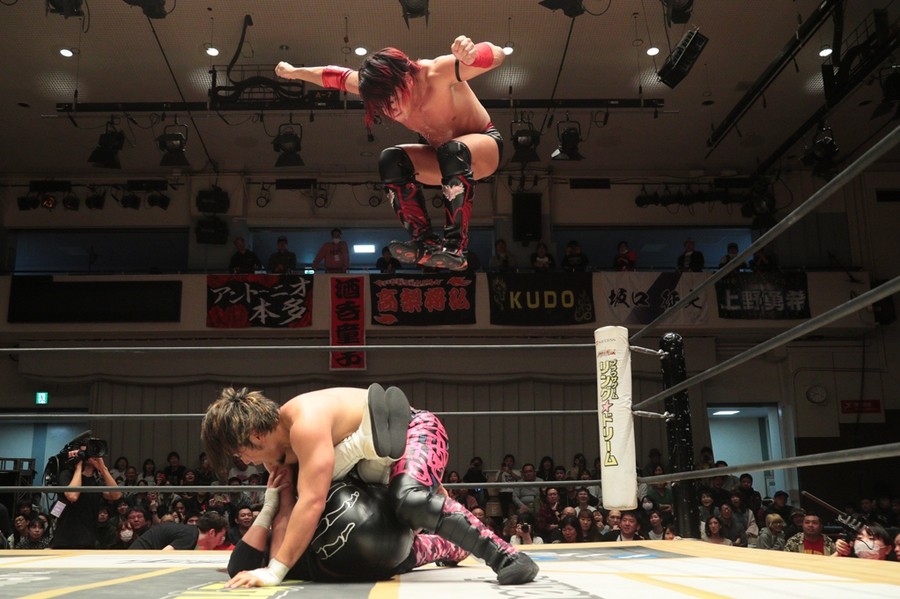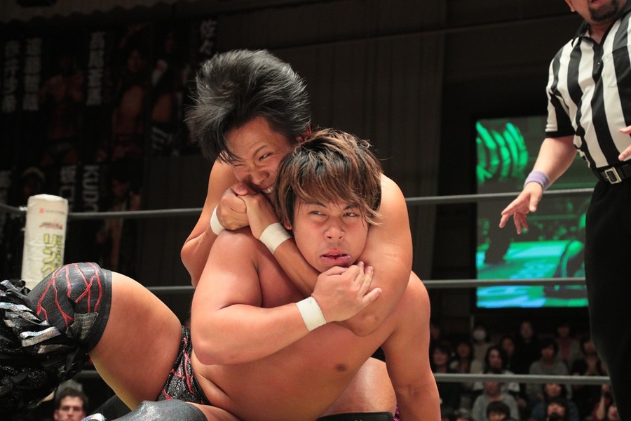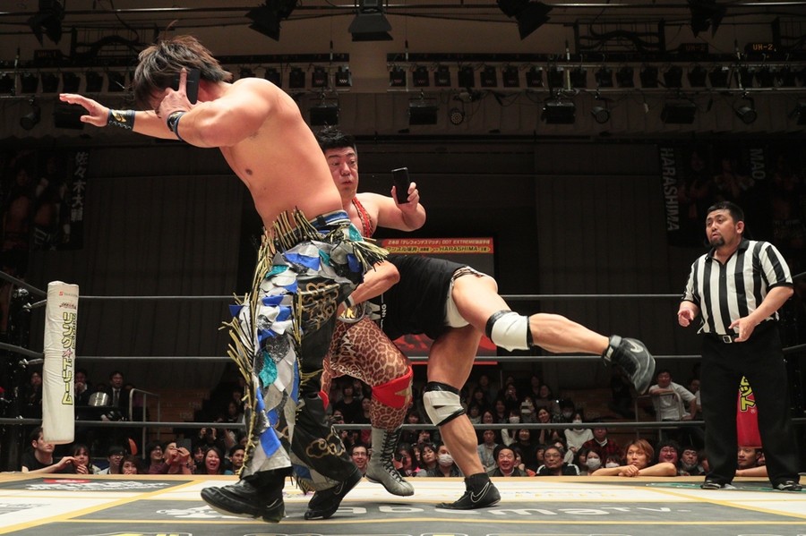 上野 長州さんは俺たちの前にラッキィ池田さんが出たのとかも、控えてる段階で気になってたのかなと思います。今日は凄くいい経験ができて、でもいただいた言葉に燃える部分もあって。4月4日の新木場、僕は自分で望んで特殊なルールでスーパー・ササダンゴ・マシン選手とやることが決まってるので。(長州から)学べる部分と、僕が好きになったDDTで面白いものを見せていけるように、もっともっとやっていきたいと思いました。