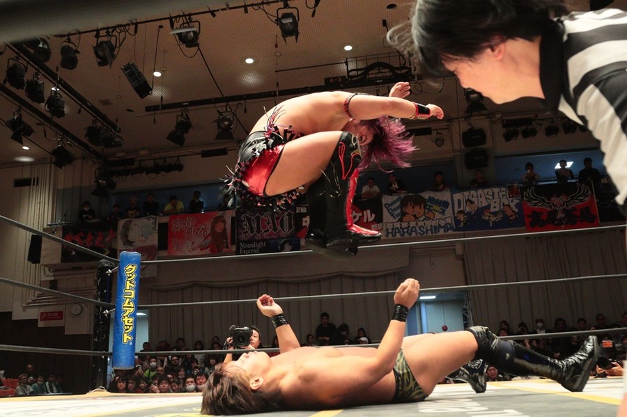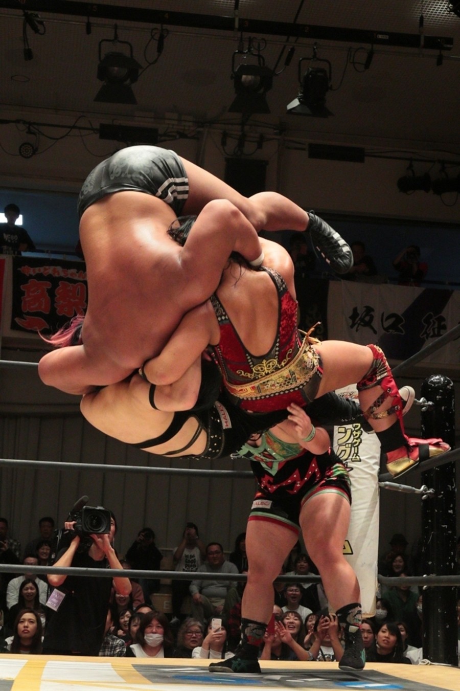 里村 仙女として、この3人が組んだ時に一番バランスがいいなと。(橋本は)力でいってくれるし、チサコはスピード。バランスがいいですよね。最後、橋本がしっかりジャーマンで仕留めてくれたので。今日の勝ちは最高ですね。