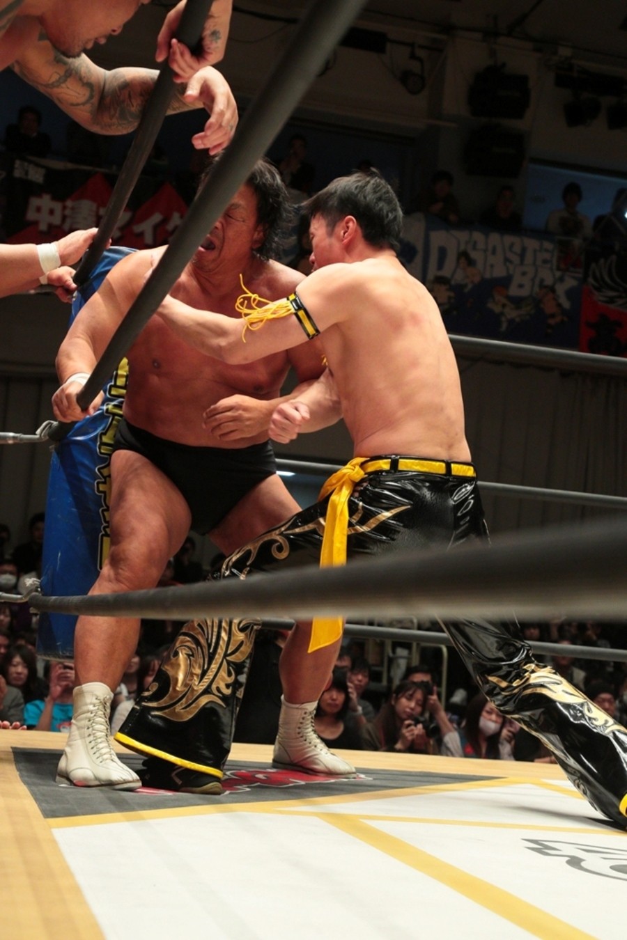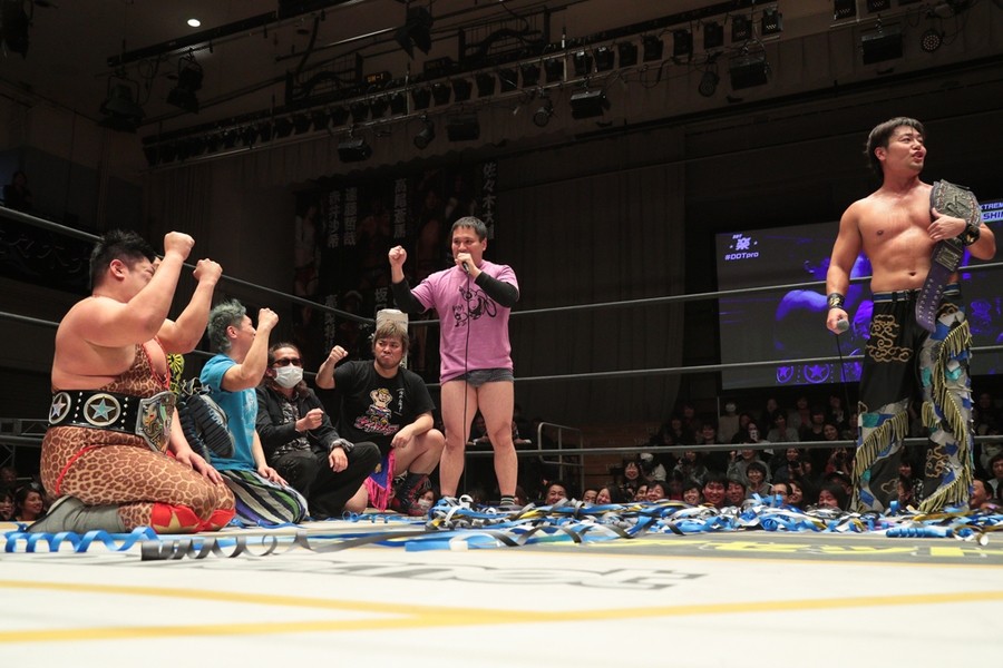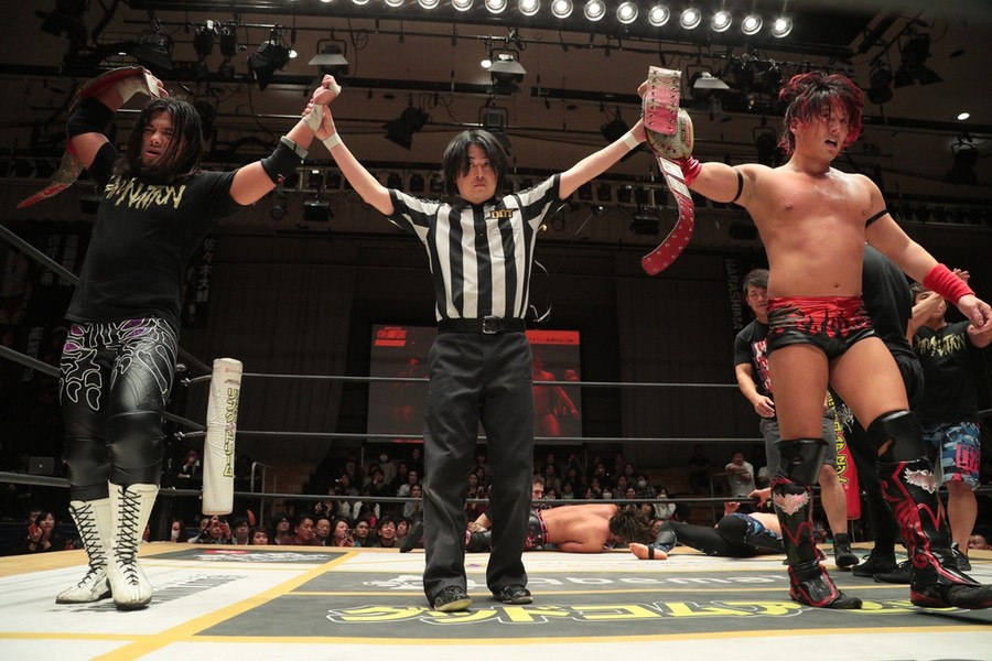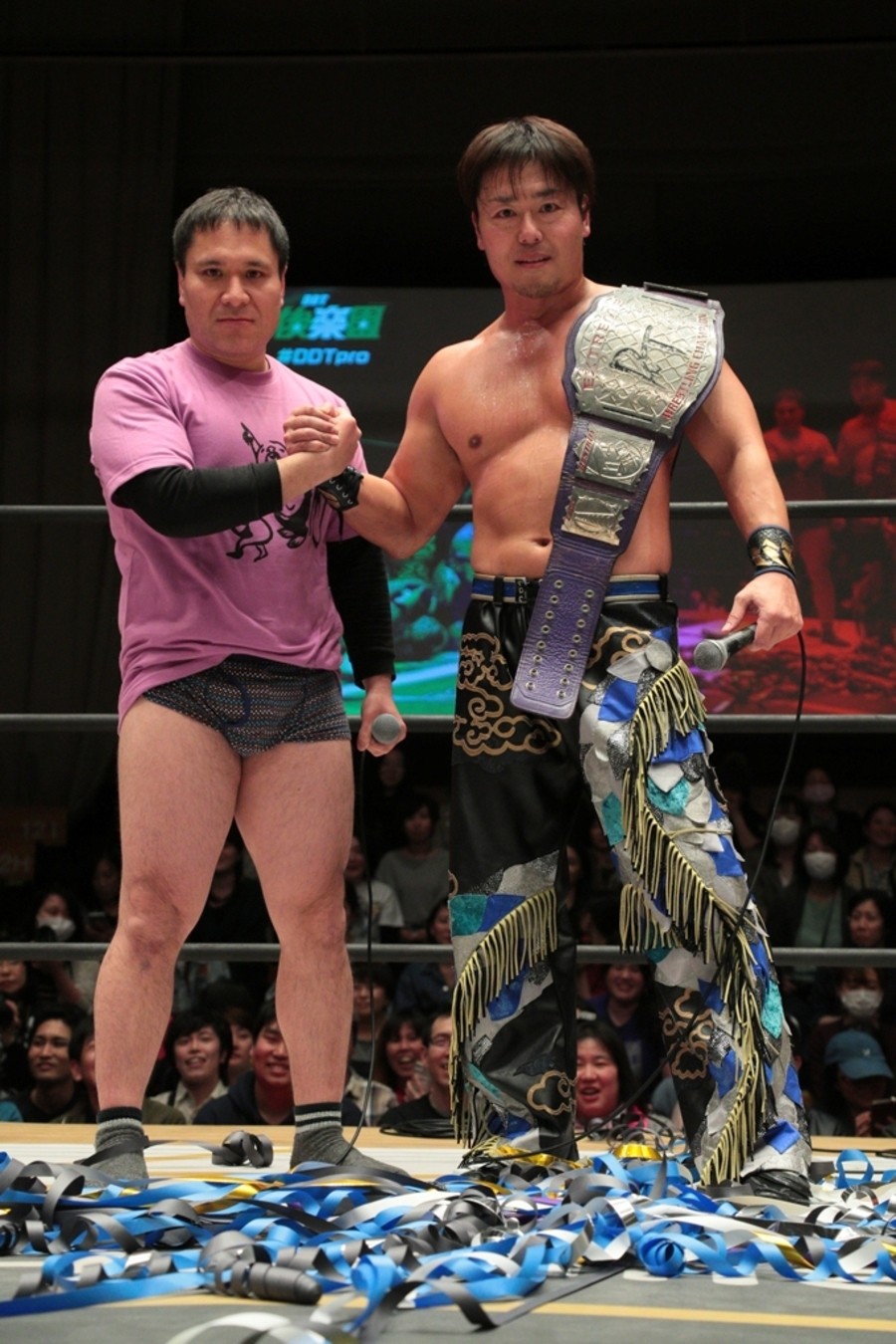 彰人 でもね、向こうがベルト獲ったってことは、これからDDTに上がるってことですから。このまま終われないからね。また一から、ユニットとして。あなた(竹下)はもう一つベルトあるけど、俺らはまたユニットとしてもう一回イチから力をつけ直して、またタッグなり6人タッグなり狙っていきたいです。