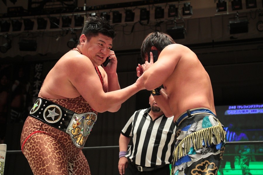 2本目は両選手は試合をしながらスマホで通話をし続ける。3秒以上会話が途切れたほうが負け。お互いに対戦相手と通話しながら、HARASHIMAが坂井を蹴っていくと、坂井がスマホを吹っ飛ばしてしまう。だが、坂井はお悩み電話相談にもつながっていると言い出す。そこに相談者の中澤マイケルから入電。仲のいい友達二人の間で板挟みになっているというマイケルだが、一人はアメリカで会社を興し、もう一人は日本に残ってやることがあるというマイケルに対し、HARASHIMAは「それってケニーと飯伏でしょ?」と身も蓋もないことを言いながら、坂井に腕十字。するとマイケルが入ってきて坂井を救出してからスピア。これをHARASHIMAがかわし、坂井に誤爆するとスマホが吹っ飛び、3秒間の通話が途切れたため2本目はHARASHIMAが取った。