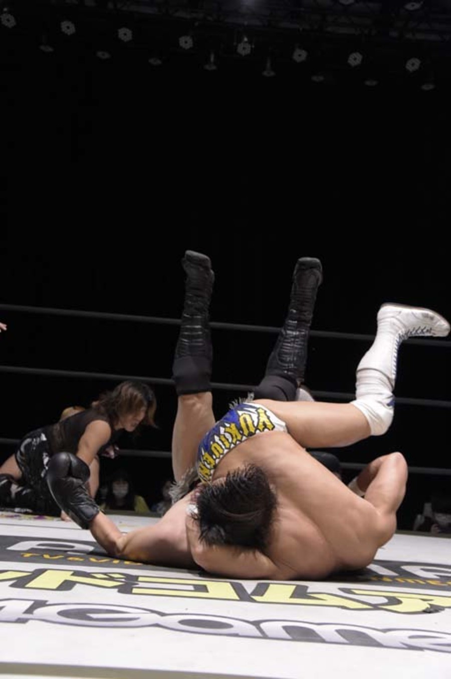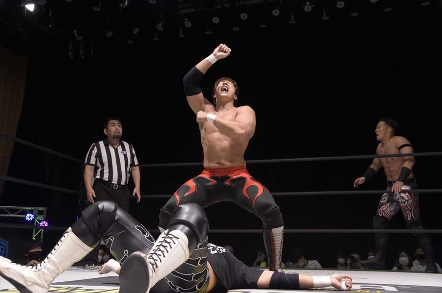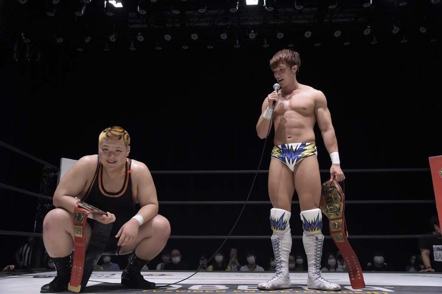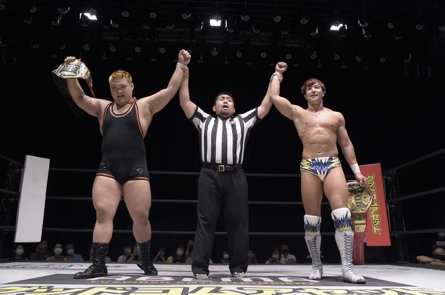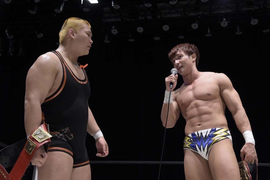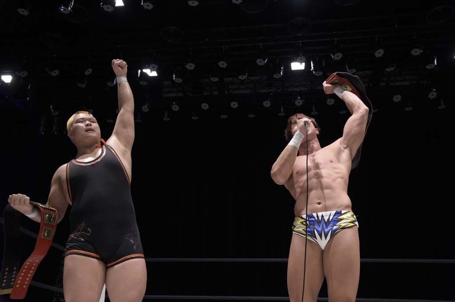 上野 このタッグで試合をするたびに足りないものが見えてきますし、それもどんどんプラスに出来ている気がします。今日もあの人たちと試合をしたことで、僕たちはもっと上部になると思います。また、何回も防衛したいですね。