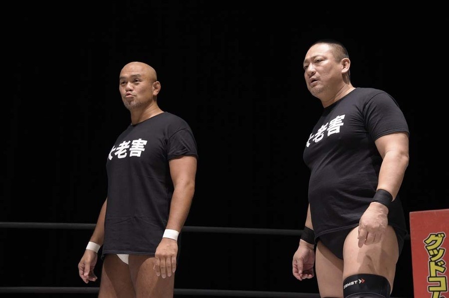 若造Tシャツを着て中村&岡谷が入場後、チーム大老害は『Fire!』に乗って揃いの大老害Tシャツを着て入場。高木が「若造!」中村が「大老害!」言い合う。高木と岡谷で試合開始。高木と岡谷は若造コールと老害コールを叫び合う。2人が五分の攻防を繰り広げると、秋山と中村の組み合わせに。秋山は中村の耳を掴んでいく。中村のタックルも秋山は腰の重さで耐えると高木はコーナーから「ナイス老害です!」と一言。秋山は中村を場外に連れ出し、鉄柱にぶつけようとするが、中村はうまくかわしてリングイン。しかし秋山は再び場外に中村を連れ出すと、場外でボディスラム2連発。秋山から高木に代わると「俺も老害のテクニックを見せてやる!」といって場外でボディスラム。ここから中村が捕まる展開となってしまう。中村が高木にミサイルキックを決め岡谷に繋ぐ。岡谷は高木にエルボー連発から串刺しエルボー、ブルドッキング・ヘッドロック。カウント2。ノーザンライトを狙うも、高木は耐えて串刺しエルボー。高木は「俺の方が若造だー!」と叫んでリバース・スプラッシュ。カウント2。秋山に代わると、秋山の低空ニーをかわした岡谷がエルボーを決め中村にタッチ。中村がスワンダイブ式ミサイルキックで飛び込み、串刺しドロップキック。さらに絶品を放つも秋山が剣山。カウント2。エクスプロイダーの体勢になるも、岡谷がカットし、中村と共にダブルのブレーンバスターを決める。中村が改めて秋山に絶品。高木が飛び込み、「100本受け身だ!」と言って中村に交互に無数のボディスラムを連発。秋山がカバーもカウント2で中村返す。秋山の低空ニーはカウント2。ならばとエクスプロイダーを決めると、中村も返せず3カウント。試合後秋山は中村を称えると見せかけ場外に突き落としていった。