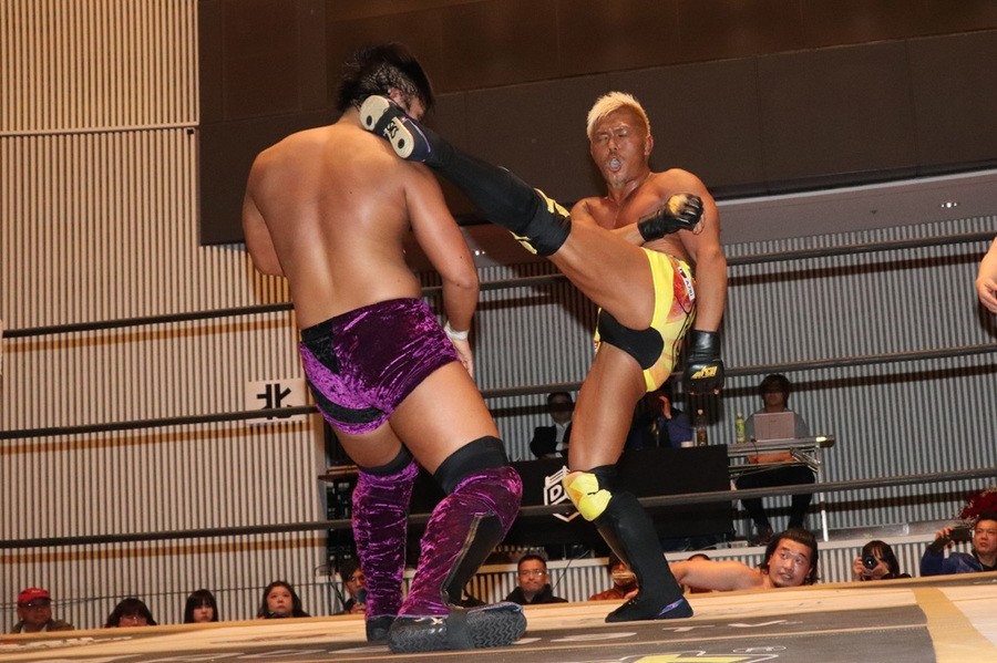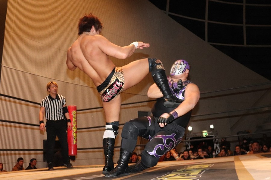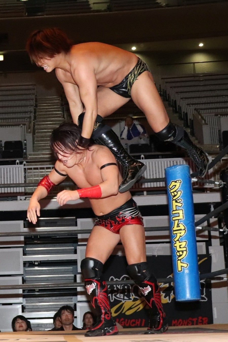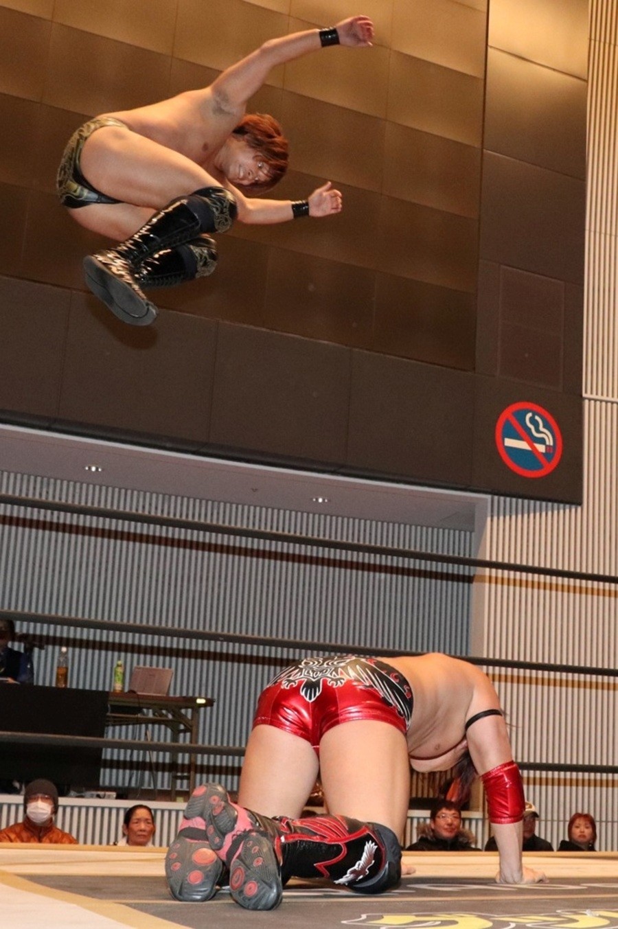 渡瀬が高尾にリープフロッグからアームホイップ。顔面ウォッシュ狙いは高尾が阻止。バックエルボーで追い詰めるとギロチンドロップはカウント2。首4の字をロープに逃げた渡瀬はブレーンバスター。カーフブランディングからミサイルキック顔面ウォッシュと攻勢。高尾も渡瀬をロープに引っ掛けてニーアタックから背中にダイビング・フットスタンプを放つ。エルボーの打ち合いから渡瀬が高尾の一発をかわして投げ捨てジャーマン。しかしバックドロップは切り返されてしまうとみちドラⅡからジントニックでフォール負け。