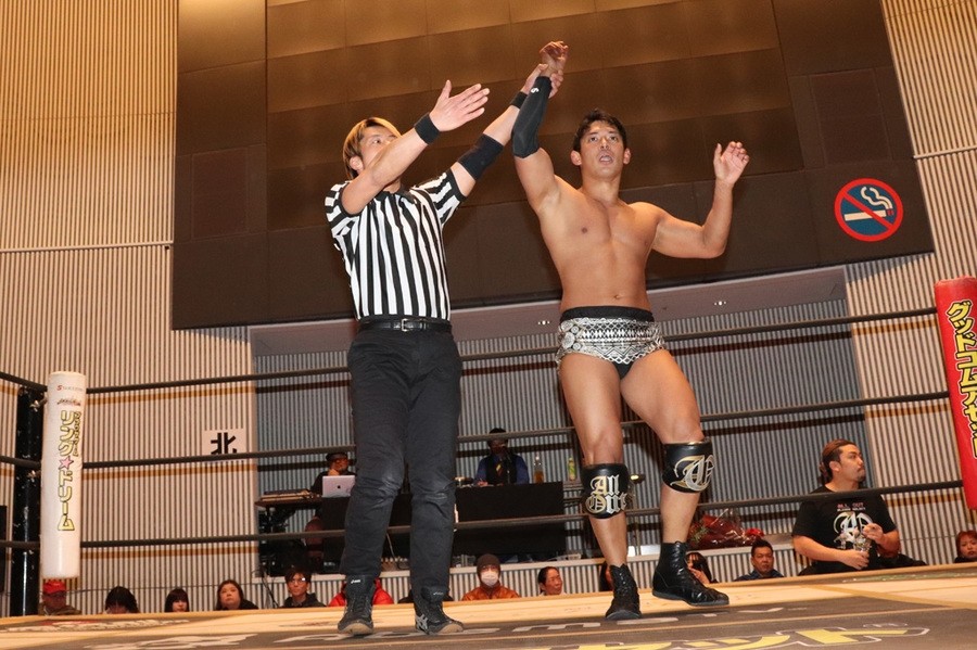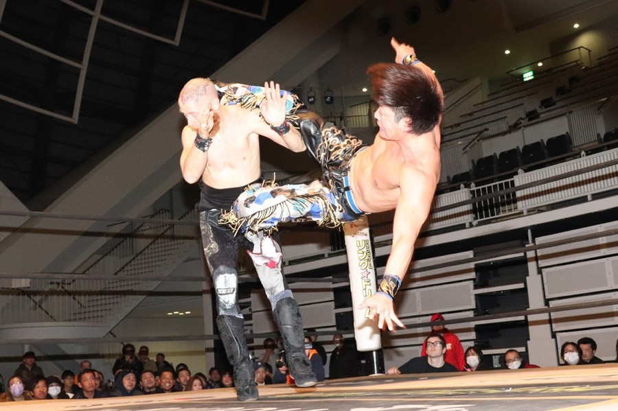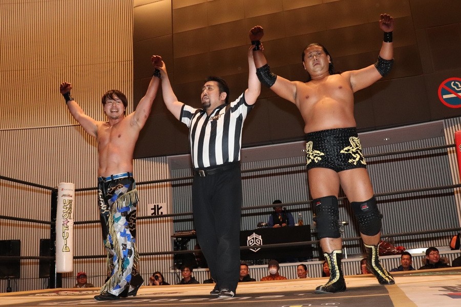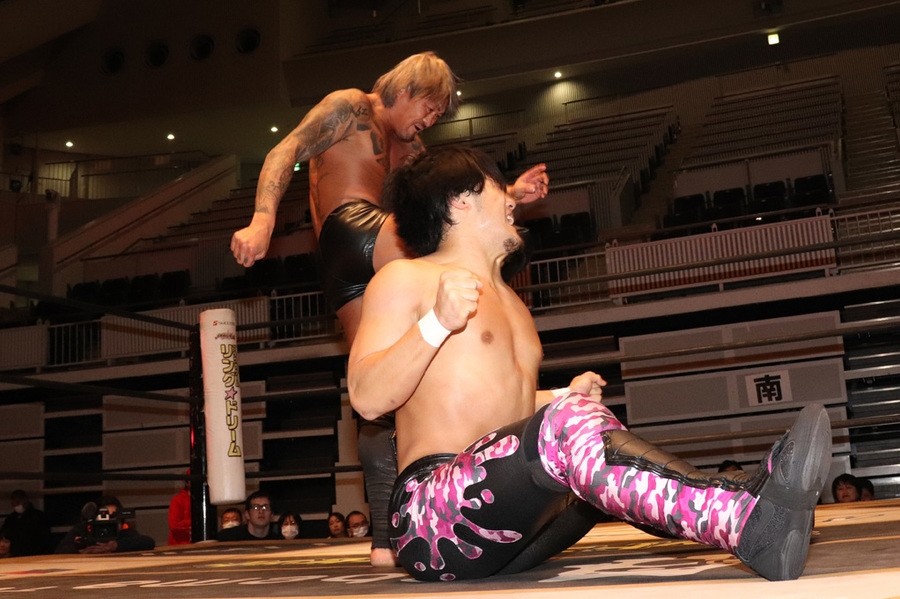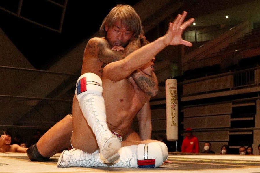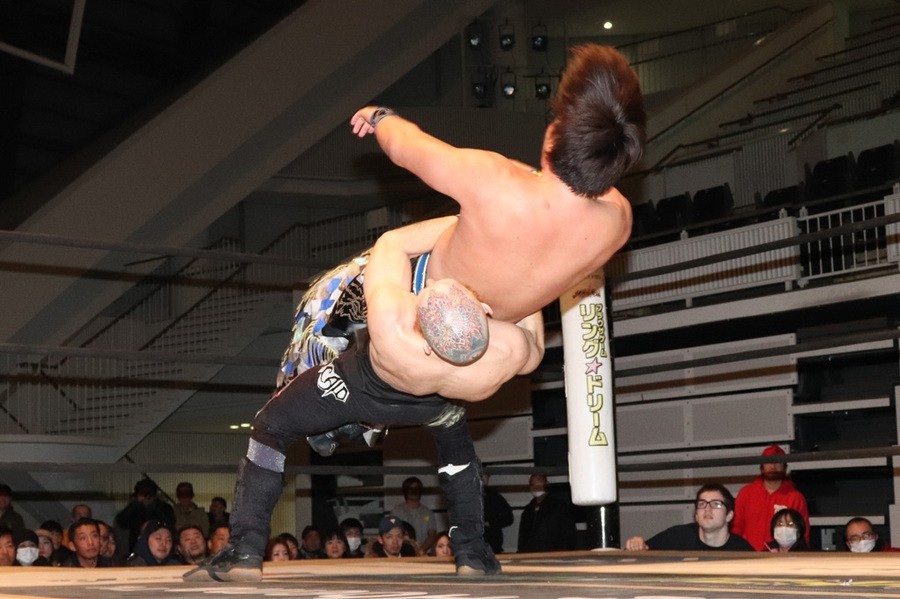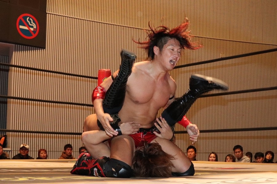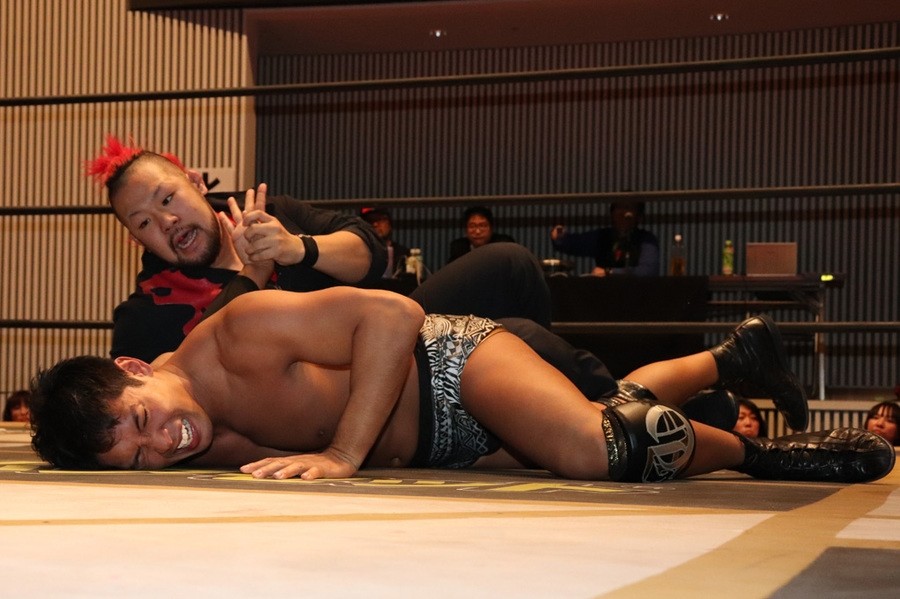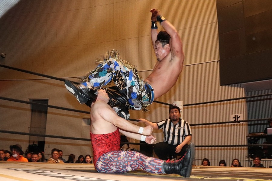 定がラフファイトで攻め込む。エルボースタッブからナックルパンチ、さらに右腕をキャンバスに叩きつける。彰人は片足をキャッチしてドラゴンスクリューで逆転。足攻めに苦しんだ定は腕固め。アンクルホールドで返す彰人に今度はワキ固めとやり返す。スパインバスターはカウント2。ファイナルカットの体勢は彰人が丸め込みで返すとニーアッパーから足横須賀、さらにサソリ固めにつないでギブアップ勝ち。