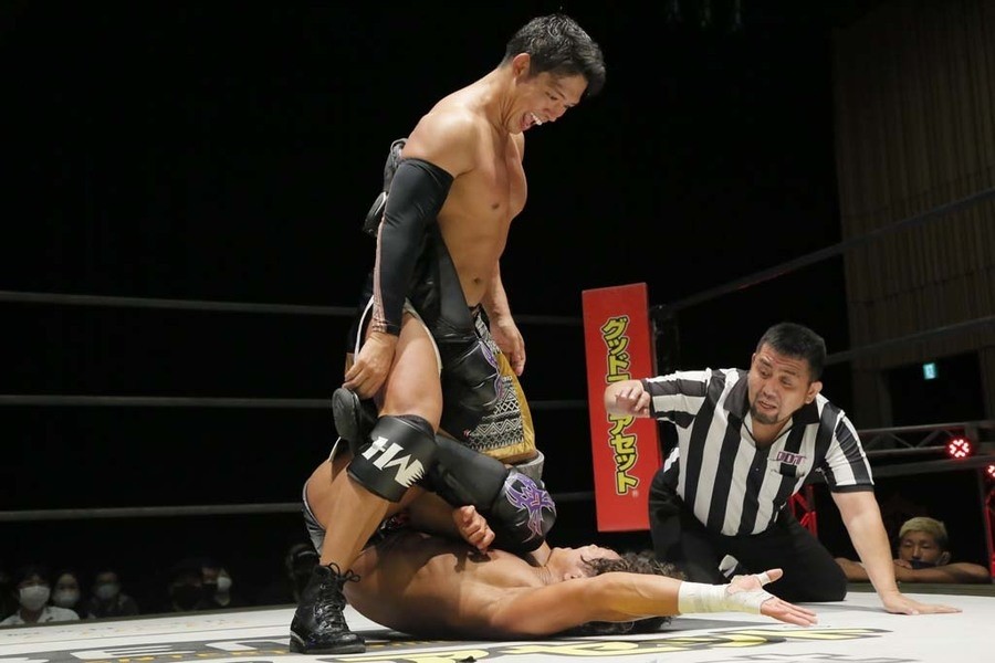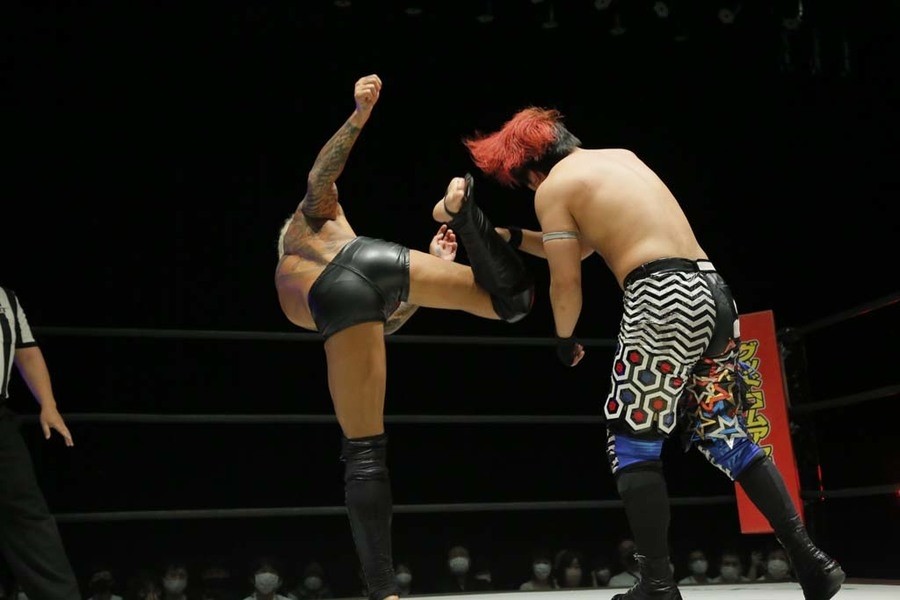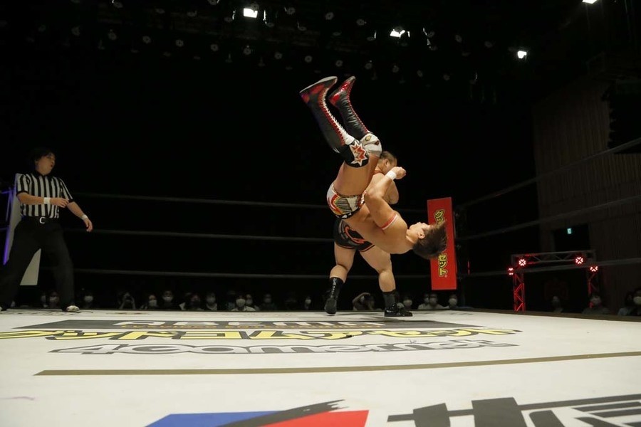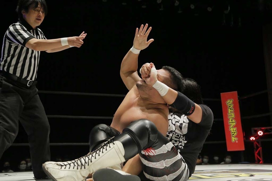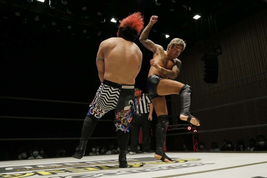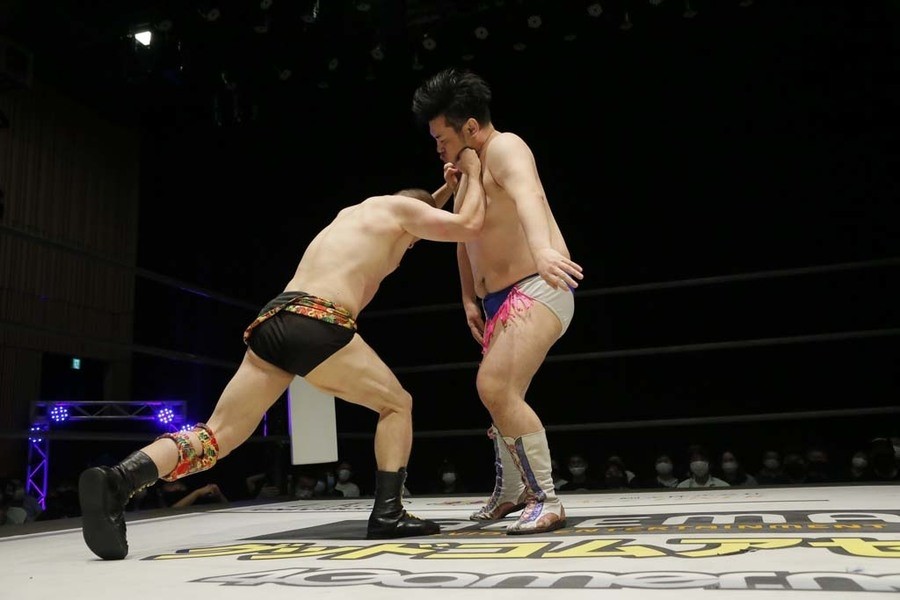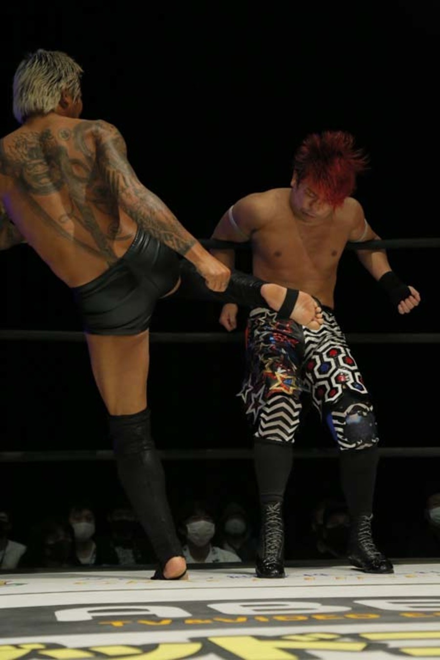 彰人 もちろんいままでは足攻めというものをキャラクターとしてやっていた部分がありますけど、僕はそれだけじゃなくて、関節という関節を攻撃する……一点集中攻撃って足だけじゃないんで。一点集中攻撃に特化したレスラーに進化しようかなと。インサイドワークとかも増やして、どんどん。レスラーとして進化をしていこうかなと。これは今日だけの対策じゃないんですよ。あれは実はいつやろうと思ってもできるし、足攻めっていうこだわりを少しだけ捨てたという感じですかね。