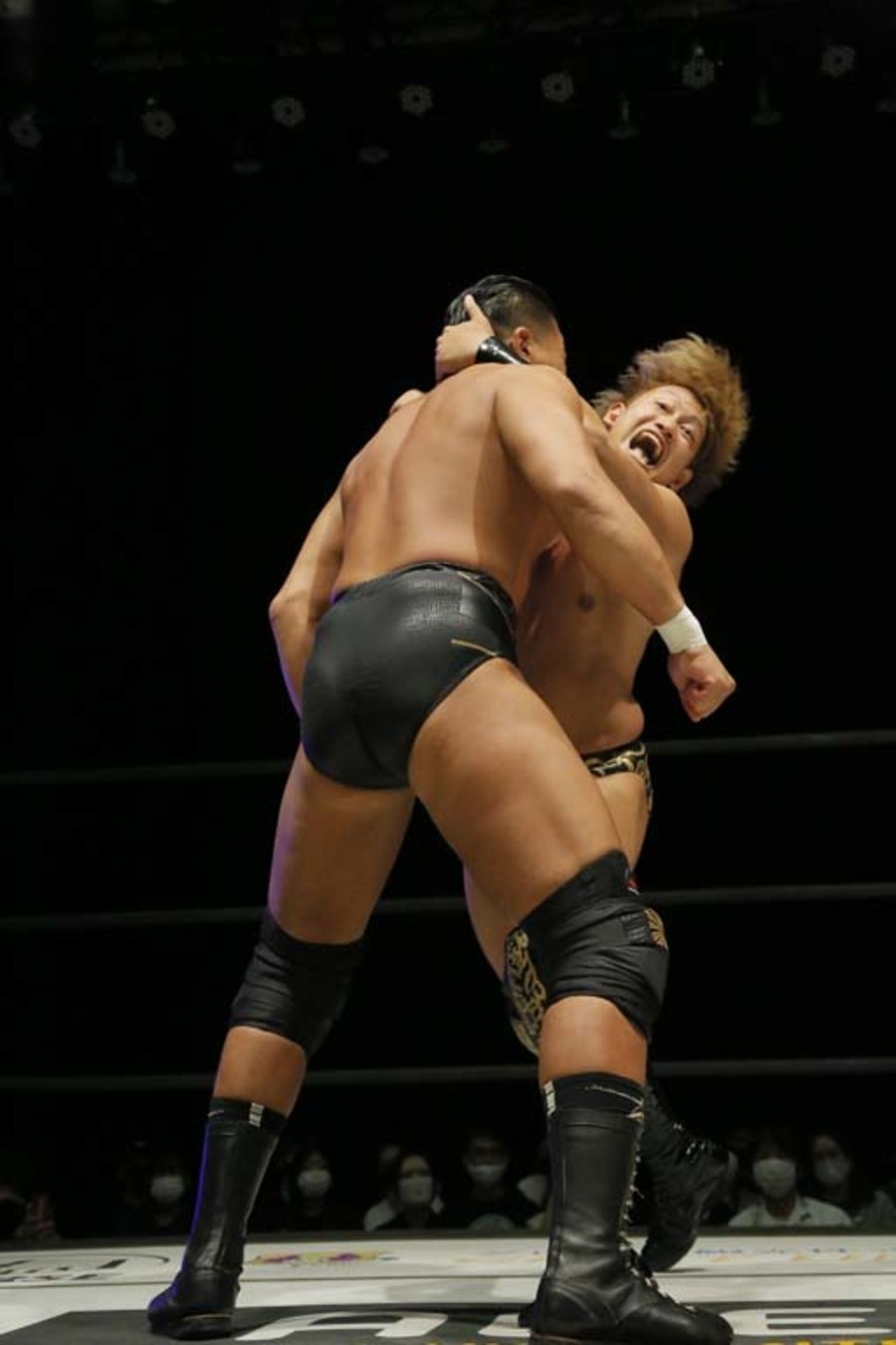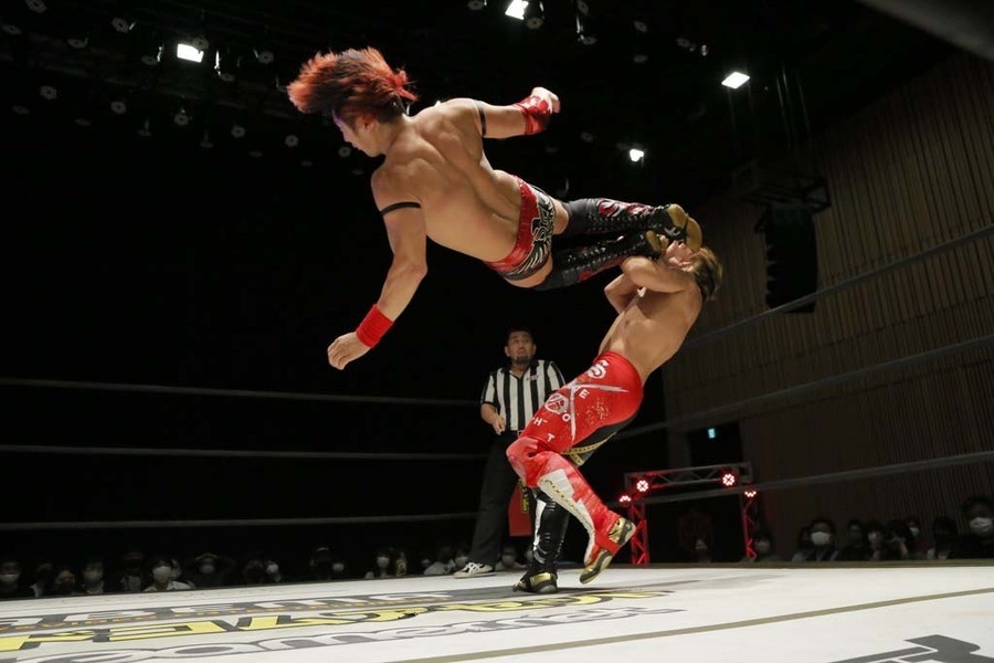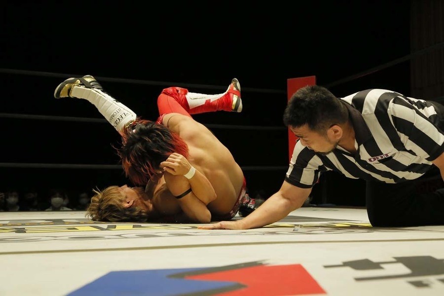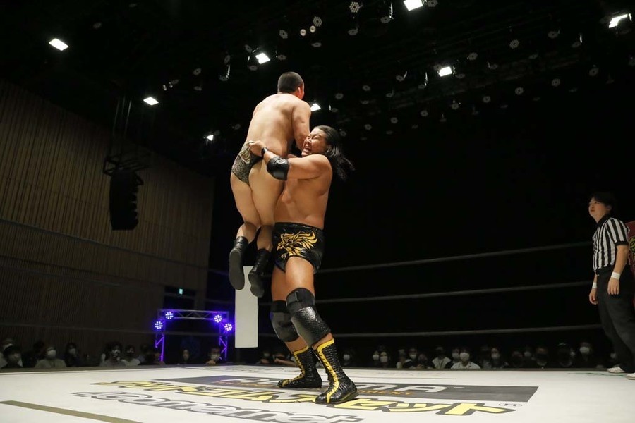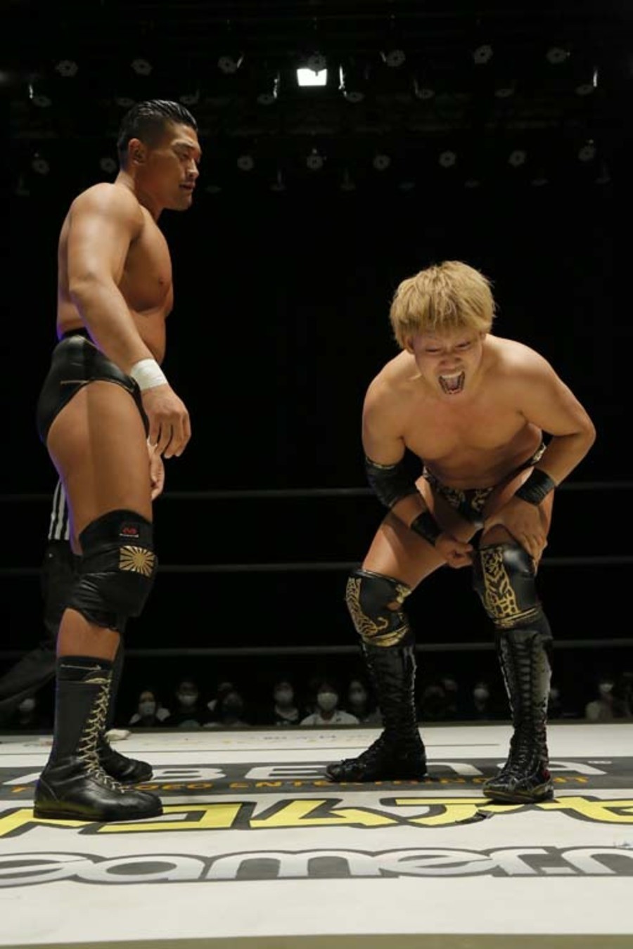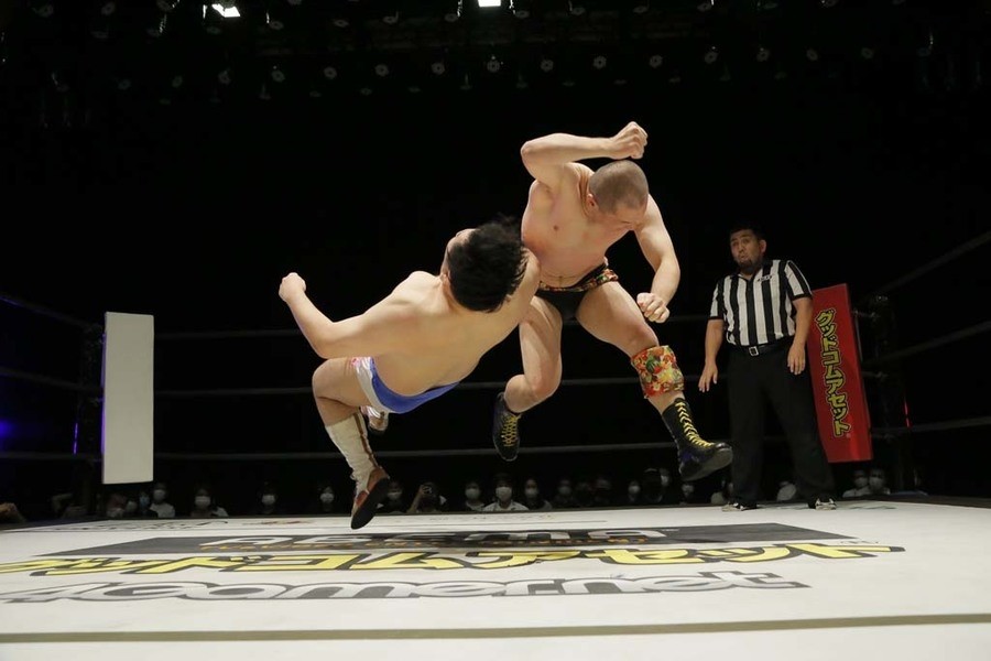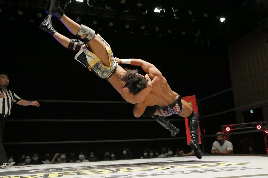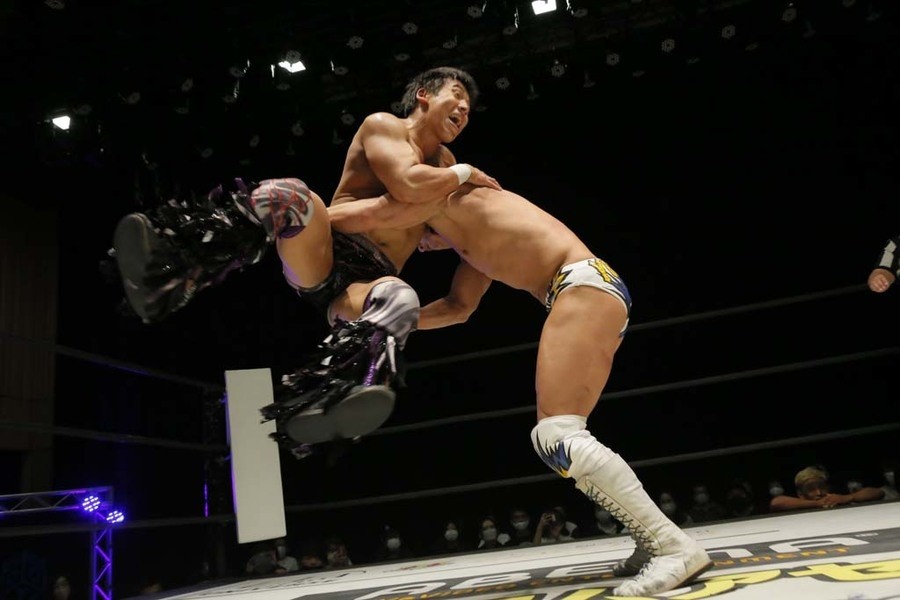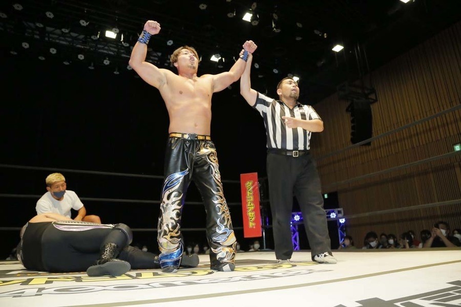 竹下 たぶん僕は今日一発一発……吉村も僕を敵対視してるけど、もっと火をつけたいという気持ちがあったんですよ。だからホンマにラリアットでもエルボーでも一発一発魂込めて打ったし、ザーヒーもバコーンと顔面にいったったから。その上で、もしかしたらヒザとかでカバージョいってたら、勝てたかもしれへん。でもジャーマンは僕の意地ですかね。いまの僕がいかに調子がいいかというのを見せつける。ぎっくり腰にもならないと思いますんで。メチャクチャ鍛えてるから。去年と比較するなら去年の3倍は鍛えてる、いま。自信あります。