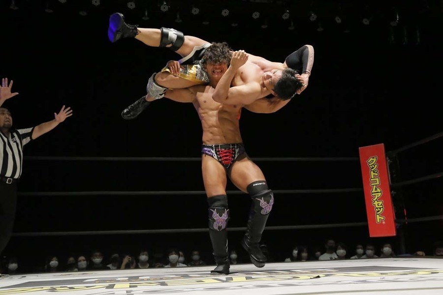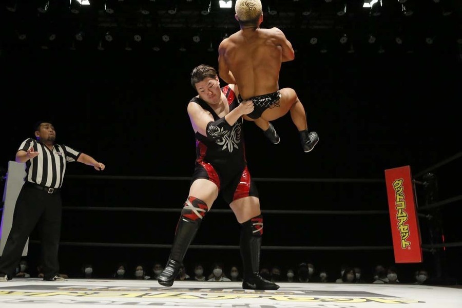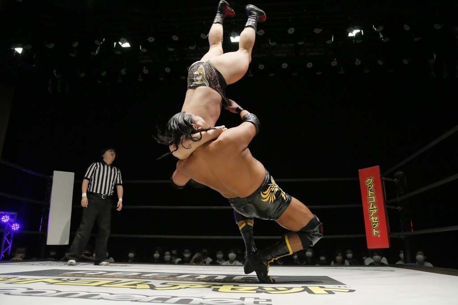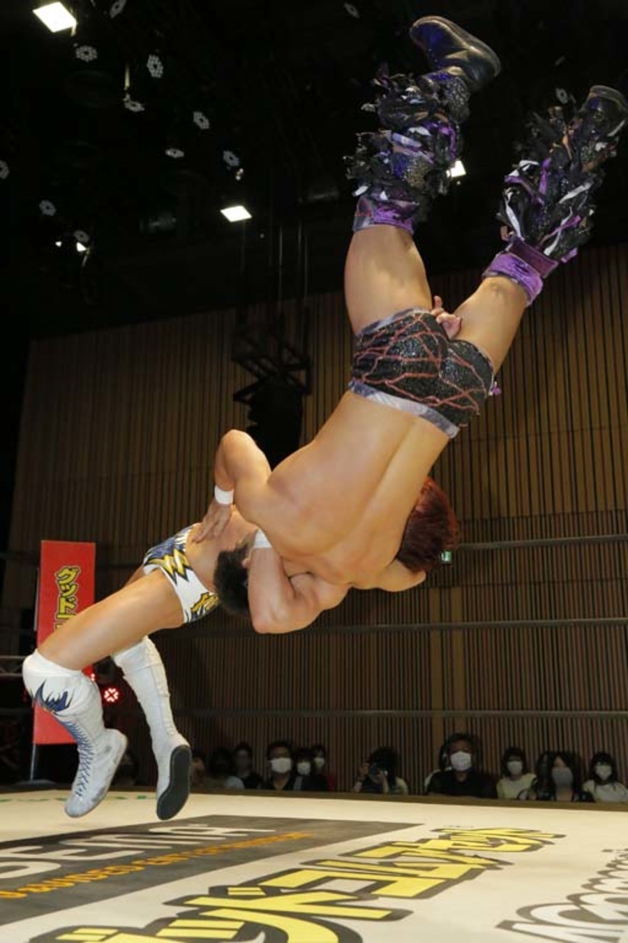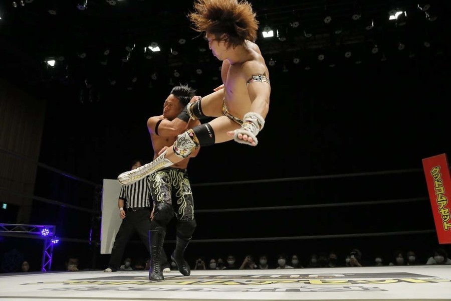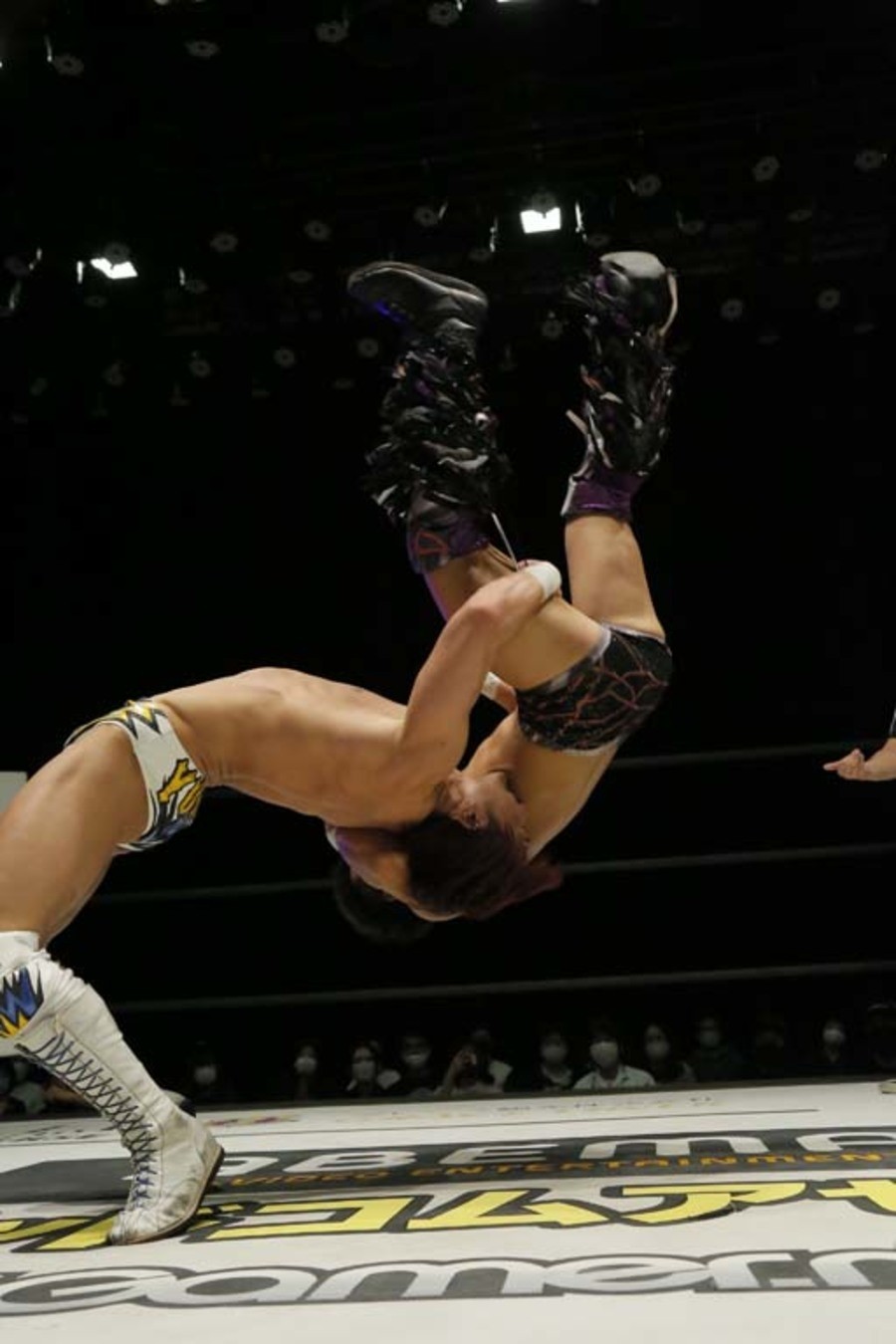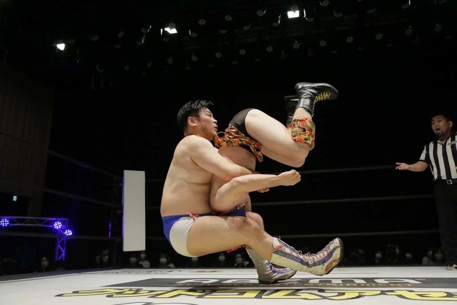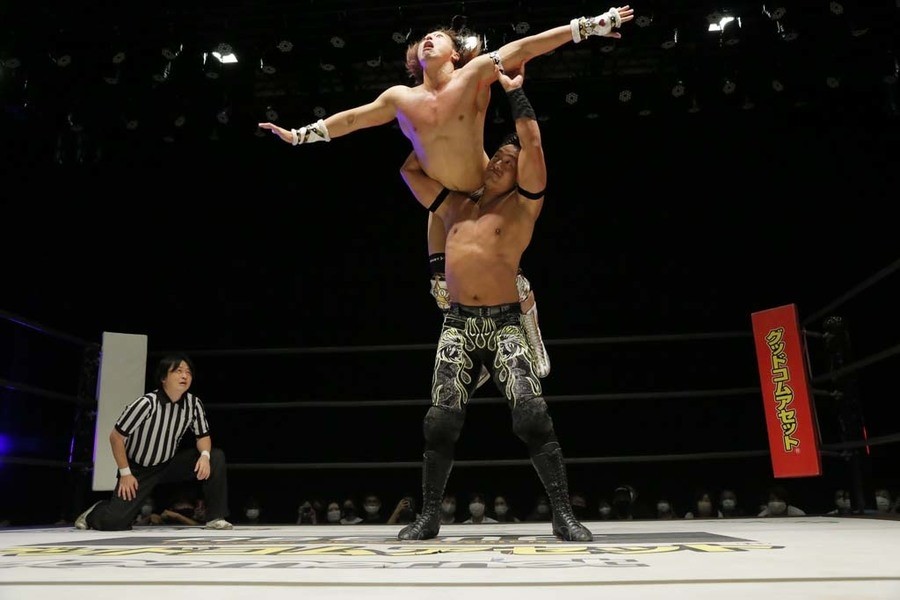 竹下 たぶん僕は今日一発一発……吉村も僕を敵対視してるけど、もっと火をつけたいという気持ちがあったんですよ。だからホンマにラリアットでもエルボーでも一発一発魂込めて打ったし、ザーヒーもバコーンと顔面にいったったから。その上で、もしかしたらヒザとかでカバージョいってたら、勝てたかもしれへん。でもジャーマンは僕の意地ですかね。いまの僕がいかに調子がいいかというのを見せつける。ぎっくり腰にもならないと思いますんで。メチャクチャ鍛えてるから。去年と比較するなら去年の3倍は鍛えてる、いま。自信あります。
