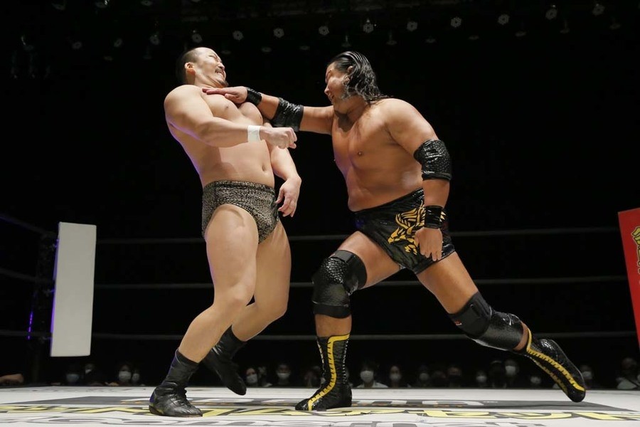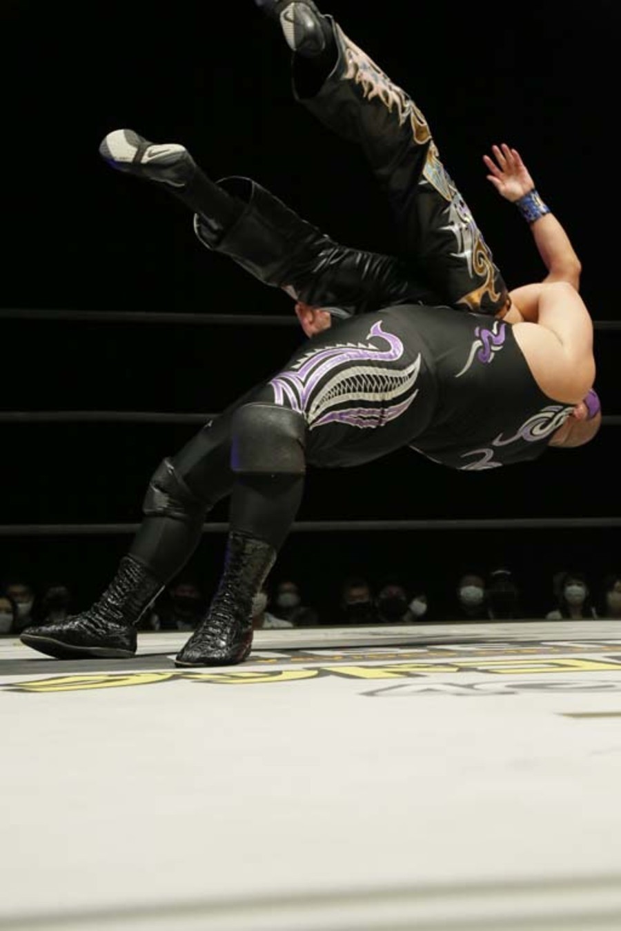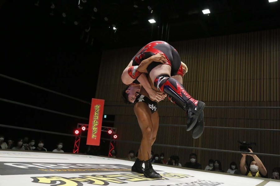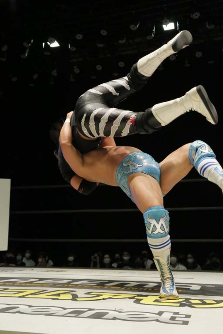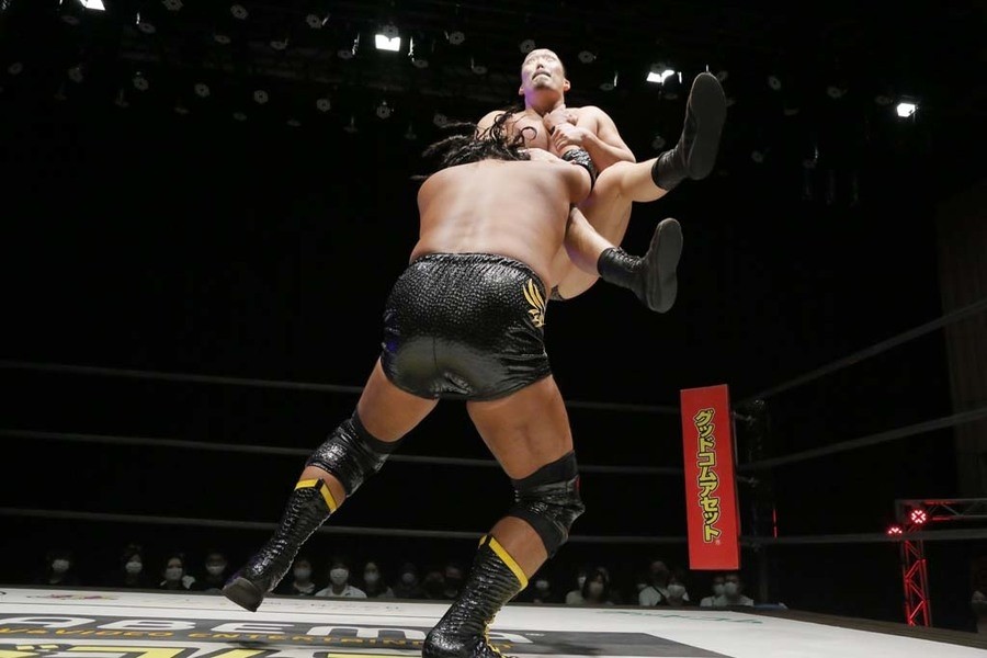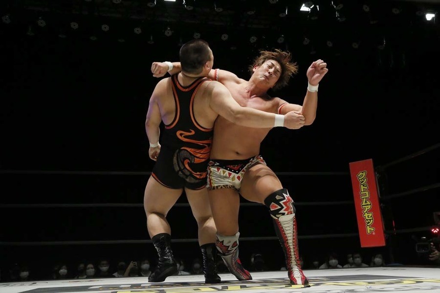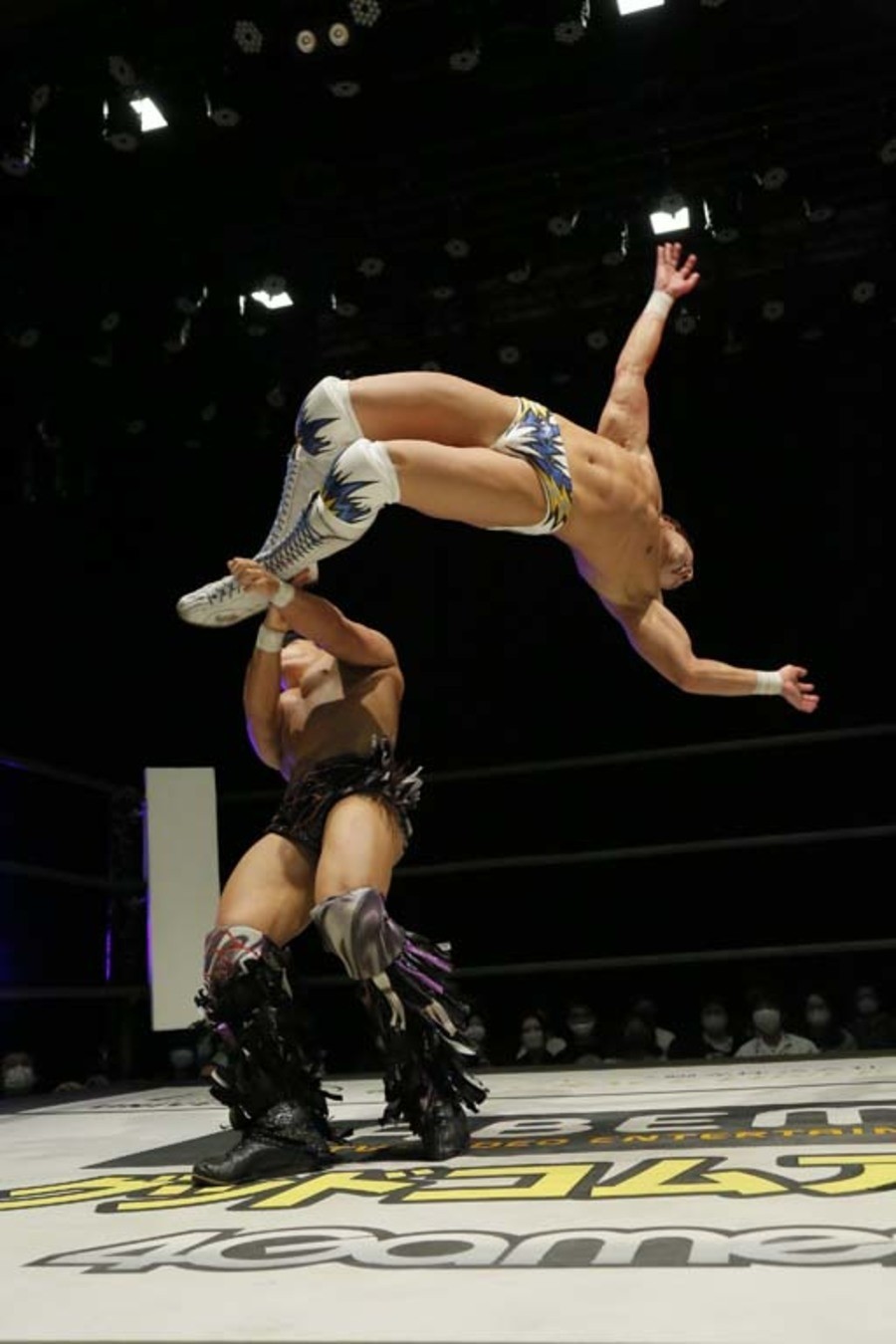 竹下 たぶん僕は今日一発一発……吉村も僕を敵対視してるけど、もっと火をつけたいという気持ちがあったんですよ。だからホンマにラリアットでもエルボーでも一発一発魂込めて打ったし、ザーヒーもバコーンと顔面にいったったから。その上で、もしかしたらヒザとかでカバージョいってたら、勝てたかもしれへん。でもジャーマンは僕の意地ですかね。いまの僕がいかに調子がいいかというのを見せつける。ぎっくり腰にもならないと思いますんで。メチャクチャ鍛えてるから。去年と比較するなら去年の3倍は鍛えてる、いま。自信あります。