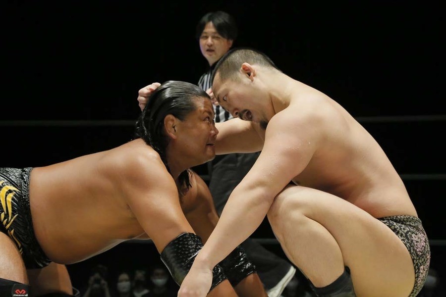 じっくりとした序盤戦から、松永が優位な展開を作っていく。佐々木は髪の毛を掴んでペースを引き込むが、松永のバックドロップ狙いは佐々木も慌ててロープへ逃げる。ここから互いに再び腕を狙い合う攻防となるが、松永がヘッドロックで締め上げ続け佐々木を追い込む。松永がタックルで倒すと手四つを要求。佐々木がフルネルソンから丸め込み、松永が返すとそのままクロス・フェースロック。松永はエスケープ。そのまま場外へ。松永がリングインするとすぐさま佐々木がクロス・フェースロック。松永はすぐにロープに逃げる。ここから互いの技を返し合い、松永のコブラツイスト狙いを佐々木が脱出すると松永がバックドロップ。もう一発狙うも佐々木は体を入れ替えそのままクロス・フェースロック。ガッチリ決まると松永もギブアップ。