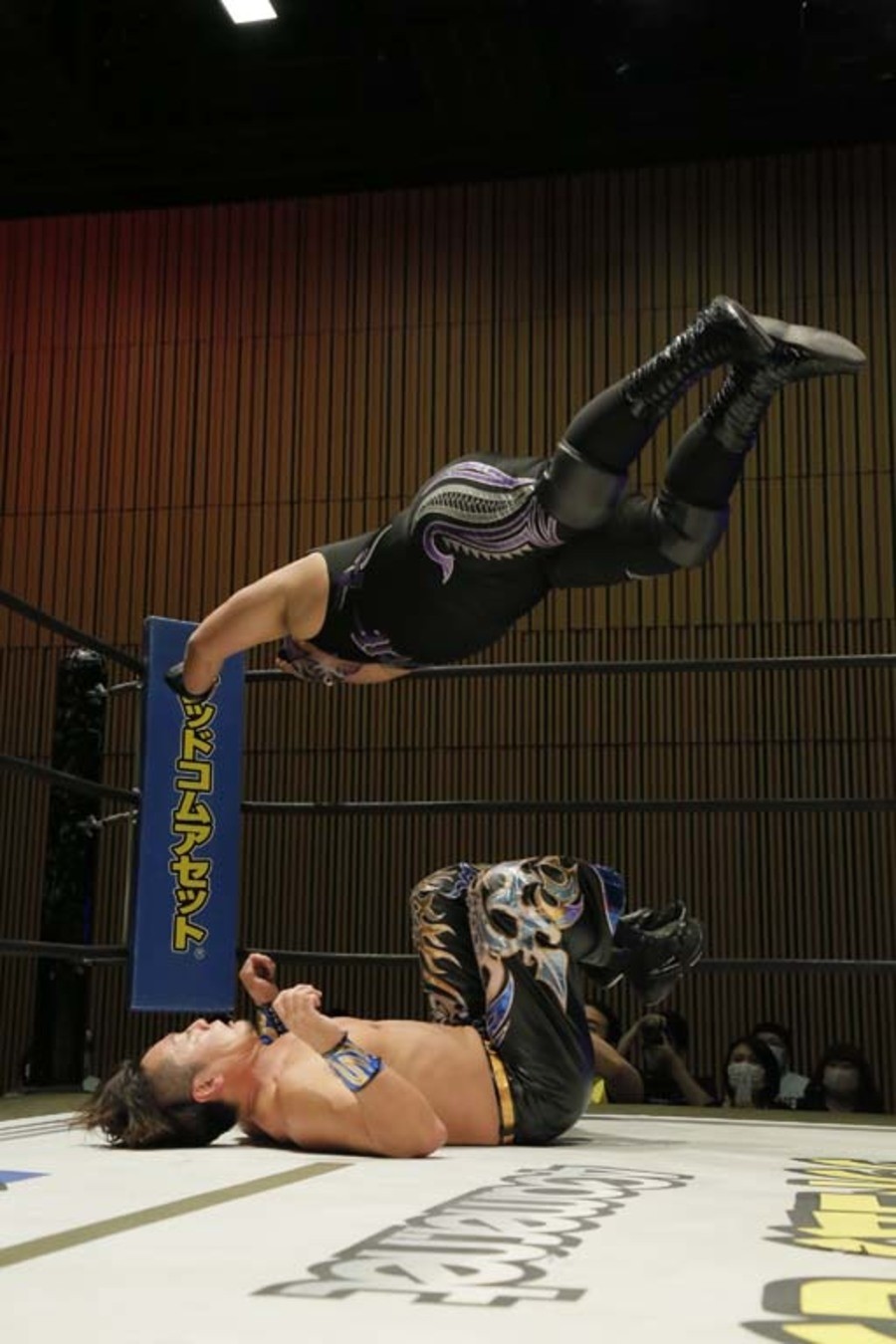 静かな立ち上がり、互角の攻防を繰り広げる。高尾がコーナーから攻撃をしようとすると、コーナー上で稔が腕を固めていくがこれはロープブレイク。ここから稔が高尾の左腕に集中攻撃。高尾は反撃することが出来ない。それでも高尾はドロップキックを決めて一矢報いると、飛び付きのDDT。ランニング・エルボーバットからカバーもカウント2。ダイビング・フットスタンプを放つも、稔がかわして横っ面に低空ドロップキック。その場飛びムーンサルト・プレスを放つもカウント2。高尾がエルボーを放っていくと稔もエルボーを返してエルボーの打ち合い。稔は強烈なミドルキック決めると、高尾は延髄斬り。カウント2。シュバインを決めるもカウント2。ジントニックの体勢に入るが、稔が耐えるとジャンピング・ハイキックから「クソガキ」と言ってバズソーキック。カウント2で返した高尾は逆襲のラ・マヒストラルを決め、さらに公認エンドレスワルツへ。これを稔はカウント2でクリア。走った高尾に稔がカウンターのハイキックからミノルスペシャルをズバリと決めると高尾もギブアップ。
