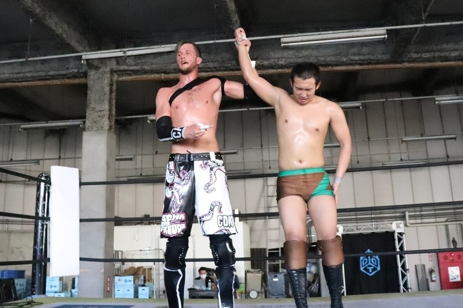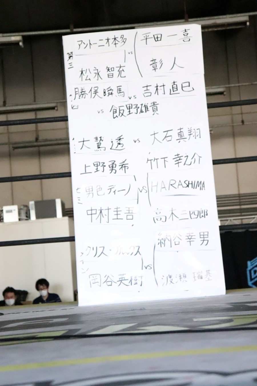上野がバックステージでコメント。上野が「今日はこんなくじ引きで、HARASHIMAさんと久々に当たったりだとか、男色さんと久々に組まされたりとか、タケ(竹下)とも当たれたし、高木さんと試合なんてしたことほとんど、1、2回あるくらいで。すごい楽しくて。次の木曜にはとうとうお客さんの入った後楽園ホール大会、久しぶりで。KO-D無差別級、遠藤さんに僕は挑戦します。本当にコンディションは今日もばっちりで……」と語っていると突如コメントルームに遠藤が乱入し、上野を襲撃。報道陣に「お前ら撮っとけ!」と言って板橋大会で何度も狙っていた、リストクラッチとハーフネルソンの何かの技を狙うも、上野が懸命に脱出。上野はキックを放つも遠藤はキャッチ。遠藤は「油断してんじゃねぇぞ」と吐き捨てコメントルームから去って行った。