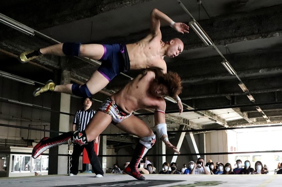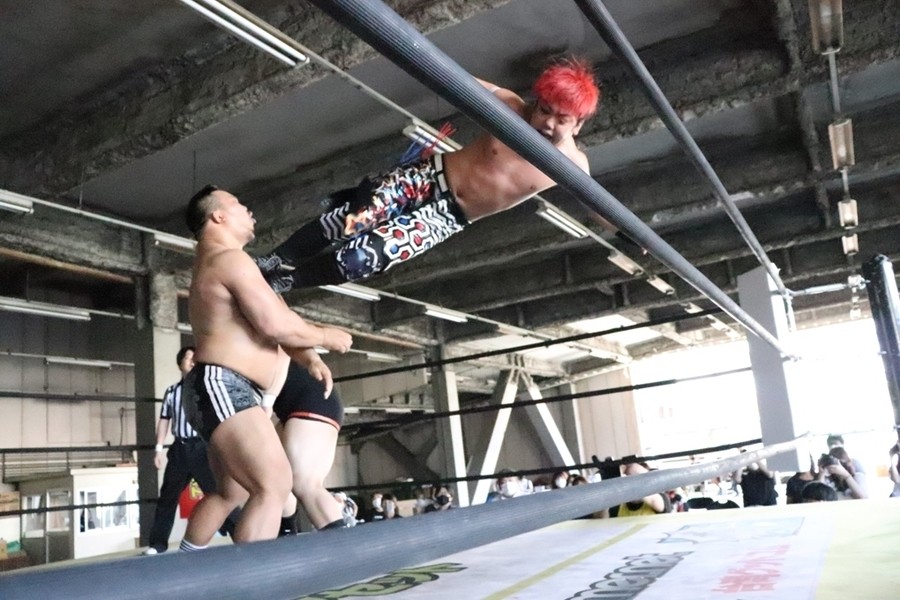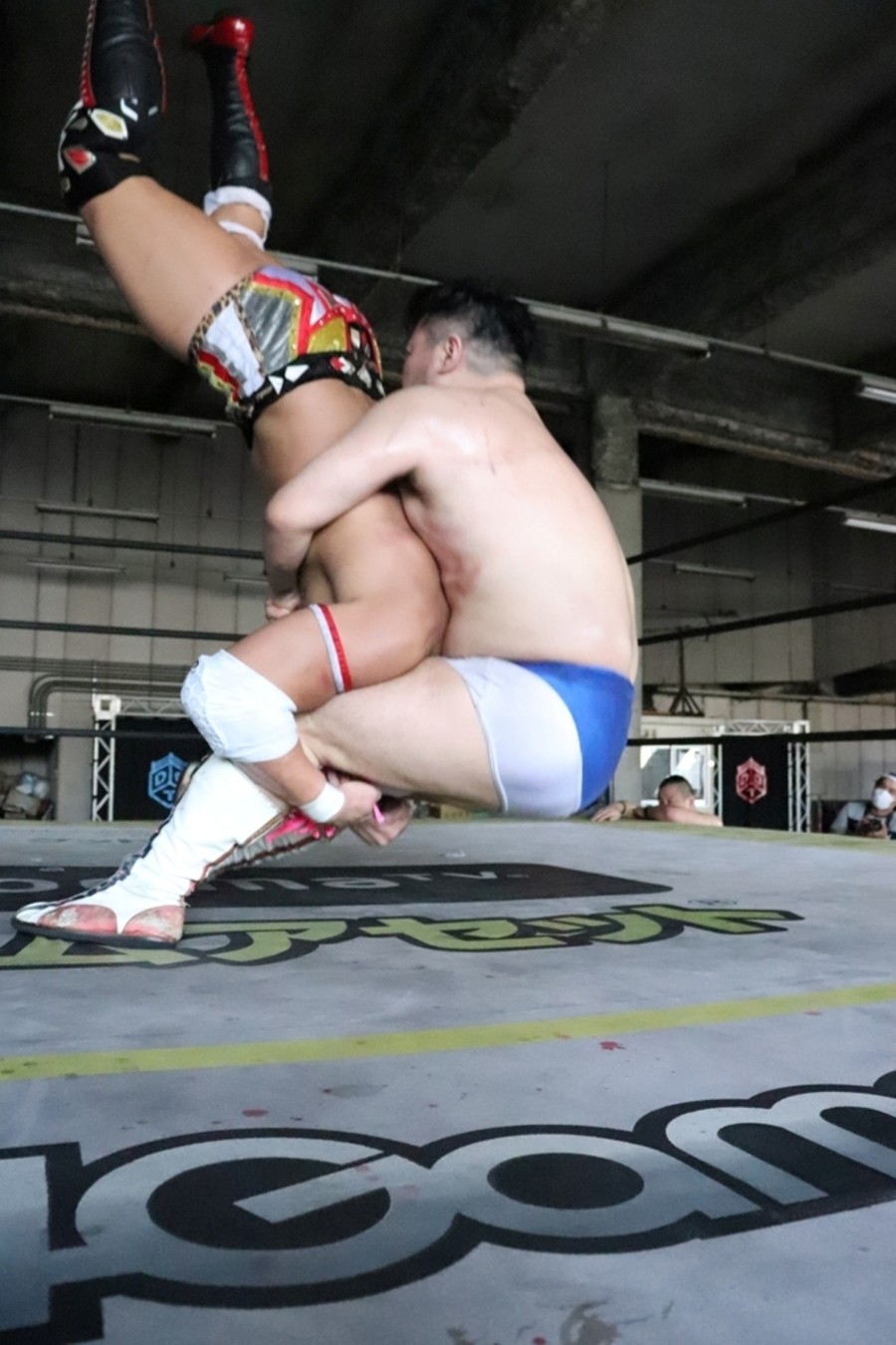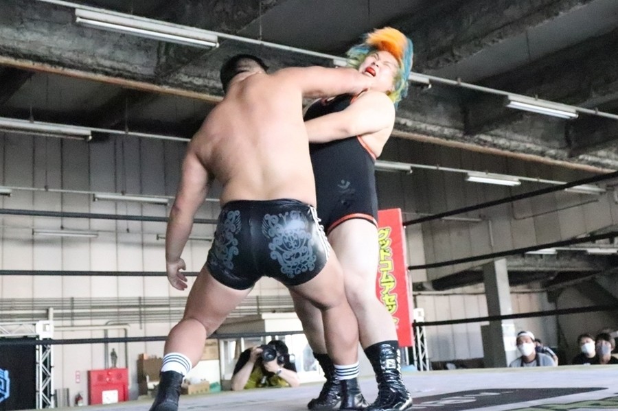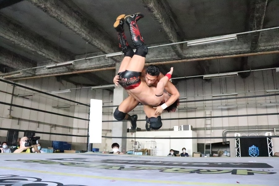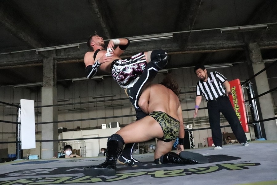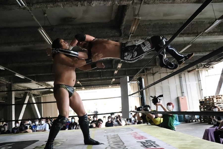 ゴングが鳴るとグラウンドで互いの出方を伺う両者。大石の素早いグラウンドに大鷲も対応。大石が握手を求めると、大鷲が握力で圧倒。ロープを走っての攻防になると、大石がタックルで向かって行くが大鷲は微動だにしない。大石が大鷲をロープの走らせると、巧みに大石がタックルで倒していく。大鷲は「大石と大鷲紛らわしいんだよ! 二度と青果市場から出られないようにしてやる!」と言い放ち、セコンドの平田を呼び込み、ルチャで2人同時に投げ飛ばしていく。ここから大石が果敢に向かって行くが、大鷲の猛攻に防戦一方の展開が続く。大石がランニング・フォアアームで一矢報いると、ボディスラムで大鷲を投げ切る。大石はコーナーからスイングDDTを決めてデルフィンクラッチを決めるもカウント2。大石がミラクルエクスタシーを狙うが、大鷲はのど輪落としからボディプレス。カウント2。続けて大鷲は延髄斬りからブレーンバスターも大石はカウント2で返す。大鷲がコーナーに上るが大石が阻止。デッドリードライブでマットに叩き付けると、ダイビング・クロスボディを放つが自爆。そこに大鷲がラ・マヒストラルを決めるがカウント2。大石が逆さ抑え込み狙いも、大鷲は脱出。大鷲のラ・マヒストラルを大石はラ・マヒストラルで返すが、これを大鷲がさらにラ・マヒストラルで切り返しガッチリ押さえ込むと大石も返せず3カウント。