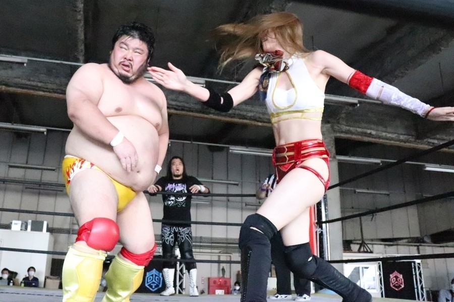 両チームが入場すると佐々木がマイクを要求。伊橋に向かい「おい、伊橋! お前どうせ今日も僕死にましぇん、とかやるんだろ? 何年そんなことやってんだ。お前ならよ、テッペン、狙えるだろ?」と言って遠藤の腰に巻かれたKO-D無差別のベルトに視線を送る。そして佐々木は「俺と一緒に、Everything is EVIL、しようぜ?」と言ってToo Sweetポーズを伊橋に向かって掲げるが、伊橋が遠藤と佐々木を襲撃。ゴングを要求。伊橋が「一緒にやろう!」と赤井とダブルのショルダータックルを決める。赤井が佐々木を攻め立てるとコーナーで伊橋が「輝いてるよ!」と檄を飛ばす。佐々木が逆転し遠藤にタッチすると遠藤は佐々木に「何がしたかったんすか?」と困惑。赤井が捕まる時間が長くなるが、伊橋がコーナーから赤井を励まし続ける。一矢報いたい赤井がコーナーに上ると伊橋が突如リングインし「俺のもとにイェイカモン!」と言うが佐々木が伊橋を蹴散らし、逆転のチャンスを逃してしまう。何度も伊橋の行動が裏目に出続け、赤井がひたすらいたぶられる展開。ついに赤井が切れて伊橋にビンタを一発。すると佐々木がマイクを持ち「おい! 伊橋! 見たか? これが女の本性だ。こんなクソみてぇな女、売り飛ばしてよ、俺と一緒にEverything is EVIL、しようぜ?」と言って再びToo Sweetポーズを掲げると、なんと伊橋はToo Sweetポーズで応える。突然伊橋が裏切り赤井に攻撃を仕掛ける。3vs1の状態で赤井が攻撃をされ続ける。伊橋が赤井にランニング・ボディプレスを決めると、佐々木が松井レフェリーにカウントを取らせるがカウント2。佐々木がイスを持ち出し伊橋に渡しと、遠藤が羽交い絞めにする赤井を殴打することを指示。伊橋が「ちょっとやりすぎだって!」と戸惑うも、「やるしかねぇんだよ!」と佐々木の指示を受け、伊橋がイスを振り上げるが赤井がイスごとビッグブーツで伊橋を貫く。赤井が伊橋にマウントエルボーを連打。赤井が新人賞を狙ったところで伊橋が「ちょっと待って!」と叫び、「沙希ちゃんにプレゼントを用意した!」と言って伊橋が1,000円札を取り出し、1,000円で夢を掴むと宣言。会場外に設置された1,000円ガチャへと猛ダッシュ。リング内は全員が困惑しながら待機。伊橋が戻ってくると、1,000円ガチャで獲得した財布で赤井にプロポーズ。しかし佐々木と遠藤がカットに入る。伊橋のラリアットが赤井に誤爆。ここで赤井に佐々木が串刺し攻撃を狙うも伊橋が間に飛び込み「僕は死にましぇーん! あなたのことが好きだから!」と阻止。ゆっくりと振り返るとそこにいたのは赤井ではなく松井レフェリー。怒りの松井レフェリーがハイキック。続けて赤井が新人賞を伊橋に叩き込み、同じチームながら3カウントを奪った。