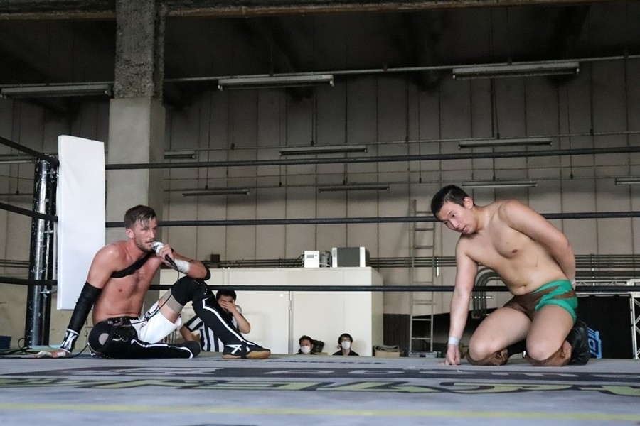 クリスがマイクを持つと、引き揚げようとする岡谷をリングに戻す。クリスは「(日本語で)みなさん、ありがとうございました。今日は岡谷さん、初めてのメインイベントだった。ナイスファイト」と言って岡谷の健闘を称える。そして「マイ、ニホンゴ、メチャソーソー」と言って岡谷にマイクを渡し、締めを任せる。岡谷は「これは締めをしろってことですかね……。デビュー、3ヶ月、4ヶ月で初めてのメインイベントで、何も覚えてないけど、最後まで力出し切れたと思います。相手は準烈の、同じチームの渡瀬さんだったので、絶対負けたくないと思って……同じチームとか関係なく、本気で潰す気で行きました。出来れば準烈の秋山さんと大石さんと、シングルをやりたいとずっと思ってます……」と言ったところで、クリスが岡谷に耳打ち。岡谷は「……本日は! どうもありがとうございました!」と唐突に締めて大会は終了した。