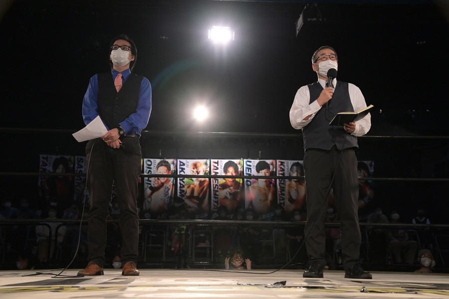 負傷欠場中の渡瀬瑞基が登場し、8月15日後楽園ホール大会での復帰戦を発表! てのりタイガー解散に伴いレスラー&ピン芸人&料理人としての飛躍を誓い、渡瀬のオープニングコールで大会がスタート!