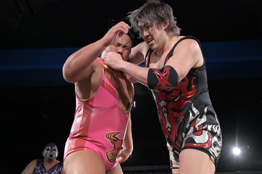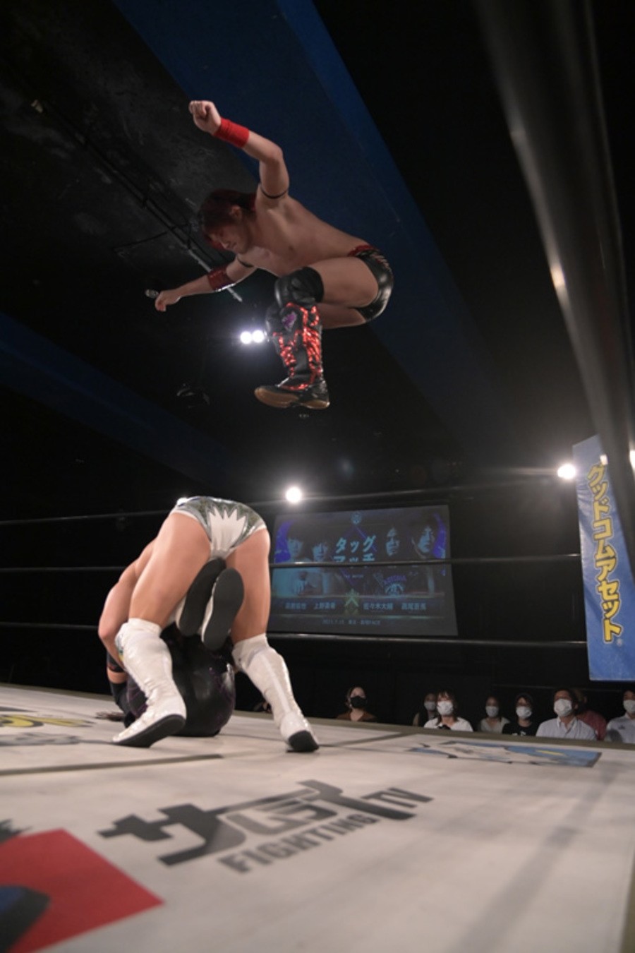 秋山 それはやっぱりタッグのベルトを取るという意味では勝俣を狙うのが最短だけど、俺はその後の富士通もあるから。俺は竹下を狙おうかな。俺が竹下を止めてる間に大石が勝俣から取ればいい。