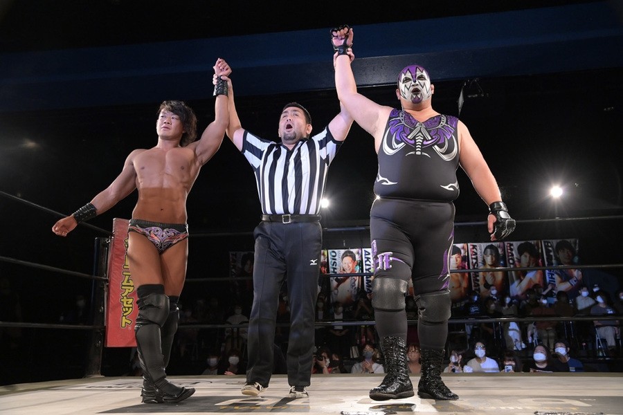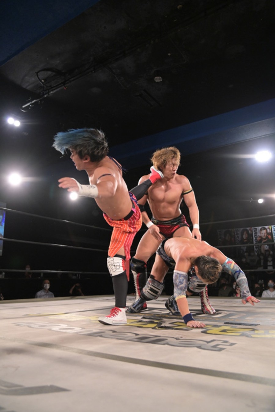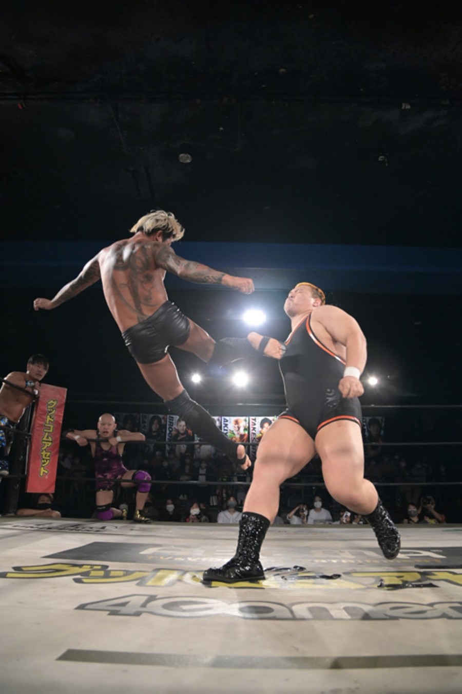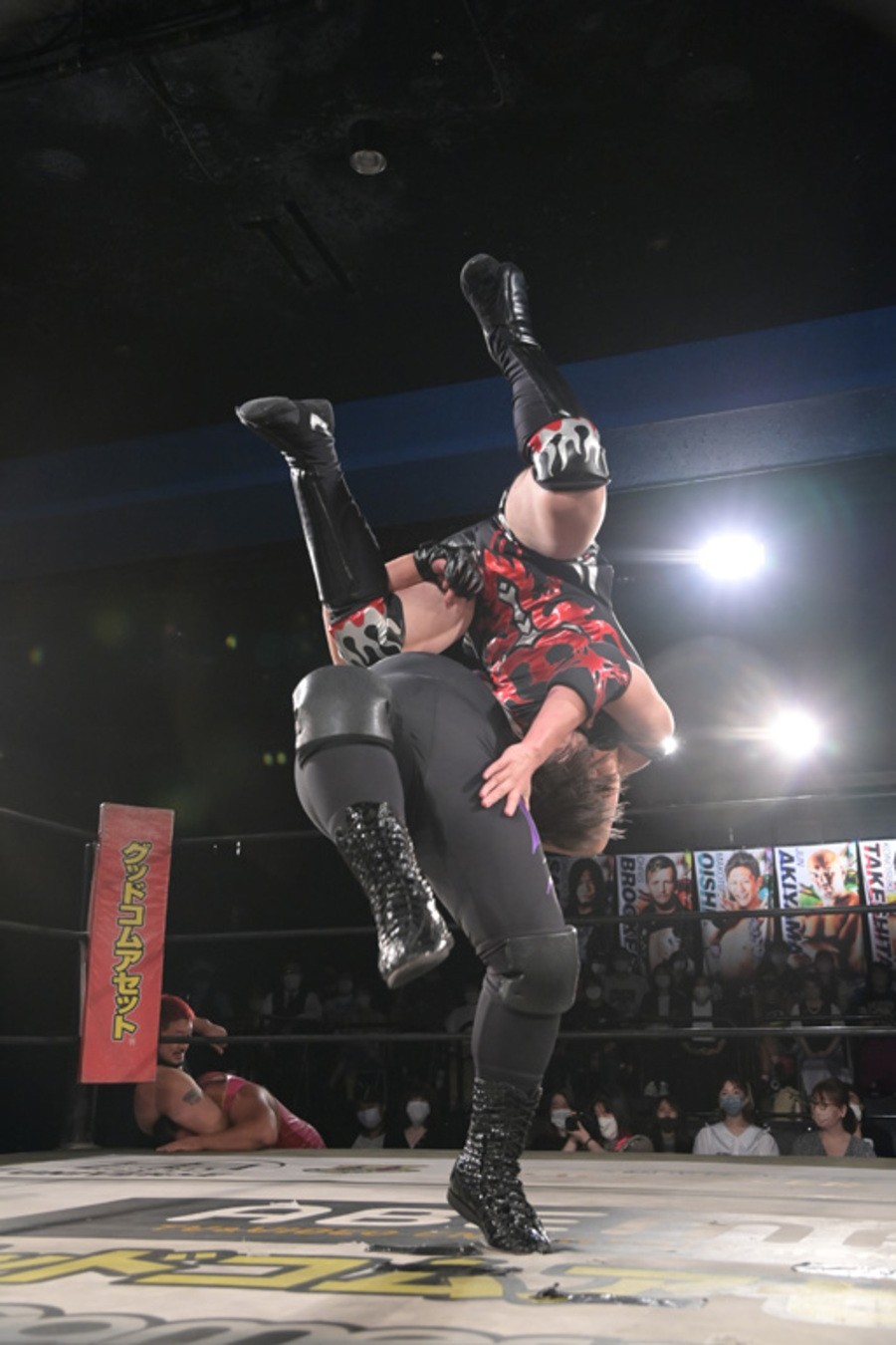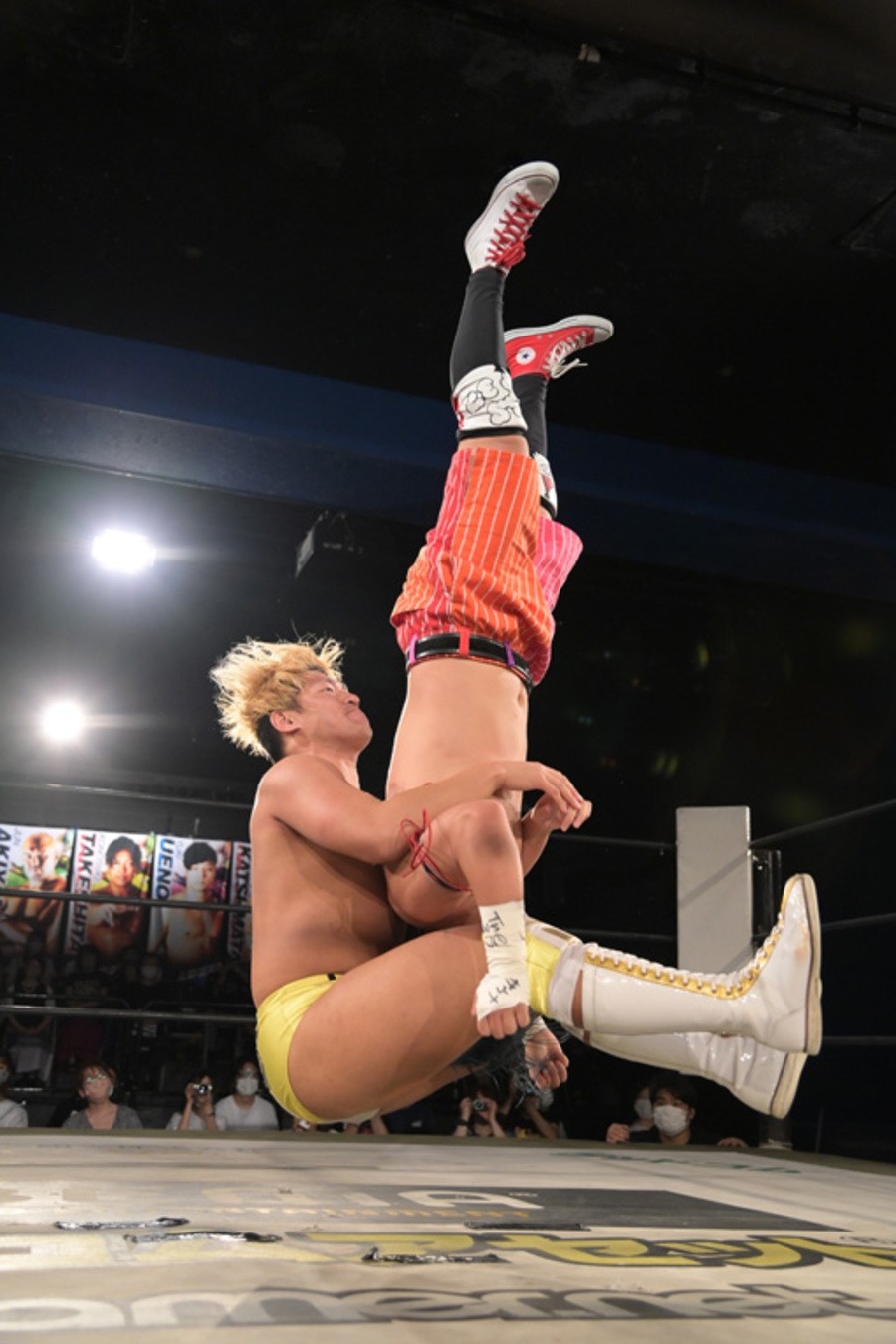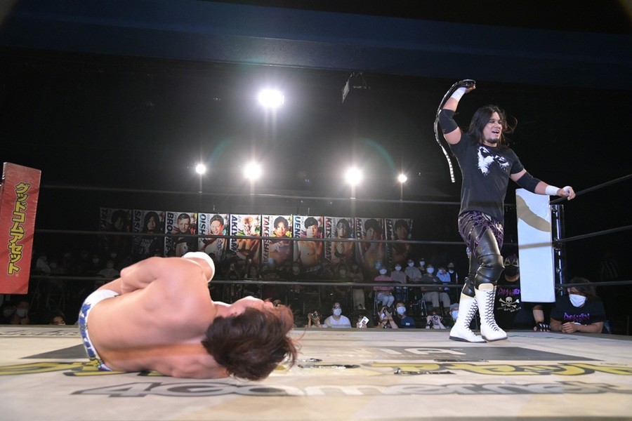 竹下 今日は勝俣が負けちゃいましたけど僕が絶好調であることはこの一敗が影響するわけじゃないし、キープできていると思うので。大石さんが挑戦表明してくれたことで8・15後楽園、8・21川崎と秋山選手から2タテ。シングル2連敗してるので、タッグとはいえタイトルマッチなのでここで一気に2タテして、勝ち星を取り返したいと思います。