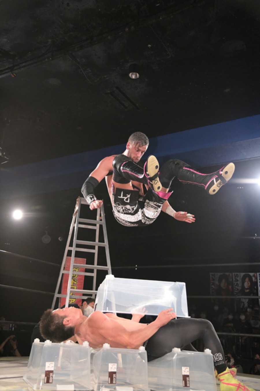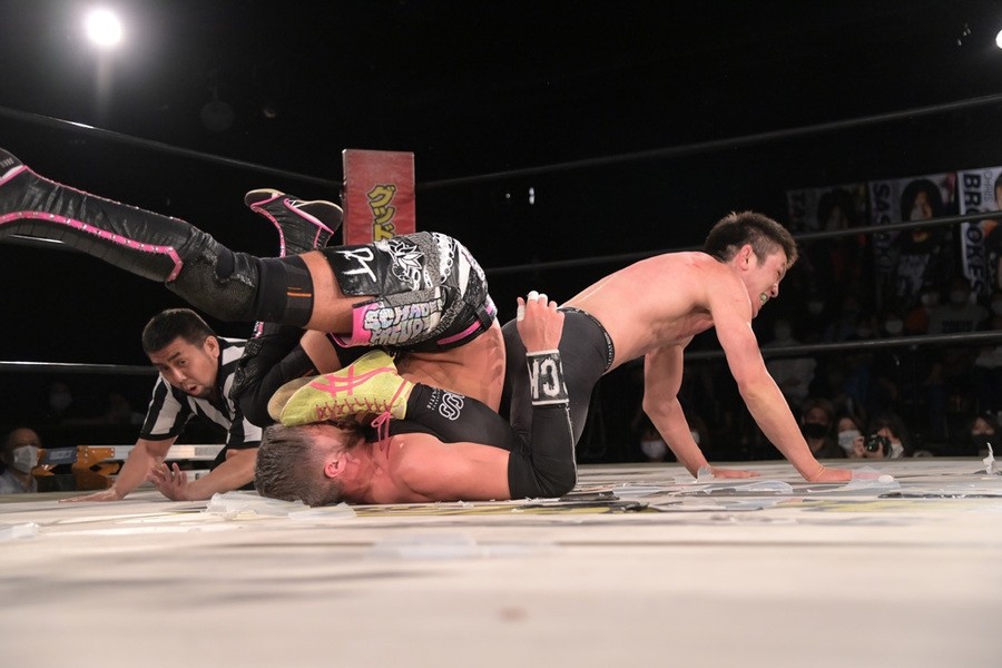 KING OF DDT1回戦で佐々木が上野から1分で勝利を収めた因縁の地、新宿FACEで上野と佐々木がタッグで激突。両チームが入場するとDAMNATIONが奇襲をしかけ開始のゴング。サミングから佐々木はレフェリーの死角を突いて高鹿にいきなり急所蹴り。しかし上野が佐々木と高尾を2人まとめてダブルニーで圧殺。そのまま高尾を攻め込むが、高尾はディープインパクトを決め、ダイビング・フットスタンプを狙う。上野は回避すると高いドロップキックを決める。フロッグ・スプラッシュを狙ってコーナーに上がるも佐々木が落とす。高尾からタッチを受けた佐々木がフライング・ラリアット。ここで高鹿が飛び込んで佐々木に向かって行くが、高尾が場外で足を引っ張る。佐々木と高尾が上野に合体攻撃。佐々木のトラースキックはカウント2。高尾のみちのくドライバーⅡから佐々木がダイビング・エルボー。カウント2で高鹿がカット。高鹿が高尾に水車落とし。高鹿のアシストから上野が佐々木にスタンディングのシャイニング・ウィザード。続けてブリザード・スープレックスを狙うが佐々木が逆さ押さえ込み。カウント2。立ち上がった上野がハーフネルソン・スープレックス・ホールドを決めるもカウント2。上野がBMEを放つが、佐々木は回避。高尾がレフェリーの気をそらす隙に佐々木が上野に急所蹴り。すぐさま佐々木式ウラカンラナを決めるとなんと3カウント。またも同じ新宿で上野が苦汁をなめる結果となってしまった。