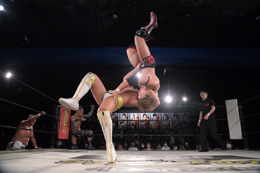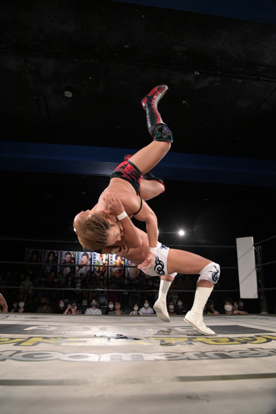 Eruptionが抜群のコンビネーションを見せ、最後は赤井が中村から勝利。赤井がマイクを持ち退場しようとする樋口と坂口を呼び止めると「どう思ってるんですか? 久しぶりにEruptionで組んで、たまに組んでも、こうやってちゃんと結果残して、ちゃんとユニットとしての格をもっと上げた方がいいと思うんですよ。私たちに今足りへんのって、6人タッグのベルト。前落としてからそれからずっと何も言わへんままで、こんなのでいいんですか、うちら。その辺ちょっと2人どう思ってるのか聞きたいです」と言って坂口にマイクを渡す。坂口がマイクを持ち「赤井、言いたいことはよくわかるよ。6人タッグ、今チャンピオン誰だかわかるか? 強烈だぞ? お前にその覚悟はあるのか?」と問うと、赤井は「うるせーっ!」と叫びながら坂口にビンタ。「お前もじゃー!」と言ってなぜか樋口にもビンタ。改め赤井がマイクを持つと「今誰がチャンピオンかなんて見たらわかるやんか! 今のDDTなんて待っててもチャンス落ちてこぉへんねん! 自分でチャンス掴み取らなあかんねん!」と言うや否や再び坂口と樋口にビンタ。赤井は「わかったか! アホンダラ! うちは一つ考えがあんねん、うちのやり方で行動に移させてもらうわ。わかったか!」と叫ぶと戸惑う樋口と坂口を尻目に赤井がさっさと退場していった。