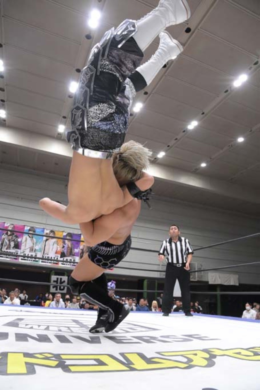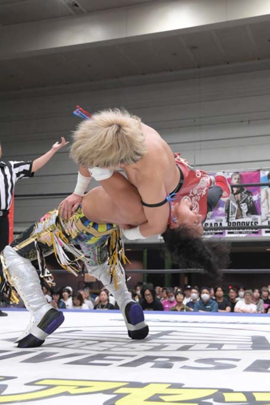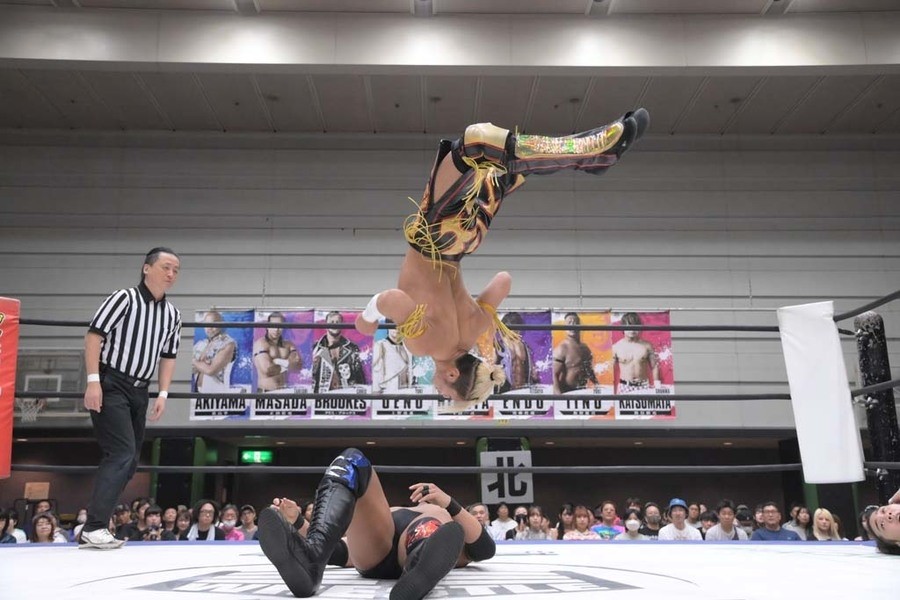 また、セミファイナル(上野勇希&秋山準vsHARASHIMA&平田一喜)終了後、「いつでもどこでも挑戦権」を保持するKANONが上野の前に立つも、「まだ俺が求めてる最低で最悪な状態じゃない。ボロボロの状態で使わせてもらう」と、この日の行使は回避した。須見和馬の保持していた「いつどこ」は高鹿佑也に移動。「使いたいベルトも決まってるので、ここぞというタイミングで行使して、ベルトに近付きたい」(高鹿)。