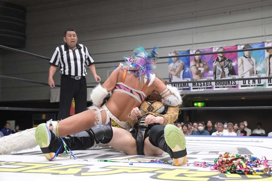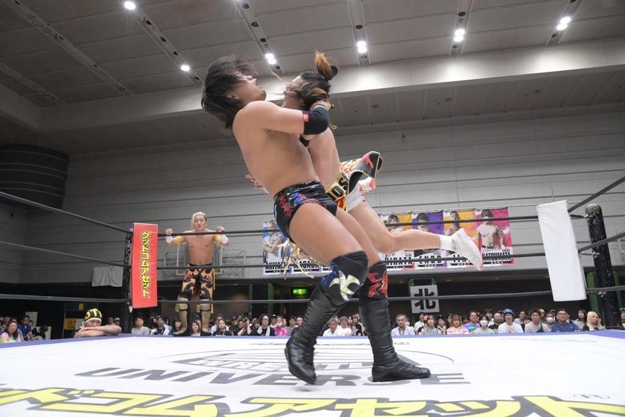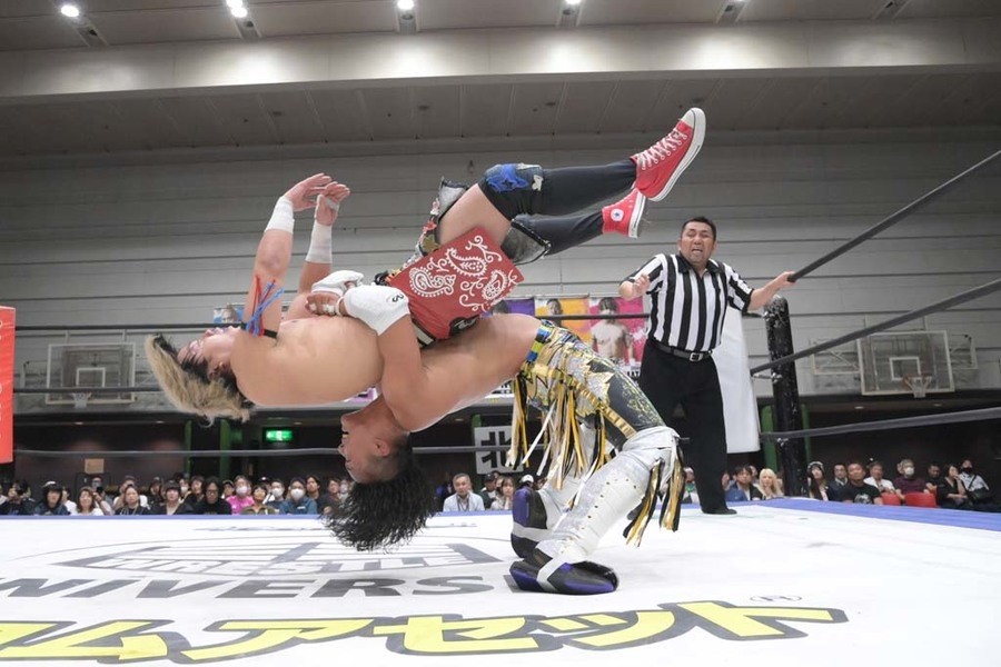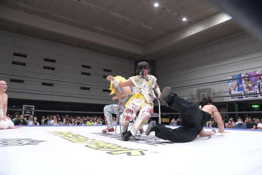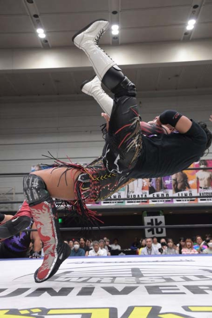 また、セミファイナル(上野勇希&秋山準vsHARASHIMA&平田一喜)終了後、「いつでもどこでも挑戦権」を保持するKANONが上野の前に立つも、「まだ俺が求めてる最低で最悪な状態じゃない。ボロボロの状態で使わせてもらう」と、この日の行使は回避した。須見和馬の保持していた「いつどこ」は高鹿佑也に移動。「使いたいベルトも決まってるので、ここぞというタイミングで行使して、ベルトに近付きたい」(高鹿)。