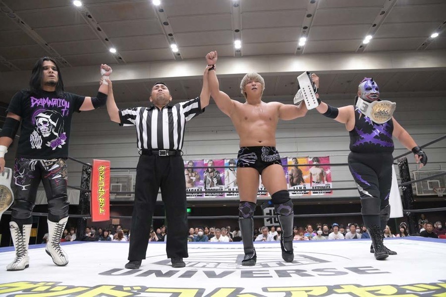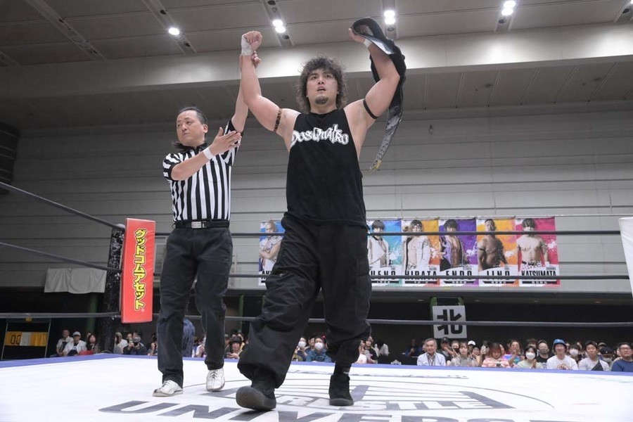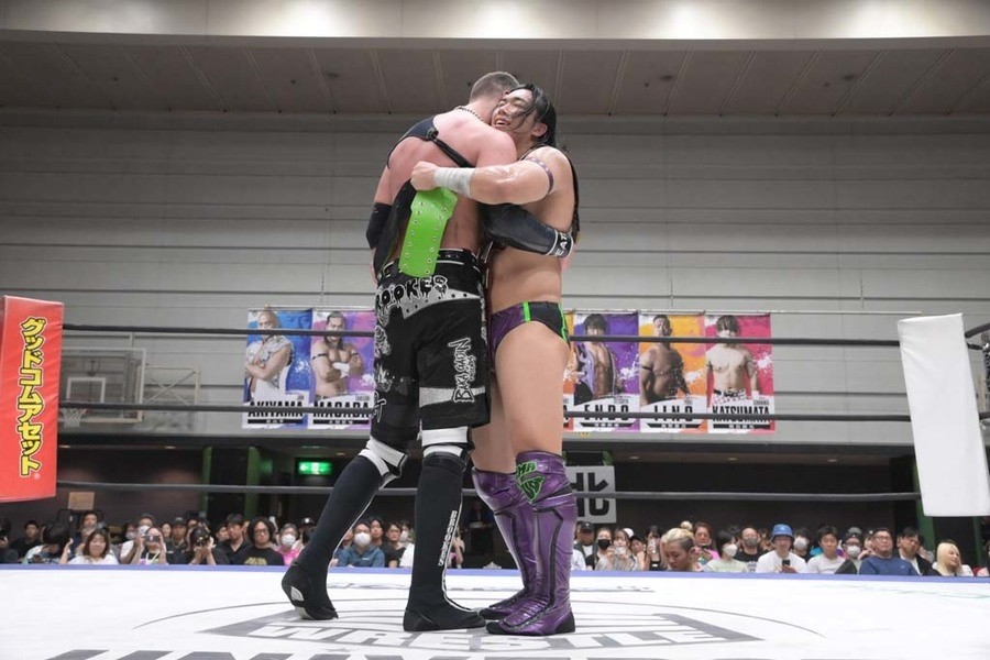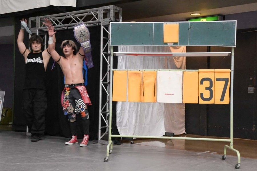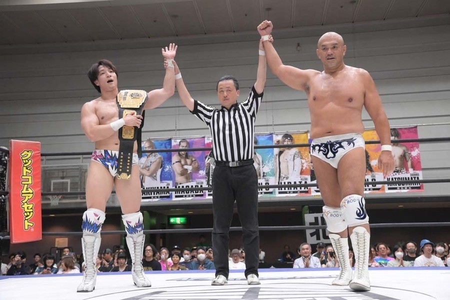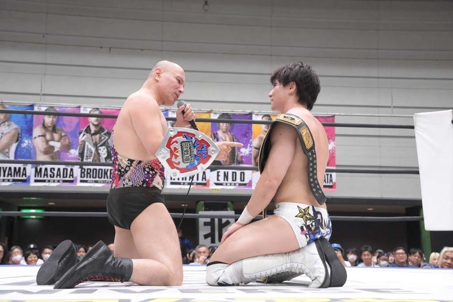 クリスは「(7・21)両国から3週間で、俺たちが挑戦して。BURNINGは強い。やっぱり心はBURNINGだね。もしもう1回やりたいならいつでもいい」とマイク。正田は「タイトルマッチが決まってから、何かが足りないとか、言葉が伝わらないとか、色々言われてきたけど、今日このKO-Dタッグベルトを手にしたことで、答えになる道しるべが見つかったかなって思いました。これからも正田壮史は‟第2の誰々“とかじゃなく、正田壮史として、DDTの未来として、引っ張っていくんで、応援よろしくお願いします」と叫び、‟第2の竹下幸之介”と揶揄(やゆ)されてきた呪縛から解き放たれた様子。