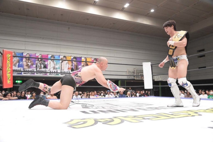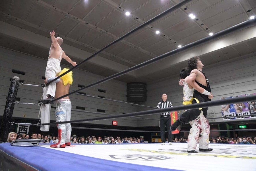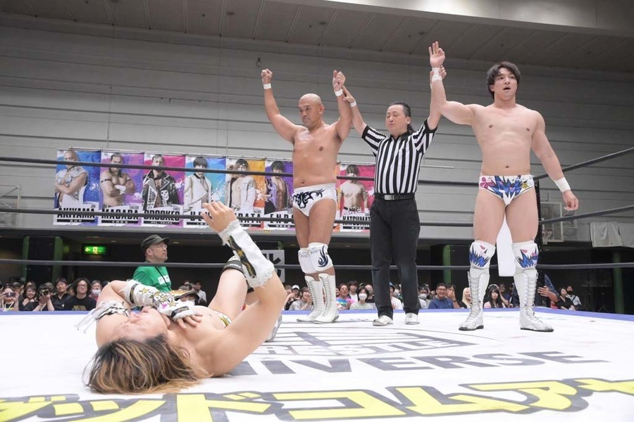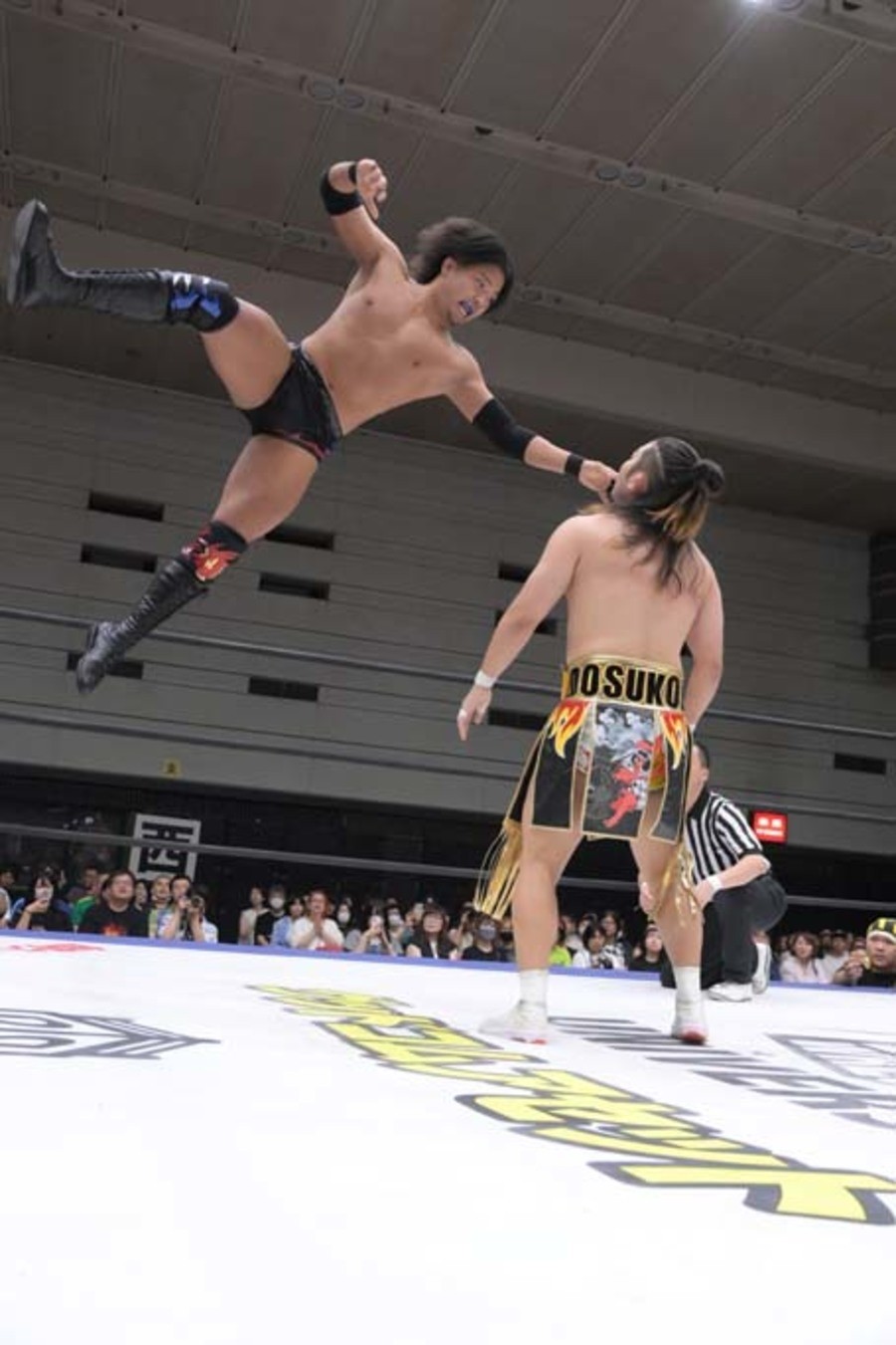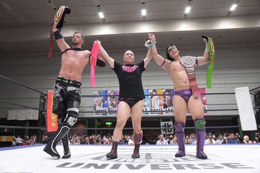 クリスは「(7・21)両国から3週間で、俺たちが挑戦して。BURNINGは強い。やっぱり心はBURNINGだね。もしもう1回やりたいならいつでもいい」とマイク。正田は「タイトルマッチが決まってから、何かが足りないとか、言葉が伝わらないとか、色々言われてきたけど、今日このKO-Dタッグベルトを手にしたことで、答えになる道しるべが見つかったかなって思いました。これからも正田壮史は‟第2の誰々“とかじゃなく、正田壮史として、DDTの未来として、引っ張っていくんで、応援よろしくお願いします」と叫び、‟第2の竹下幸之介”と揶揄(やゆ)されてきた呪縛から解き放たれた様子。