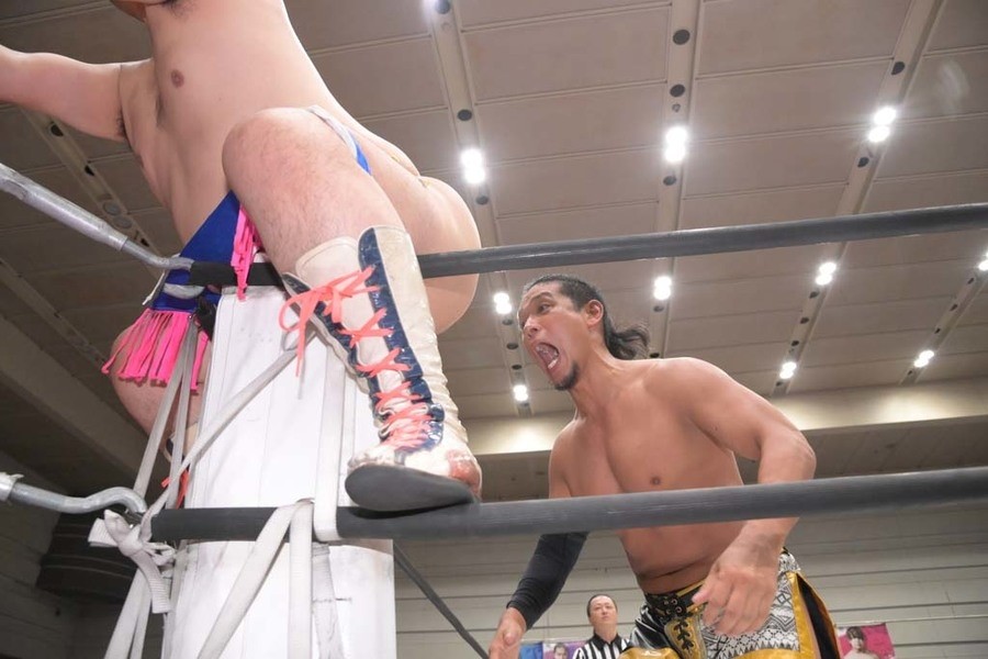 DDT EXTREME王者の勝俣瞬馬が“関西プロレス界の若き雄”木下亨平(ダブプロレス)を変則ルールで退け、5度目の防衛に成功した。