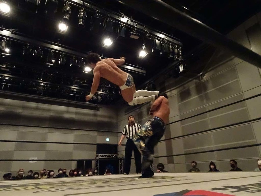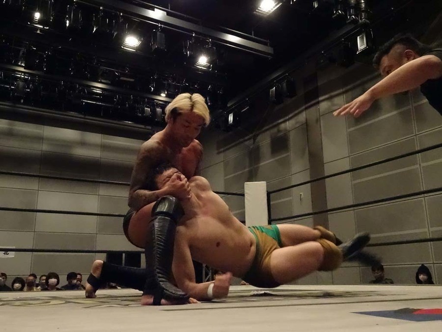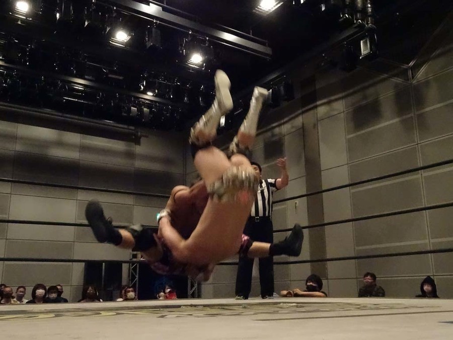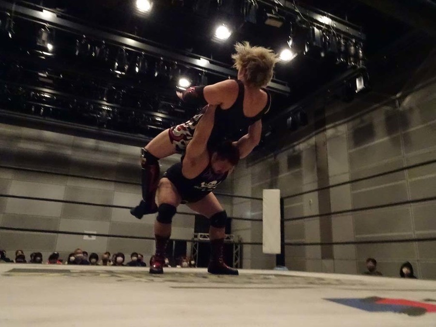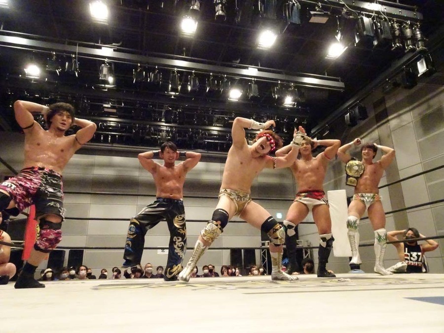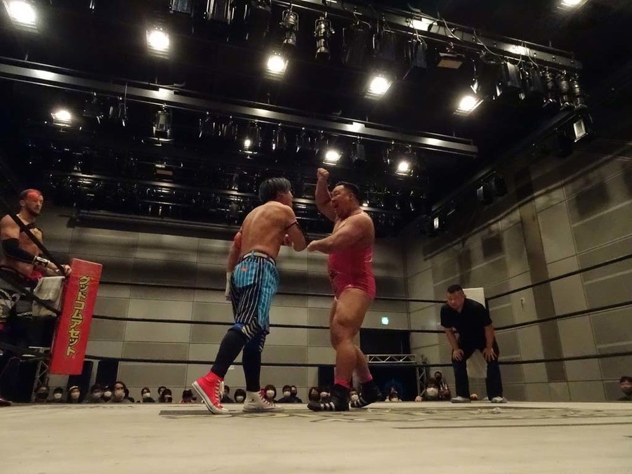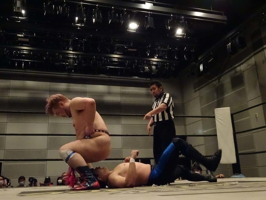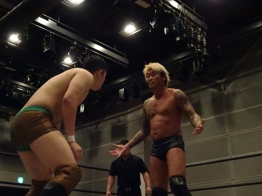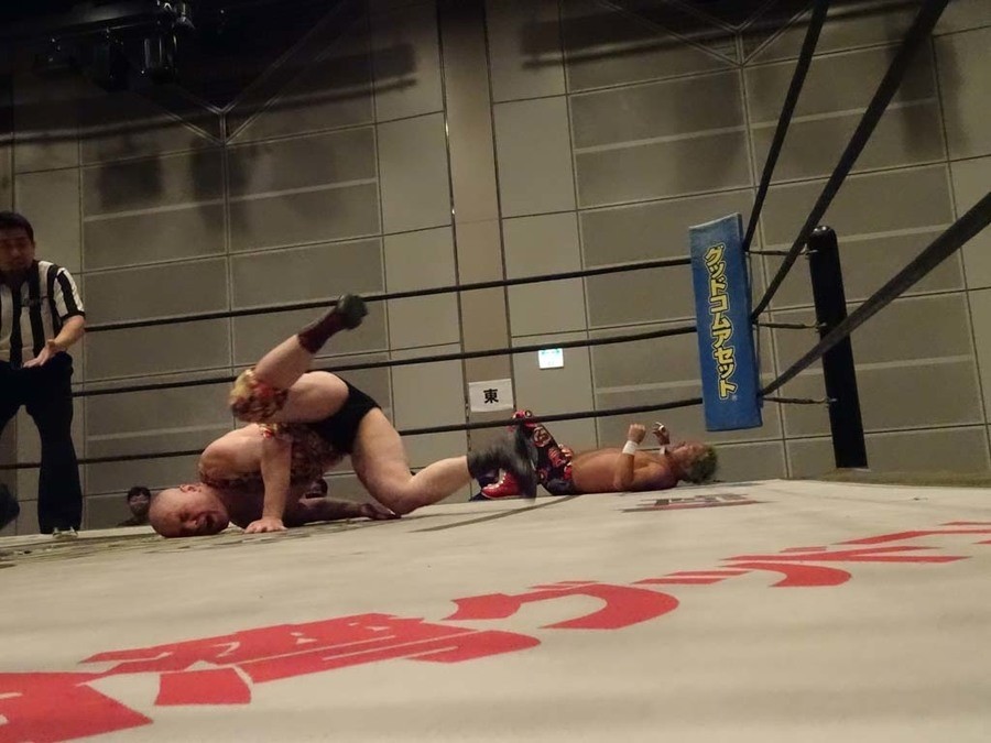 序盤は彰人がDAMNATIONに代わる代わる捕まる展開。しかし彰人がドラゴンスクリューを連発で決め逆転に成功すると、岡田にタッチ。岡田が串刺しのエルボーやランニング・エルボーで高尾に迫る。ダイビング・ヘッドバットを放つもカウント2。高尾もディープインパクトを決め、大和に繋ぐ。大和が岡田にスピアからスライディングX。エルボーの打ち合いになるも岡田が打ち勝ちドロップキック。岡田から納谷へ。納谷が串刺しのボディアタックからDDT、スクラップバスターで大和を追い込む。大和がカウンターのゼロ戦キックを決めると、火野にタッチ。火野が逆水平を連発し納谷を攻め立てる。納谷がエルボーを放っていくも火野は逆水平。納谷がキチンシンクを決め、ラリアットを狙うもキャッチした火野は投げっ放しのキャプチュード。それでも向かって行く納谷だが、火野はショートレンジのラリアット、カウント2。火野が納谷をロープに走らせてからラリアットをぶち込むも、納谷はカウント2で返す。ならばと火野が重い納谷を抱え上げ、FuckingBOMBで叩き付けると納谷も返せず3カウント。