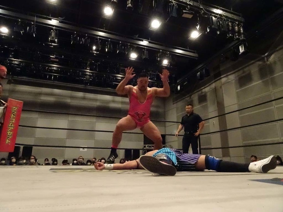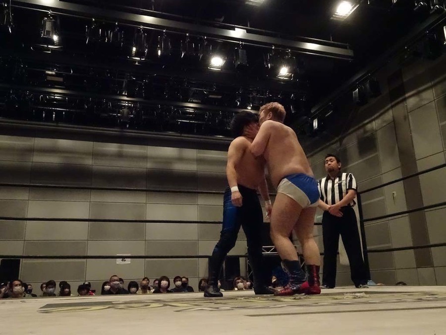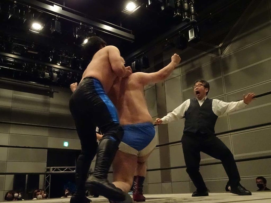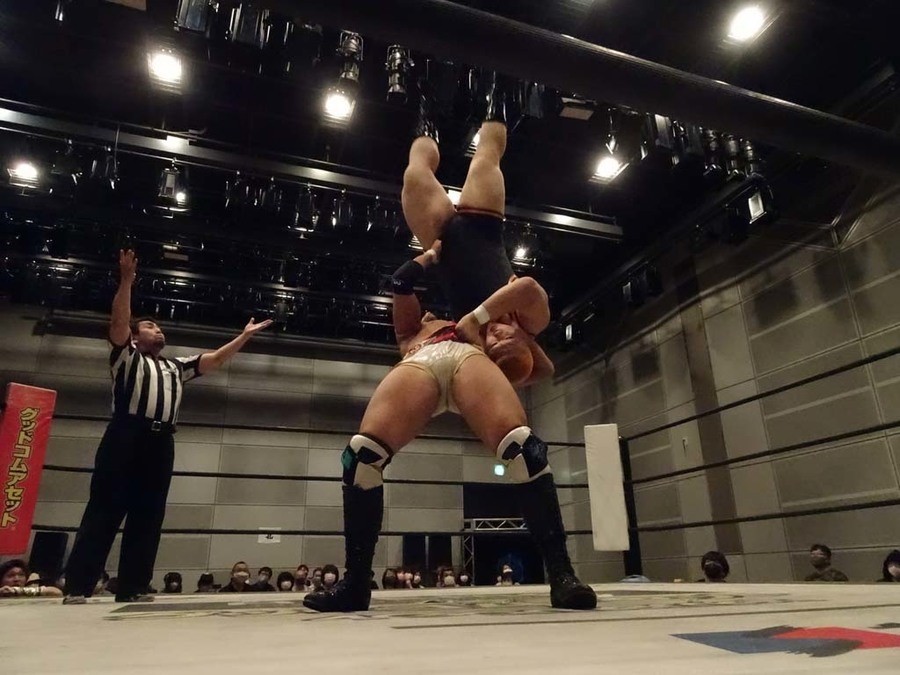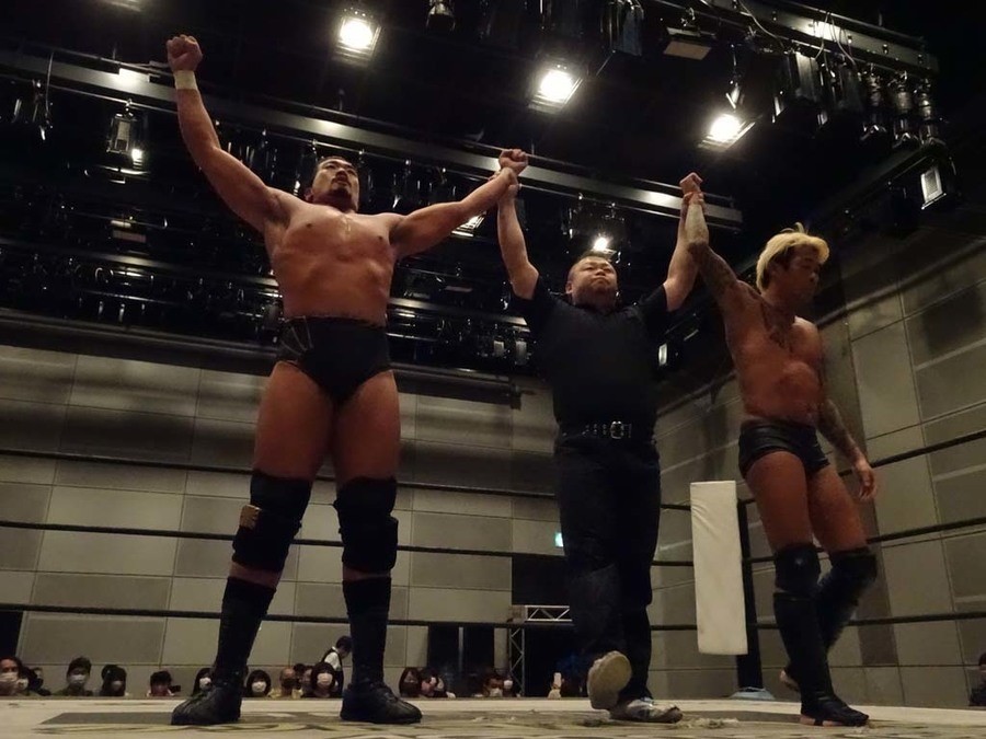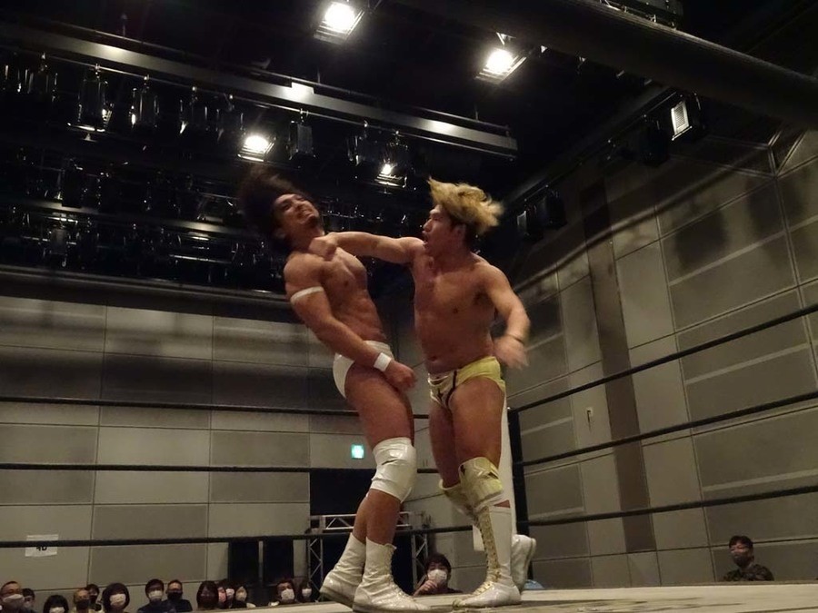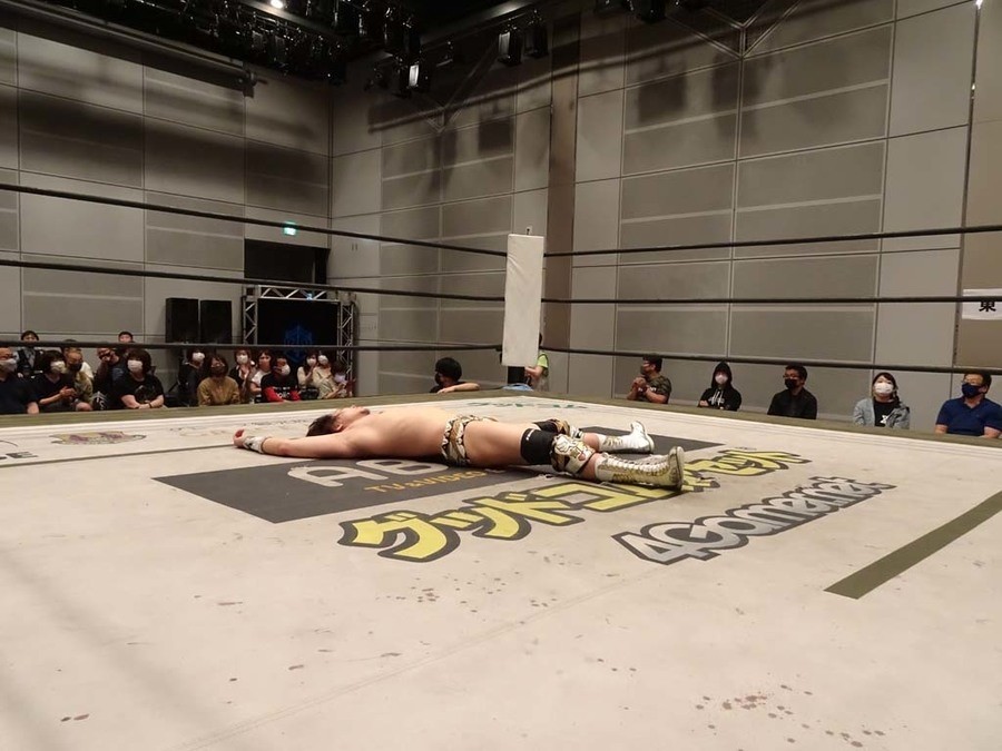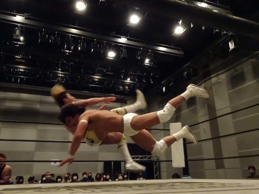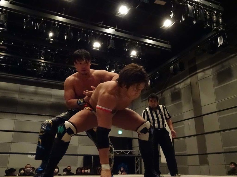 序盤は彰人がDAMNATIONに代わる代わる捕まる展開。しかし彰人がドラゴンスクリューを連発で決め逆転に成功すると、岡田にタッチ。岡田が串刺しのエルボーやランニング・エルボーで高尾に迫る。ダイビング・ヘッドバットを放つもカウント2。高尾もディープインパクトを決め、大和に繋ぐ。大和が岡田にスピアからスライディングX。エルボーの打ち合いになるも岡田が打ち勝ちドロップキック。岡田から納谷へ。納谷が串刺しのボディアタックからDDT、スクラップバスターで大和を追い込む。大和がカウンターのゼロ戦キックを決めると、火野にタッチ。火野が逆水平を連発し納谷を攻め立てる。納谷がエルボーを放っていくも火野は逆水平。納谷がキチンシンクを決め、ラリアットを狙うもキャッチした火野は投げっ放しのキャプチュード。それでも向かって行く納谷だが、火野はショートレンジのラリアット、カウント2。火野が納谷をロープに走らせてからラリアットをぶち込むも、納谷はカウント2で返す。ならばと火野が重い納谷を抱え上げ、FuckingBOMBで叩き付けると納谷も返せず3カウント。