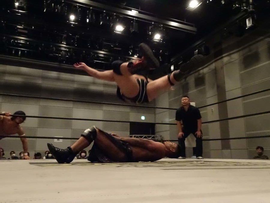 大鷲の誘いに乗り、クリスが大鷲とルチャの攻防。飯野と勝俣になると、飯野がハカの構えで勝俣を威嚇しまくる。大鷲と飯野が勝俣を捕まえる展開が続く。勝俣は熱波WER!!式のハカエルボーを狙うも自爆。それでも何とか逆転に成功し、クリスに繋ぐ。大鷲が2人まとめて飯野にタッチ。ハカエルボー狙いはクリスが丸め込み、カウント2。クリスが飯野の背中にダイビング・セントーン。勝俣に代わり、クリスとトレイン攻撃。しかしここで勝俣のドロップキックがクリスに誤爆すると険悪な雰囲気に。クリスが勝俣に逆水平。飯野が勝俣にバックフリップ、そしてハカエルボー。カウント2。飯野が左のラリアットで勝俣を蹴散らし、得意のスピアを狙うが、勝俣は回避。そのまま横入り式エビ固めでガッチリ押さえ込むと、飯野も返せず3カウント。