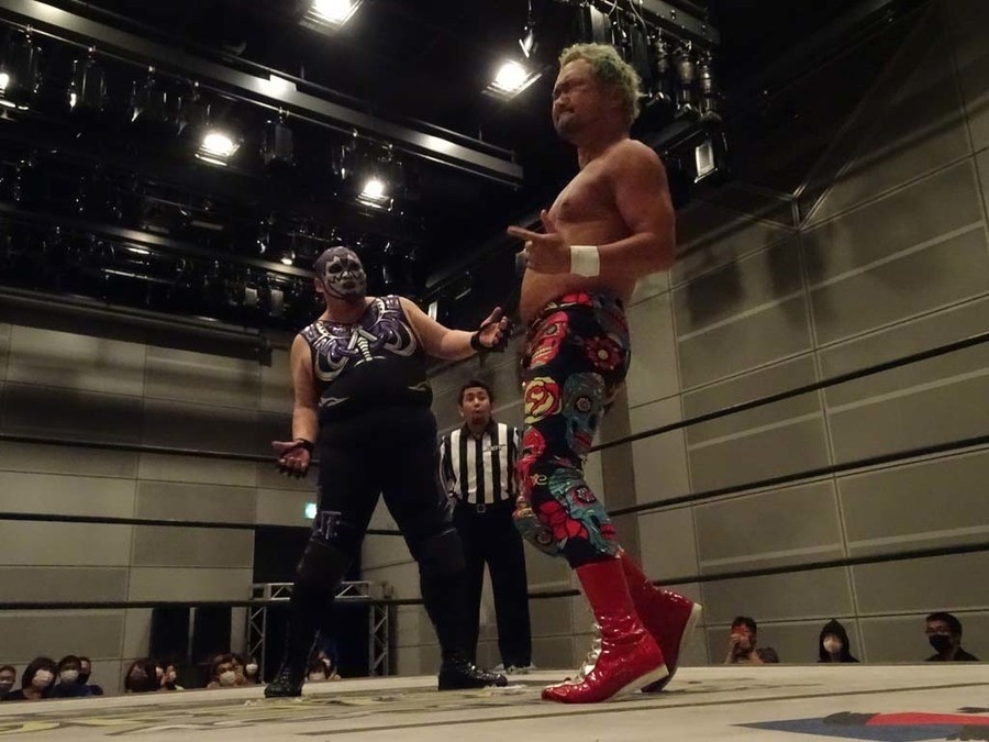 DISASTER BOXとThe 37KAMIINAのユニット対抗戦。The 37KAMIINAが巧みな連係攻撃を交えながら、平田を捕まえる。上野の場外プランチャ、MAOのラ・ケブラーダ、竹下のトペ・コンヒーロと場外ダイブの波状攻撃も見せる。苦しい展開の平田だが、MAOにコルバタを決めて形勢逆転。HARASHIMAに繋ぐ。HARASHIMAがチェストーで飛び込む。HARASHIMAがMAOに攻勢に出るも、上野がブラインドタッチを使いダイビング・ボディアタックで飛び込む。HARASHIMAにドロップキックからリバース・スプラッシュ式のダブルニー。突っ込む上野をかわしたHARASHIMAは雪崩式ブレーンバスターを決める。エルボーの打ち合いから、HARASHIMAがバズソーキック。上野もスタンディング式のシャイニングウィザード。両者ダウンし、竹下と吉村にタッチ。竹下はフライング・ラリアット、ブレーンバスターを決めて試合を優勢に進めるが、吉村も串刺しのラリアットからフロント・スープレックス。パワーボム狙いは竹下が堪える。逆に竹下がパワーボムを狙うも吉村はラリアット。竹下は倒れず。ラリアットが相打ちに。ラリアットを狙って走った竹下に吉村は払い腰。ここで吉村がラリアットを狙うと、控える平田がタッチを要求。吉村が渋々平田にタッチ。平田が延髄斬りを決めるも、竹下はすぐに形勢逆転。タッチをしようとするも「何かムカつくなぁ」と言って平田を垂直落下式ブレーンバスターで突き刺してからMAOにタッチ。MAOがカバーもカウント2で平田が返す。MAOがランニング・アッパー掌底を決めると、ここで両チームが入り乱れる展開に。The 37KAMIINAが主導権を握り、平田にスーパーパワーボムを狙うが、平田がこれをウラカンラナで切り返す。平田がMAOを押さえるところにHARASHIMAがスタンディングの蒼魔刀を放つが平田に誤爆。MAOが平田に追撃を狙うも、平田は奇跡を呼ぶ一発逆転首固めを連発もカウント2。エゴイスト・ドライバーの体勢に入るも、上野がスタンディング式シャイニングウィザードでカット。MAOがみちのくドライバーⅠを決めるが、平田は自力でキックアウト。ならばと続けてみちのくドライバーⅡを決めると平田も返せず3カウント。
