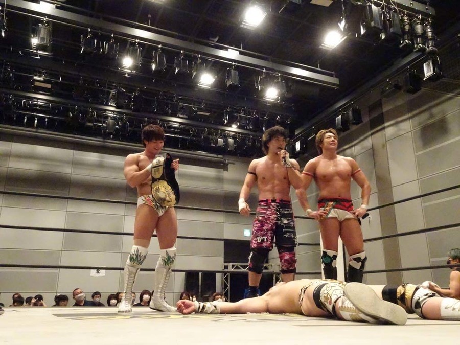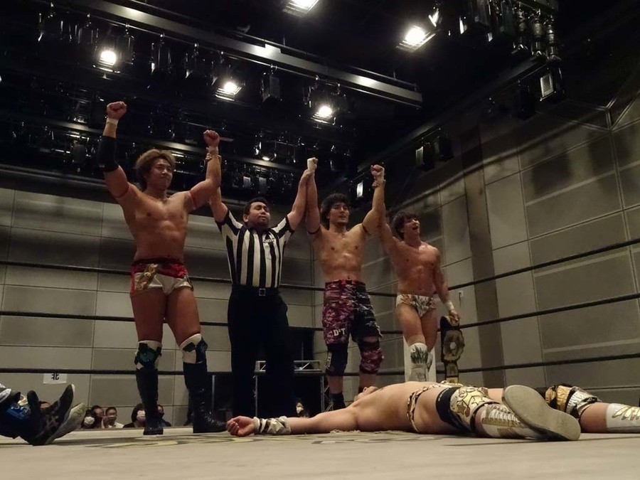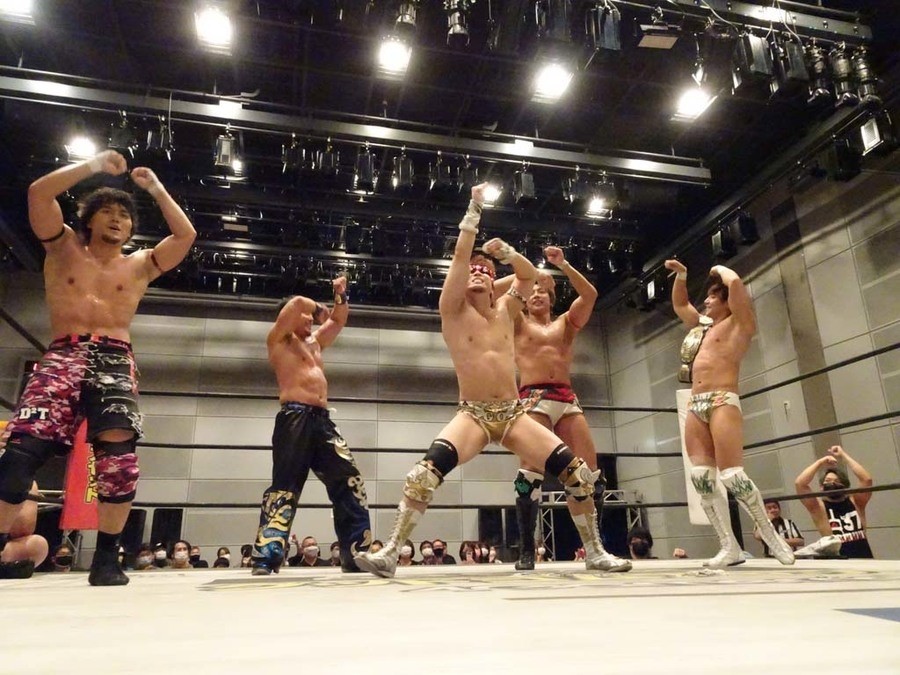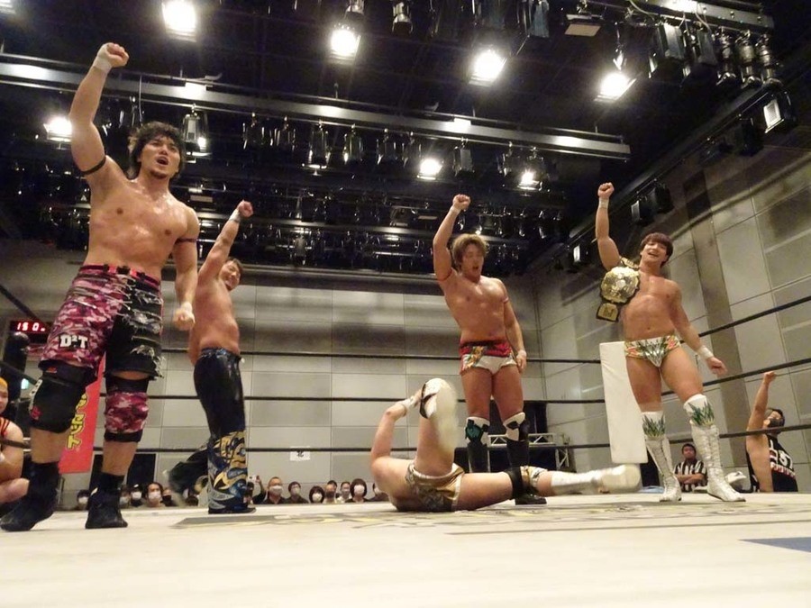 MAO こだわりを持ってやります、ということで。じゃ最後は広島がバク沸きしたあれでやりますか! 4人でタッグベルト巻いて、4人でKING OF DDT決勝行くぞ!