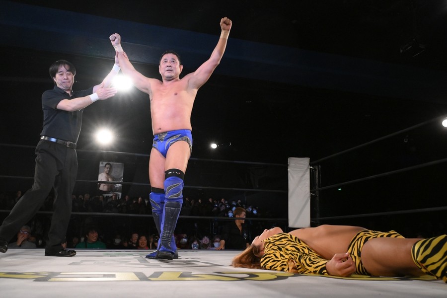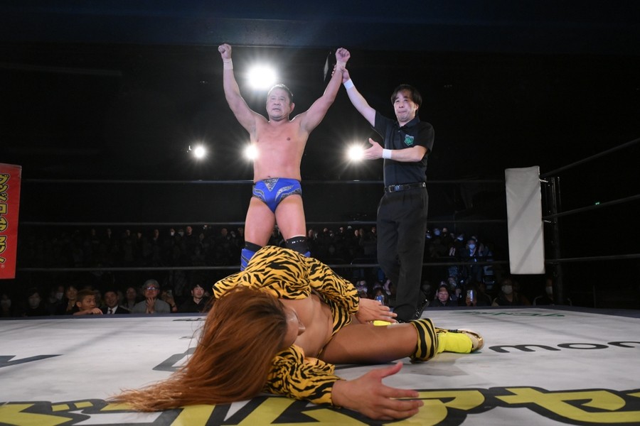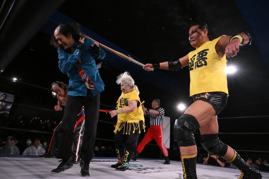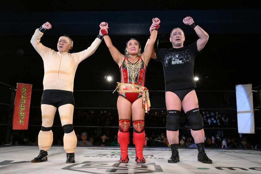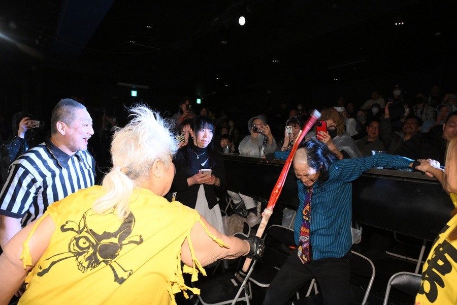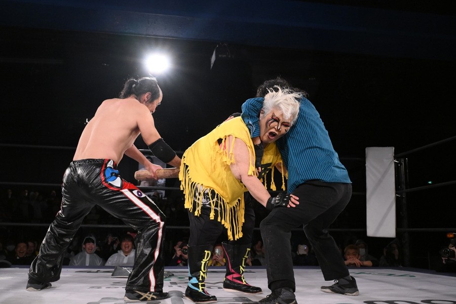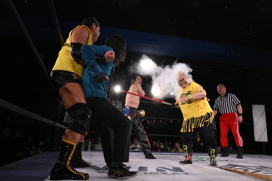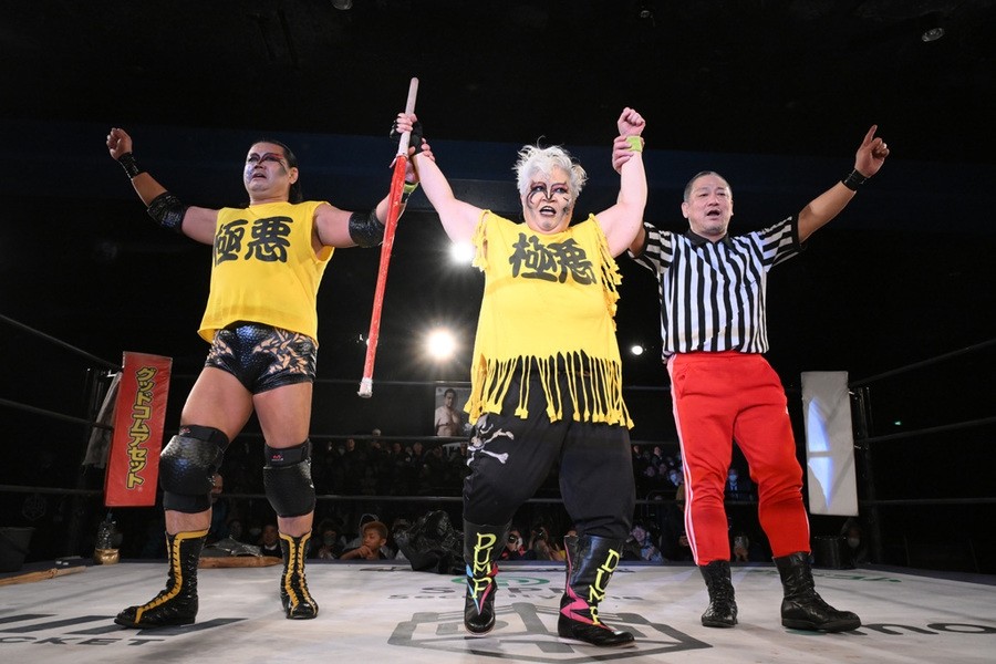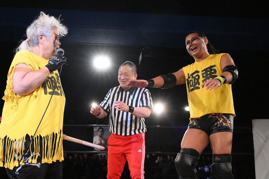 “極悪女王”ダンプ松本が阿部三四郎レフェリーの超高速カウントでバラモン兄弟制す!「髙木さん、35周年、40周年と頑張ってください」