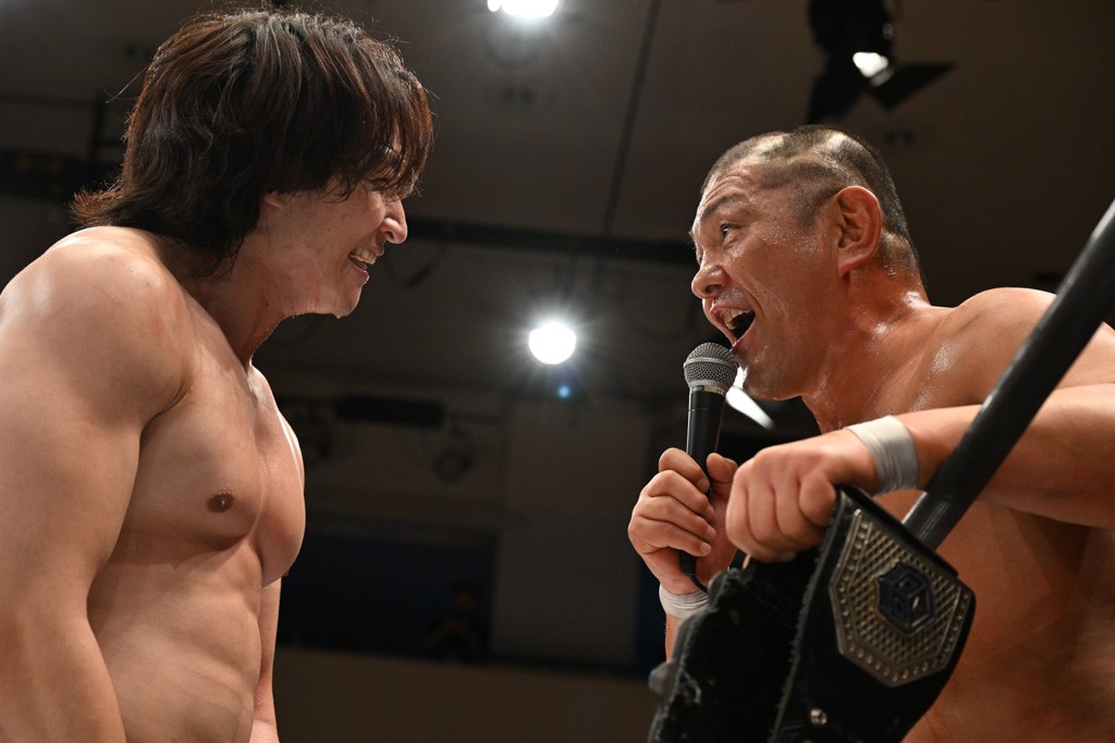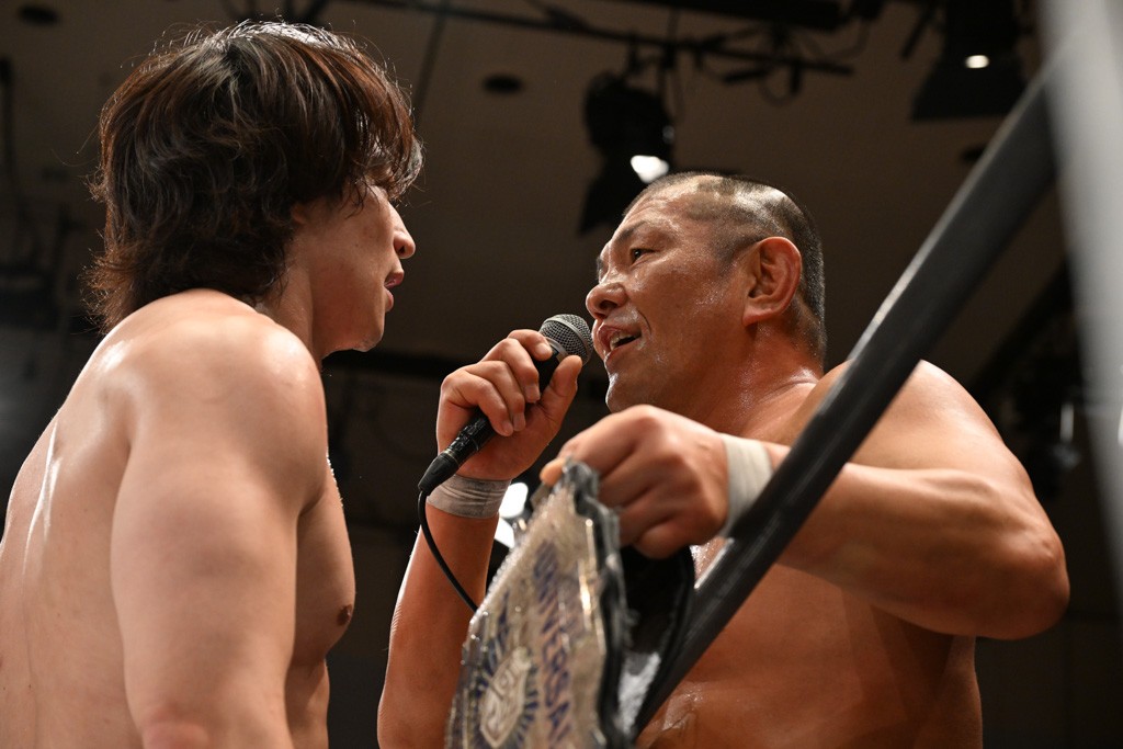 一方、鈴木は「上野、俺に勝ったと思うな。両国で2冠チャンピオンになるのはこの俺だ。そして、上野! 鈴木みのるの首は簡単に獲れねぇぞ。俺に勝つのはただ一つ。てめえの命をかけて俺の前に立て。俺が言いてぇのはそれだけだ」とすごみ、武知には「武知海青、あのクソガキ。プロレスなめるなよ。コノヤロー。次やったらぶち殺してやる」と戦慄の予告をした。