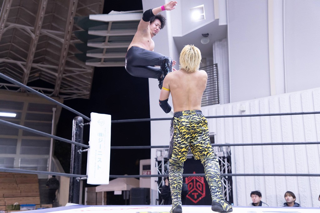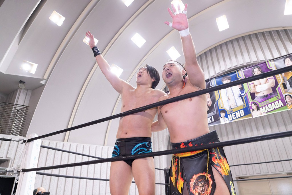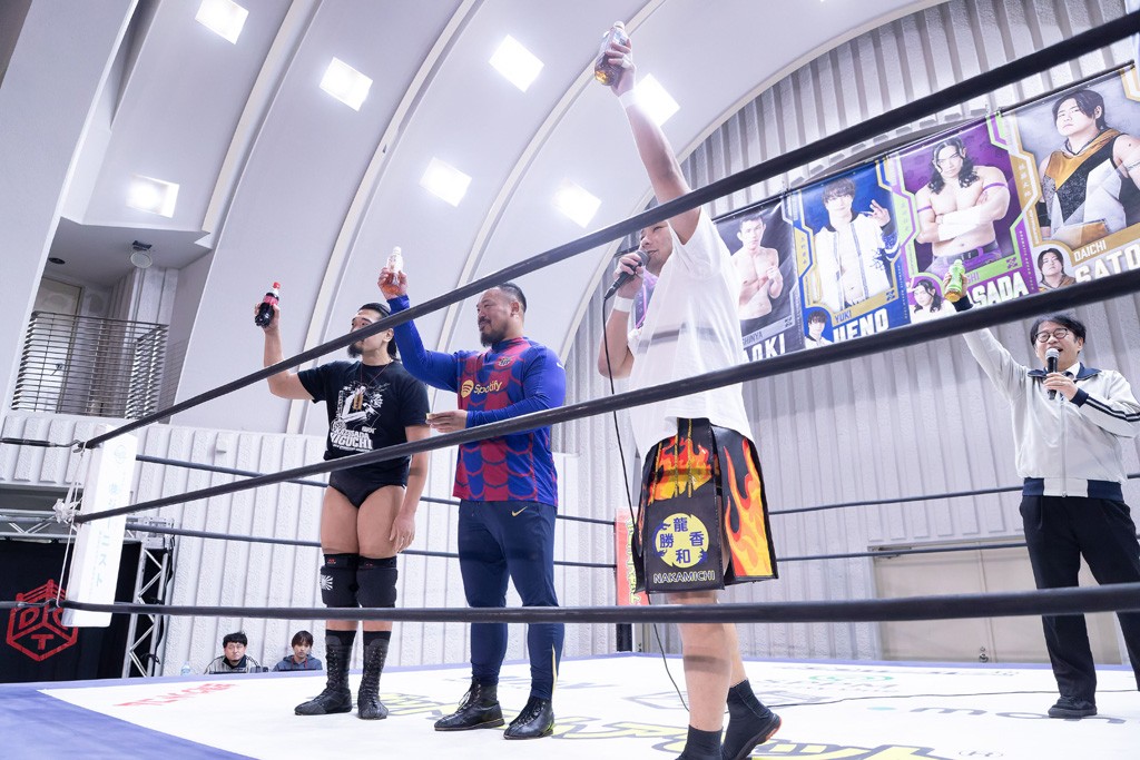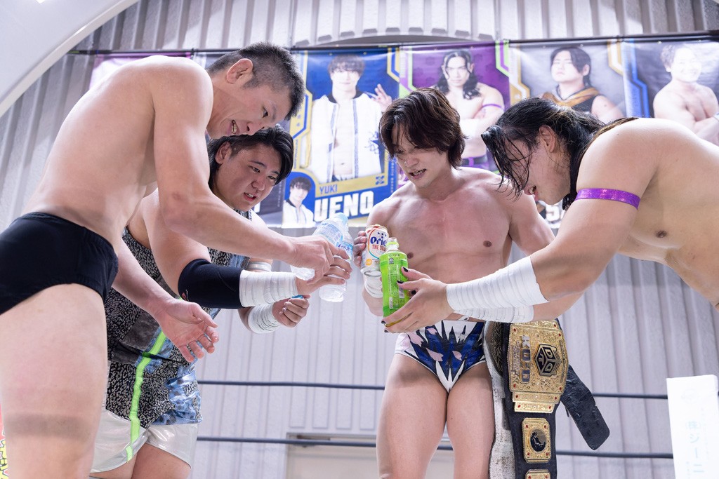 メインで行われたのは上野勇希&青木真也vs正田壮史&佐藤大地のスペシャルタッグマッチ。試合中盤、場外戦に突入し4選手が入場ゲートからバックステージに移動。その後リングに戻って来ると各選手の風貌が著しく変化したように感じられる場面なども。さらに終盤にはリング上の4選手がまるで分身したかのように、8選手に見えるカオス過ぎる展開を経て、最終的には上野が大地にJul.2を決め3カウントを奪取。KO-D無差別級王者が2025年最後のビアガーデンプロレスを勝利で締めくくった。マイクを持った上野は「年内最後のビアガーデン、皆さん楽しんでいただけましたでしょうか!?(会場拍手)ありがとう! 僕たちも凄く楽しい1年間、この上野での夜を過ごせました。今年のビアガーデンは今日で終わりですが、11月3日には『Ultimate Party』も待ってます。宴は続くぜ!(大歓声)まだまだ俺たちは両国も、両国に向けても、大阪も名古屋もあります。その先も続きます。盛り上げていくために乾杯出来んのか!?(大歓声)皆さん、今年もビアガーデンシリーズありがとうございました! 僕たちはみんなのおかげで楽しかったです! 来年もいくぜ! そして11月3日『Ultimate Party』で盛り上がりましょう! 今日はありがとうございました! せ~の、乾杯!」と大会を締めくくった。
