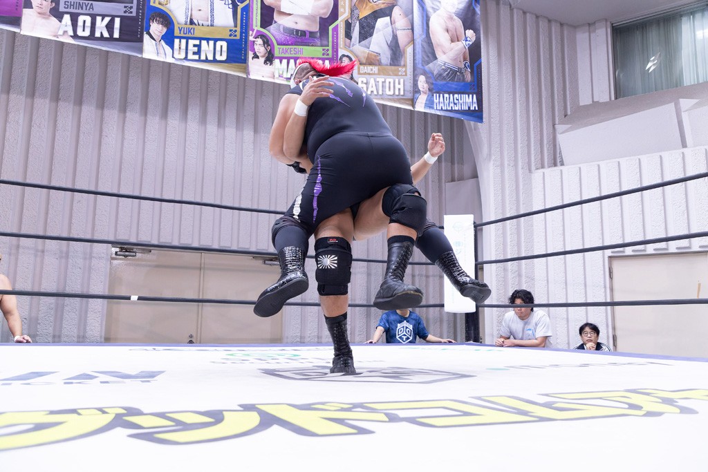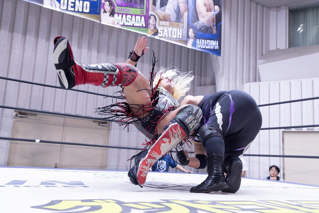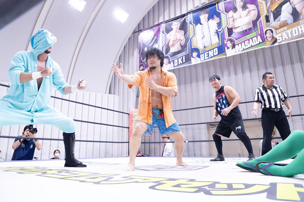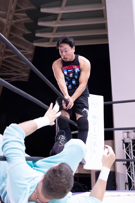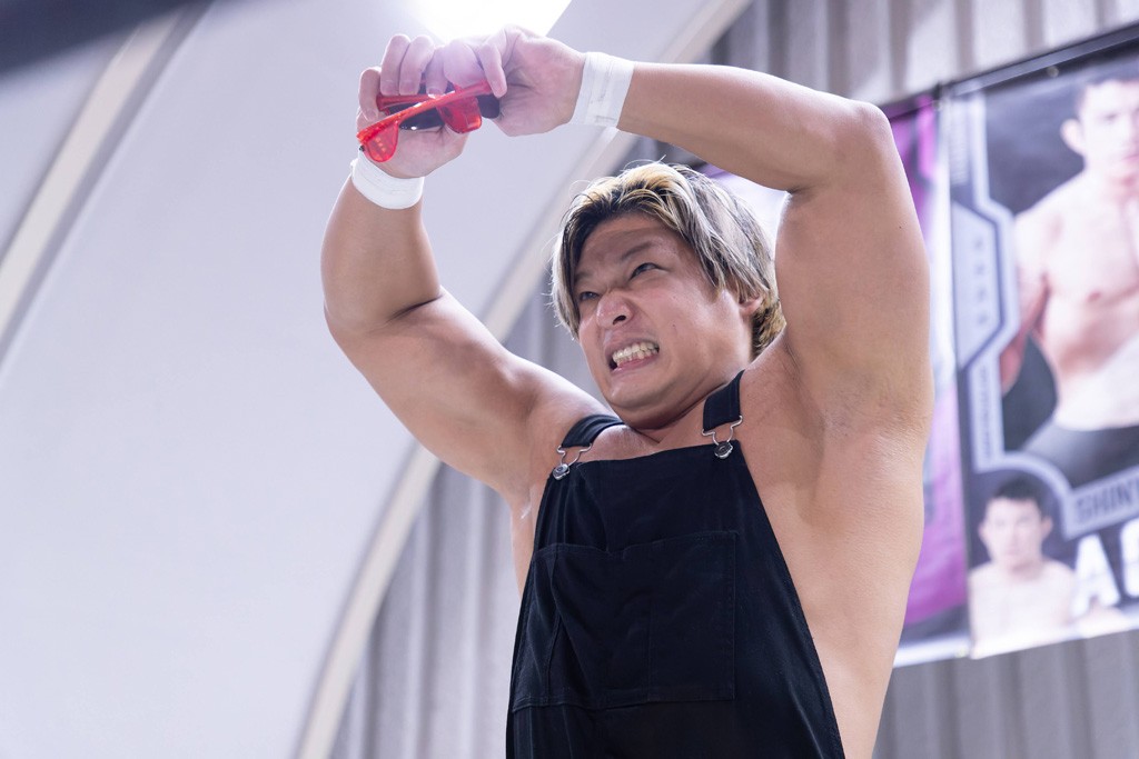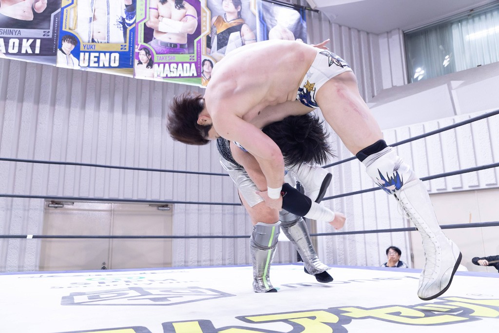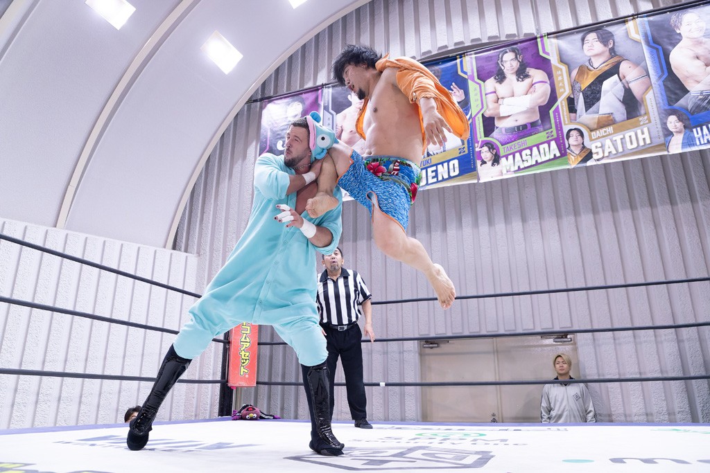 10月23日「ビアガーデンプロレス 2025 〜 THE FINAL 〜」東京・上野恩賜公園野外ステージ大会が開催。この日のセミファイナルは「KING OF DRUNK 2025 FINAL~年間王者決定戦~」と題し、3月27日上野大会で春の王者となったMAO、7月16日新宿大会でトリプルフォールにより3者同時で夏の王者となったHARASHIMA、佐々木大輔、クリス・ブルックスの計4人がドランクマッチ年間王者の座を懸けて激突した。今回の試合は、通常のプロレスルールに加え、試合中のランダムなタイミングで曲が流れ、その度にお酒を1杯飲み干さなくては失格となるルールで行われた。4選手が入場してくると、すでに全員泥酔状態。乾杯からビールを飲み干すと試合開始のゴングが鳴らされた。試合はいきなりの泥試合。グダグダな展開から曲が流れビールを4人、さらに松井レフェリーまでも飲み干し次第に仕上がっていく。松井レフェリーに一同がゴムパッチンを狙う展開になるが、松井レフェリーの逆襲に遭いクリス、MAO、HARASHIMAがゴムパッチンを被弾。中盤に差し掛かると、酒がテキーラに変更。4人の泥酔度合いが加速していく。場外に戦場を移すと、HARASHIMAが蒼魔刀を狙ったところで「爆乳戦隊パイレンジャー」がかかり、踊り出してしまい蒼魔刀は出来ず。増量したビールを4人が飲み干すと試合続行。リングに戻るとMAOが蒼魔刀を狙うが、またも「パイレンジャー」がヒット。ビールを飲み干した後に試合再開。クリスが蒼魔刀を狙うもまたまた「パイレンジャー」がヒットし中断。何とか4人が飲み干し試合を再開すると、佐々木が蒼魔刀狙うもまたまたまた「パイレンジャー」。4人が酒を飲み干そうとしたところ、突如今林GMが「いくらビアガーデンでもふざけ過ぎだろ!」とブチギレ。お客さんにも悪態をつくと、松井レフェリーをリングから追放。怒りの収まらない今林GMが「酒飲んでふざけてる奴らを見て喜んでる時代じゃねぇんだよ! 学生じゃねぇんだからさ!」と言うと、4人を次々と叱責していき「お前らもうちょっとプロレスに真摯に向き合えよ! ちゃんとプロレスしようぜ!」と叫んだところで「パイレンジャー」がヒット。すると今林GMもこの曲の魔力は打ち勝てず、踊り始める。今林GMがクリス、MAO、佐々木と裏拳で蹴散らすが、避けたHARASHIMAがアームブリーカーで今林GMの腕を破壊。今林GMが排除されると、コーナーで折り重なった佐々木&MAO&クリスにHARASHIMAがついに串刺し式の蒼魔刀を決めるもそのままダウン。するとHARASHIMAの上に3人が次々とダウン。松井レフェリーが3カウントを叩き試合は終了。松井レフェリーが折り重なった選手を1人ずつ剥がしていくと、HARASHIMAの真上で覆い被さりフォールの状態になっていたのは佐々木。松井レフェリーが佐々木を勝者と認定し、KING OF DRUNK 2025の年間王者は佐々木となった。バックステージで佐々木は「俺がKING OF DRUNK 2025覇者だ。俺は常識人だ。俺たちの飲み方を見てこんな飲み方をしてはいけないと学んで、家でやれ。ゲロぶち撒けるぞ、この野郎……!」と注意喚起なのか何なのかわからないことを叫び消えていった。