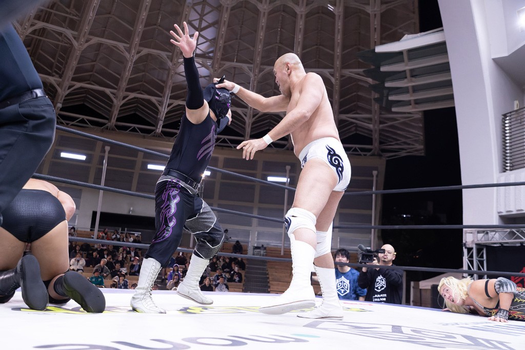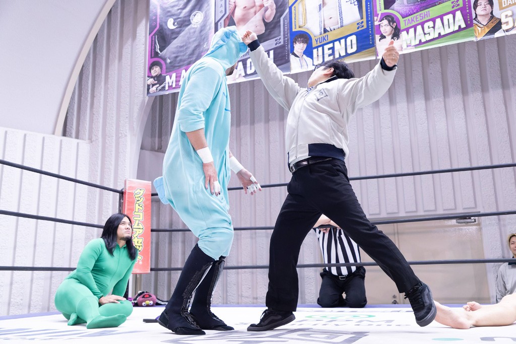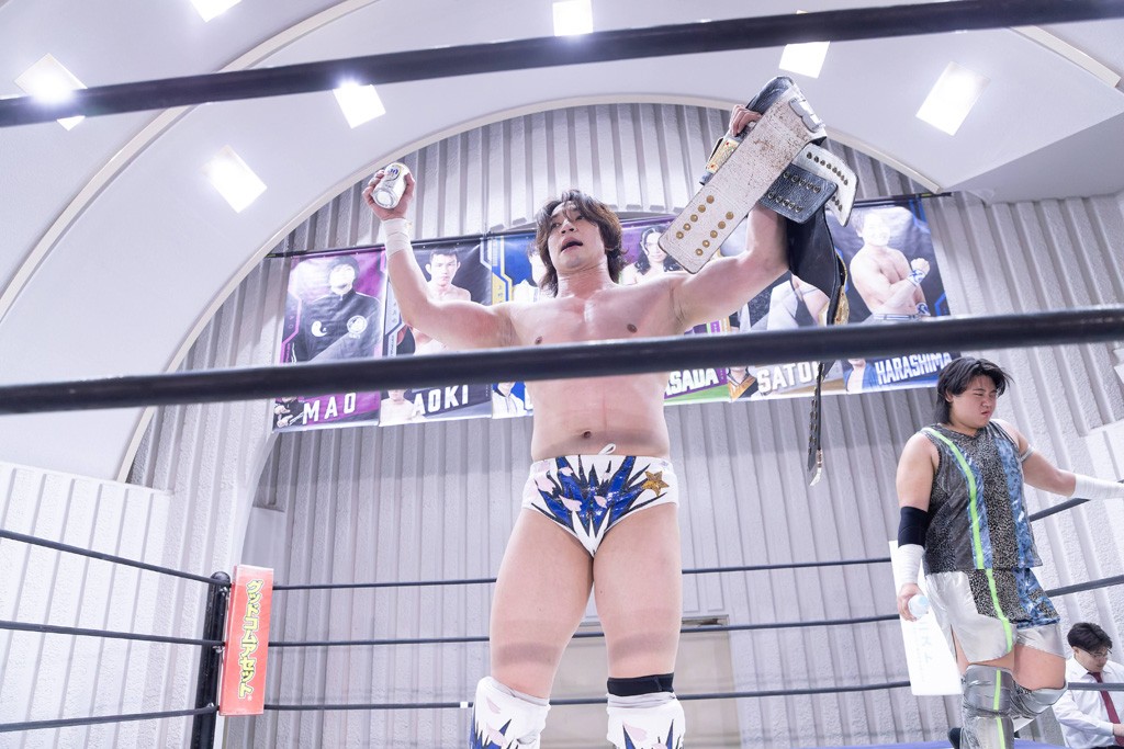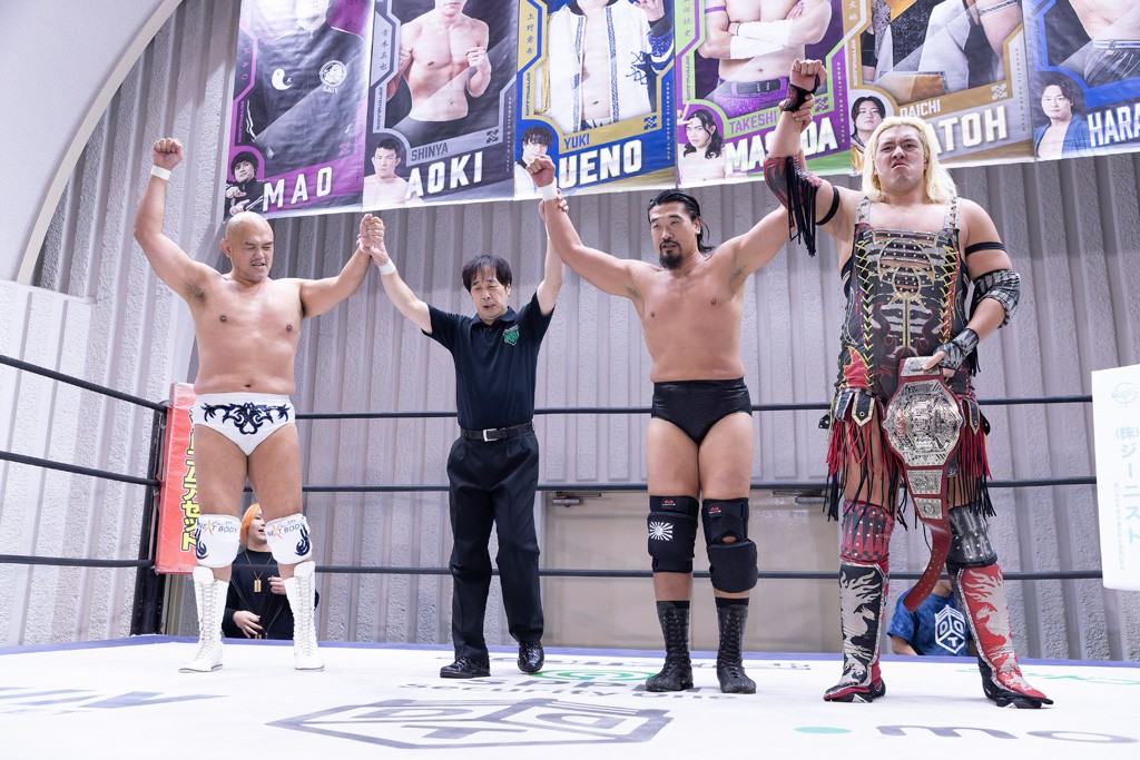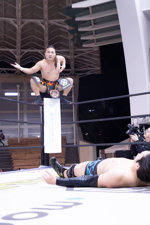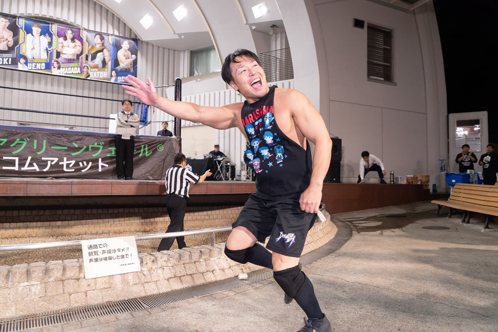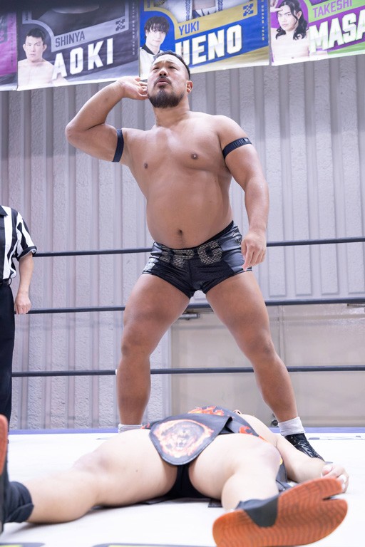 カオスな展開のメインを制した無差別級王者・上野が、2025年最後のビアガーデンプロレスを締めくくる!「11月3日にはUltimate Partyも待ってます! 宴は続くぜ!」