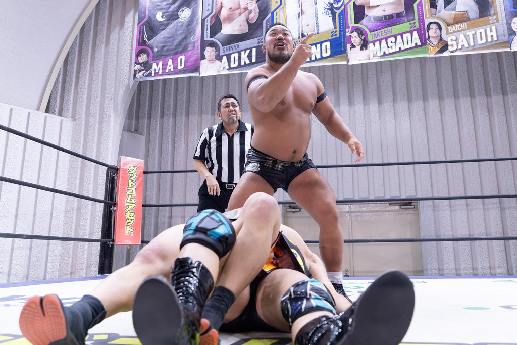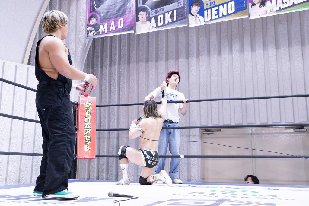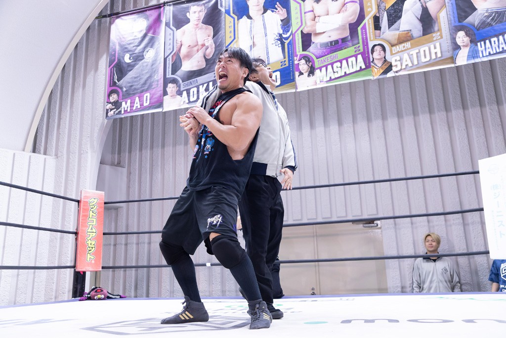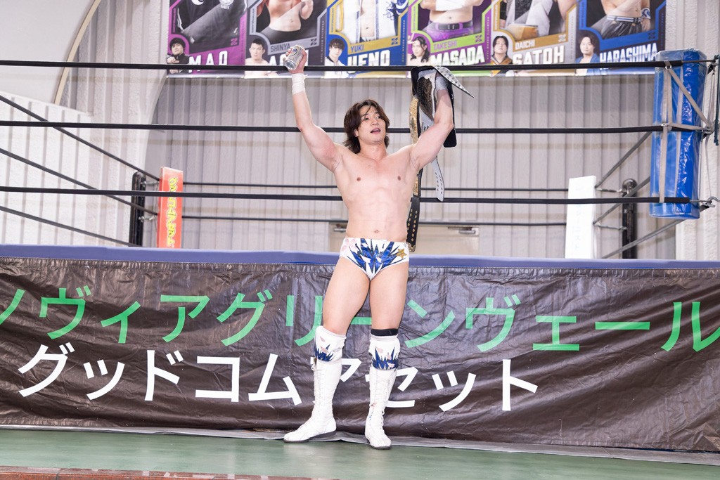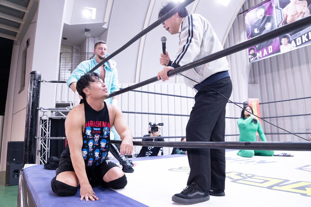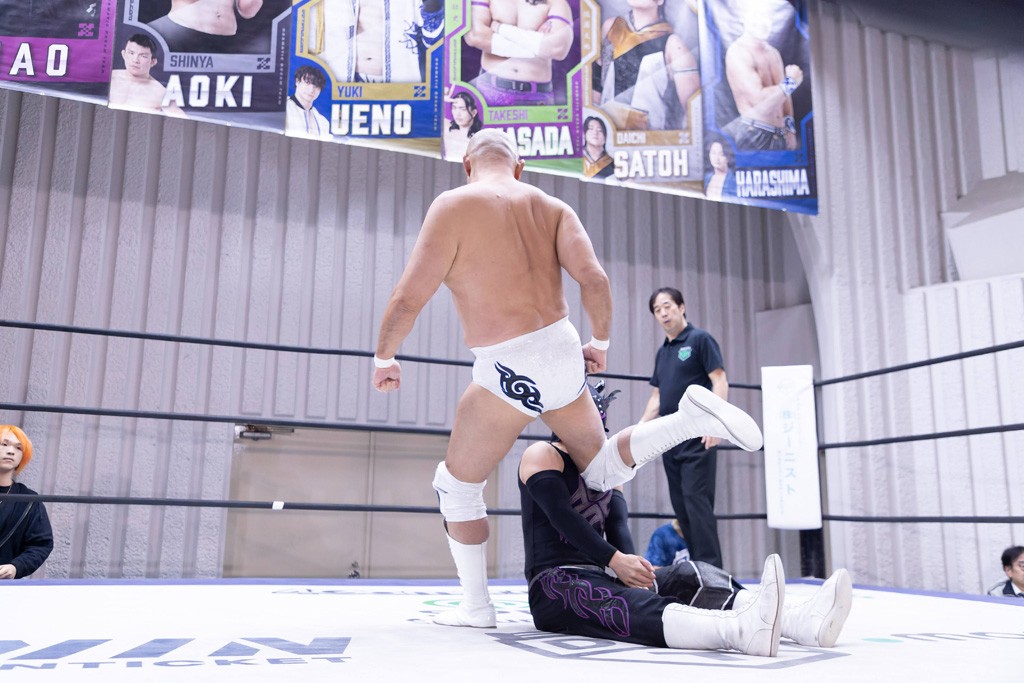 カオスな展開のメインを制した無差別級王者・上野が、2025年最後のビアガーデンプロレスを締めくくる!「11月3日にはUltimate Partyも待ってます! 宴は続くぜ!」