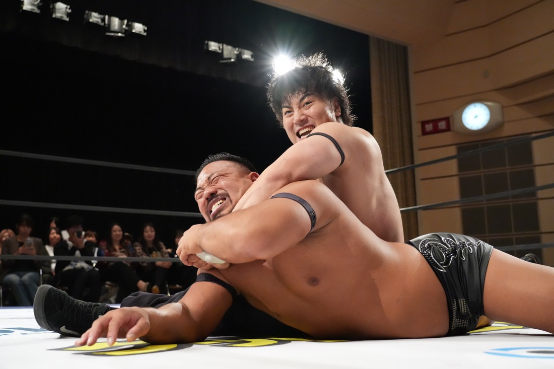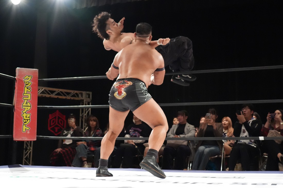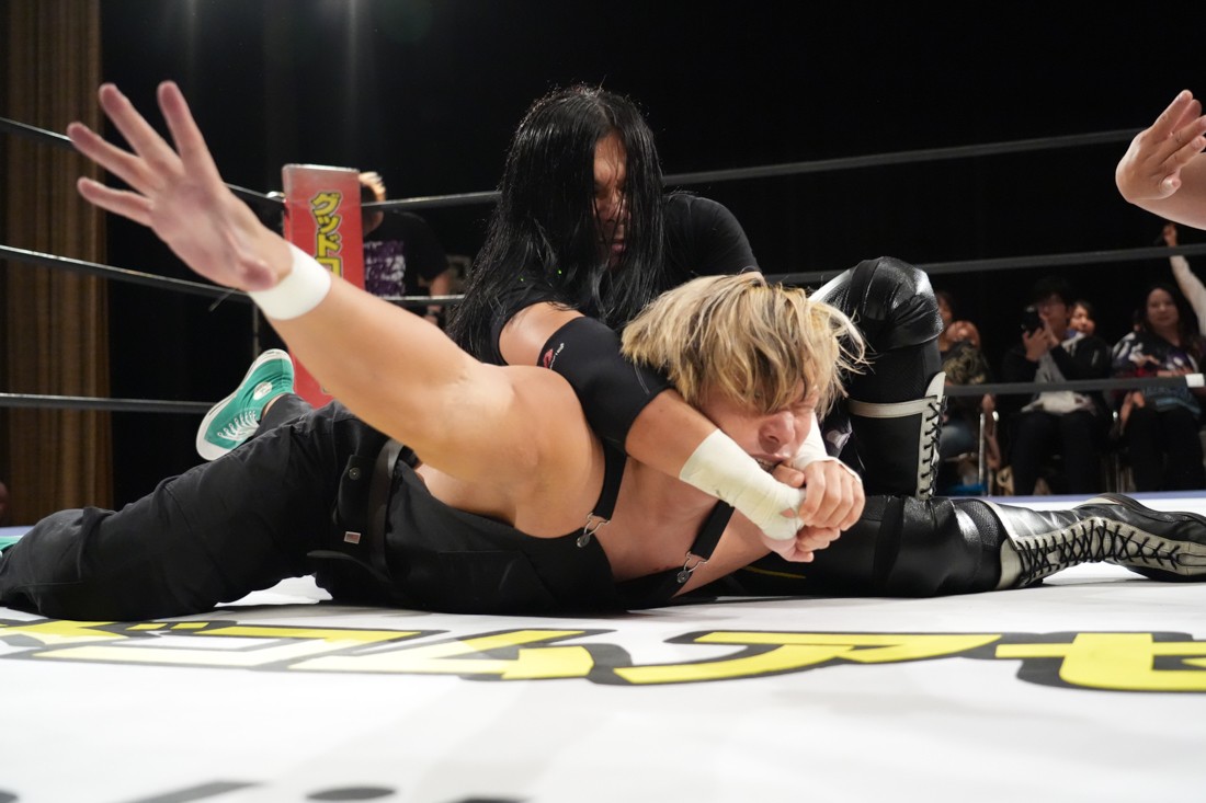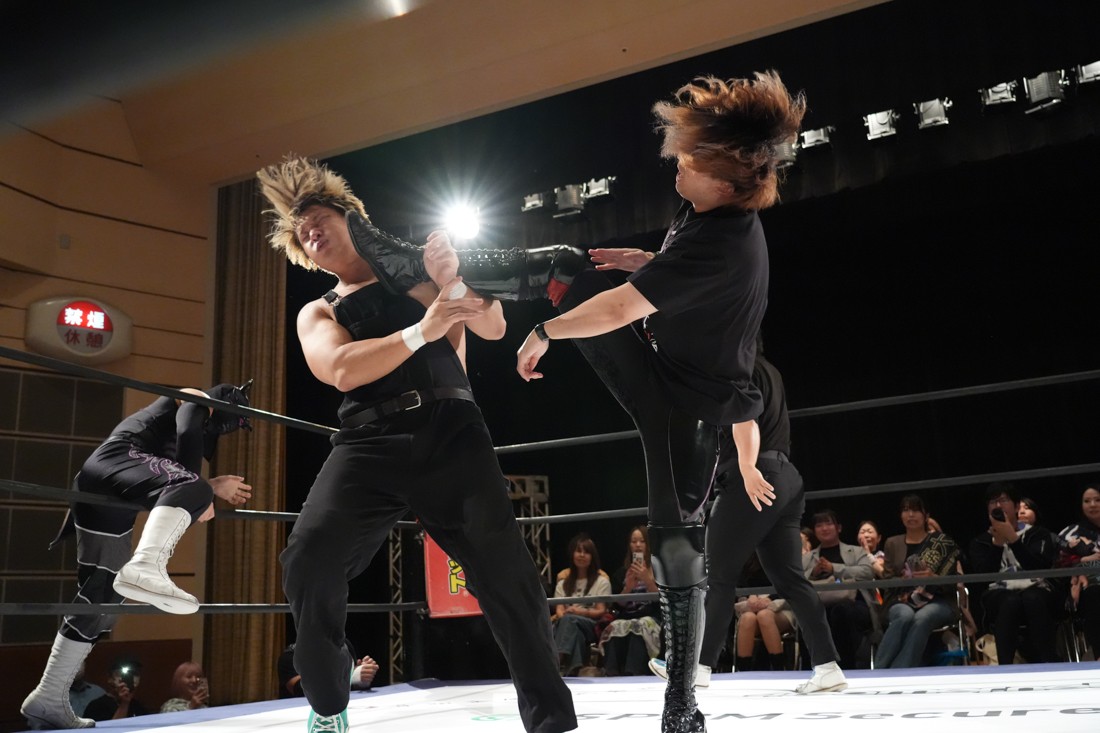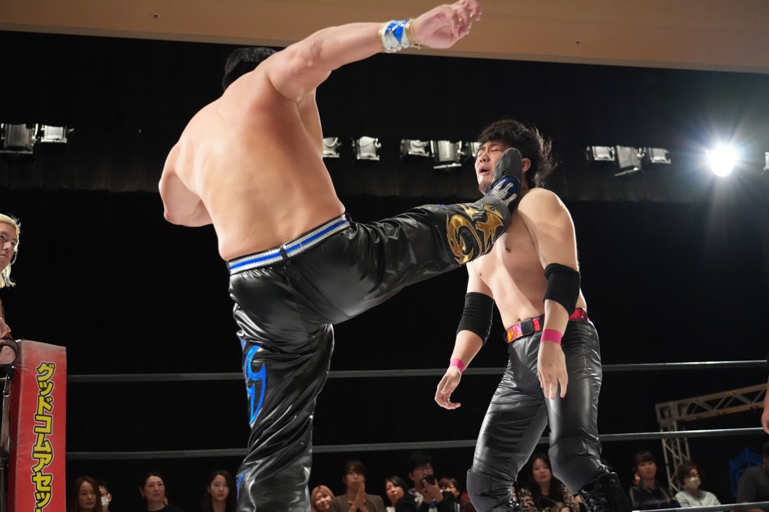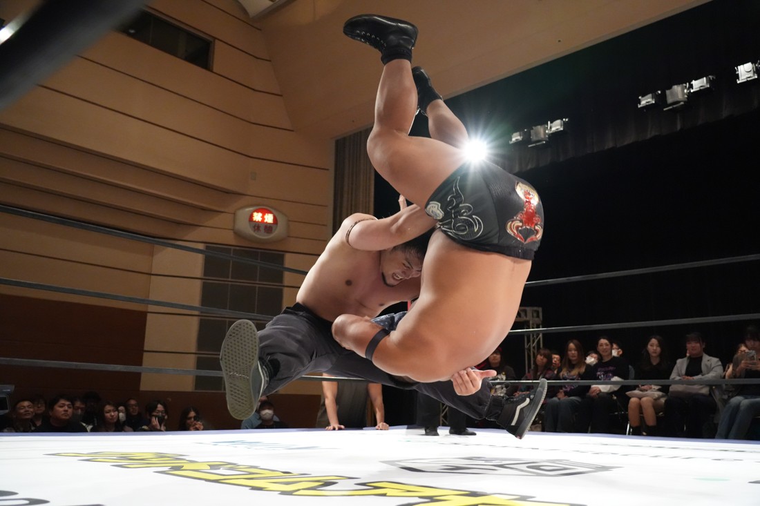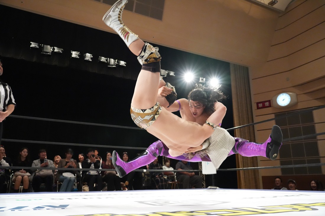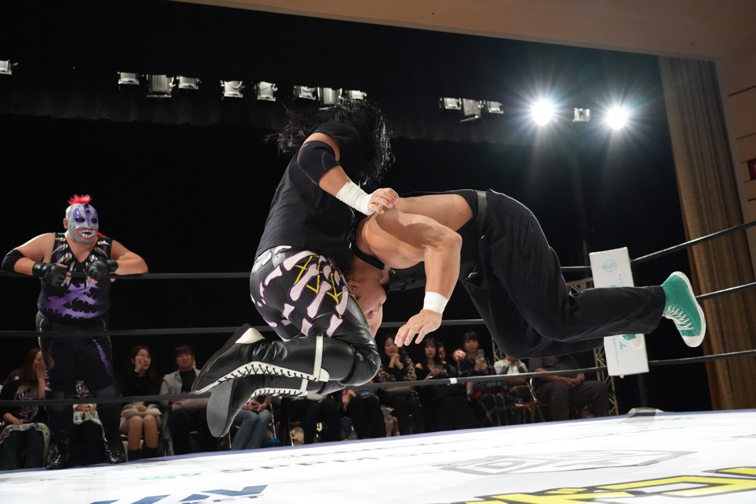 10月26日、愛知・今池ガスホールで「それいけ!イマイケモットイケ2025」が開催。セミファイナルでは前日の大阪大会に続き、11.3両国国技館大会でのKO-Dタッグ選手権の前哨戦として、今度は現タッグ王者・The Apexの飯野雄貴と、挑戦者組・STRANGE LOVE CONNECTIONのMAOがシングルマッチで対戦。