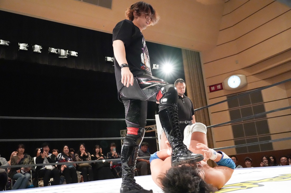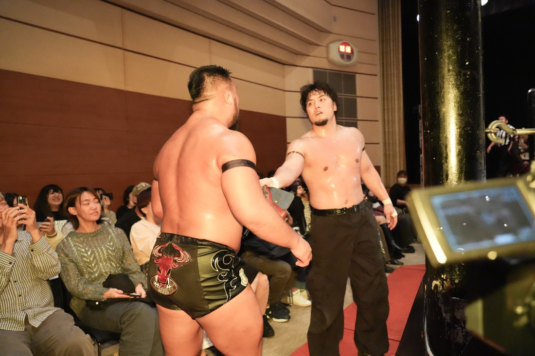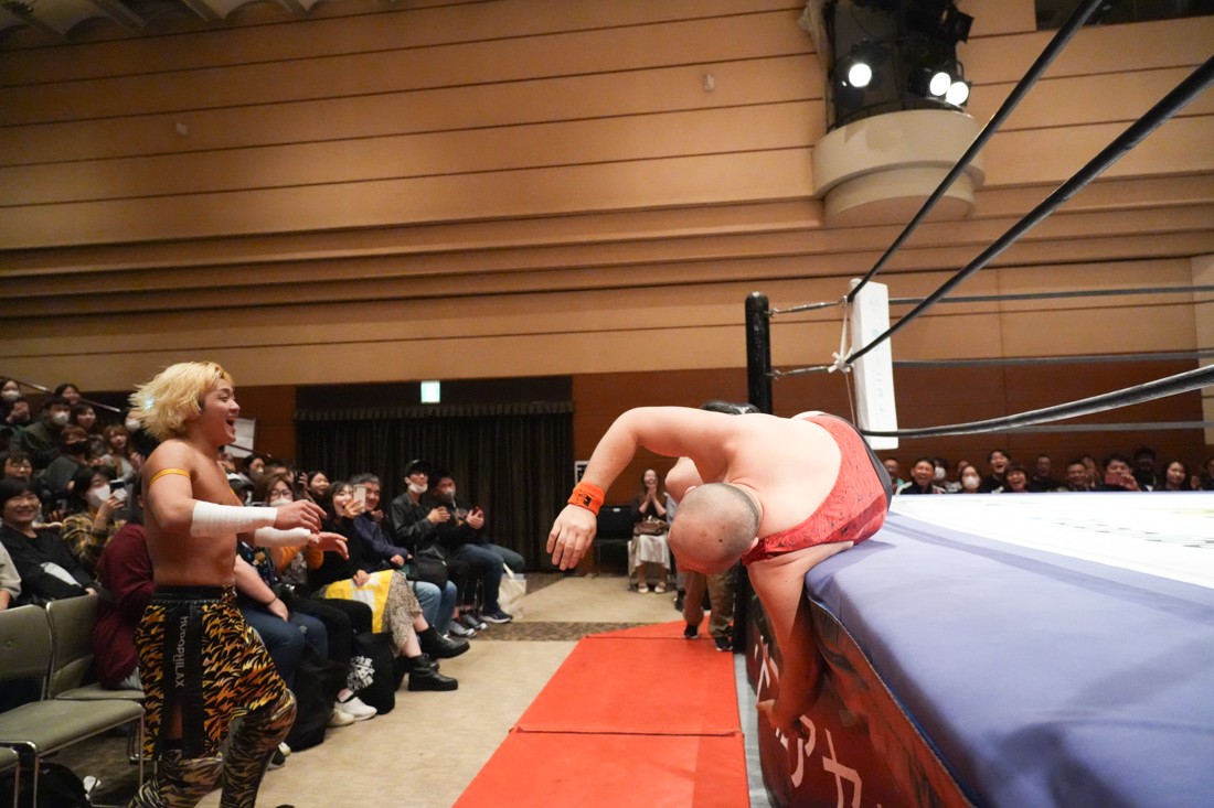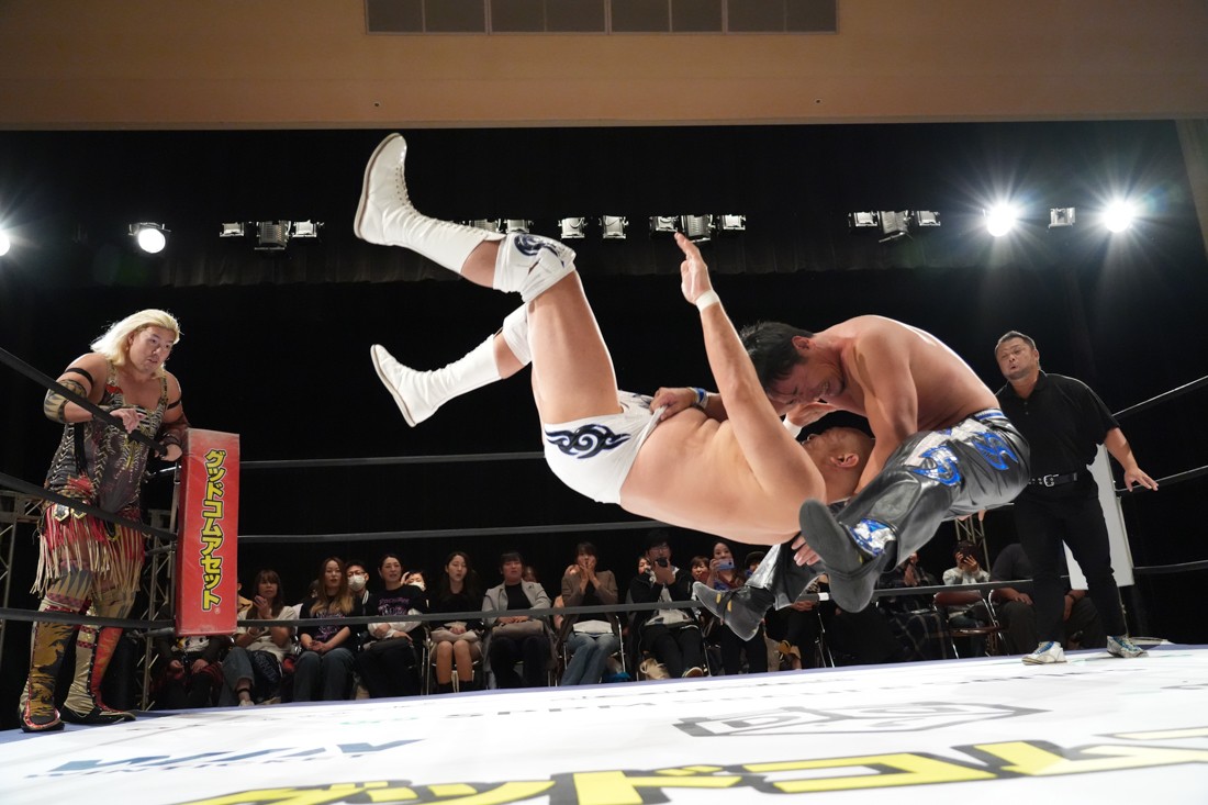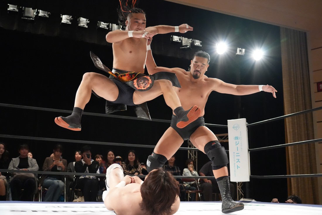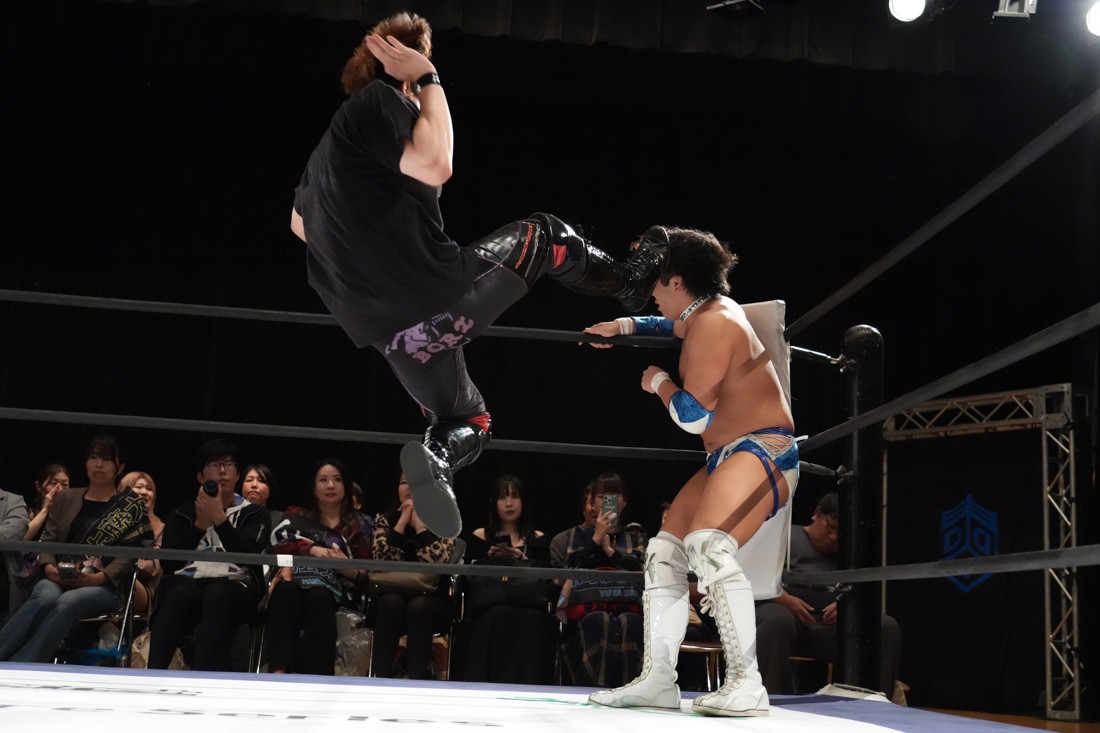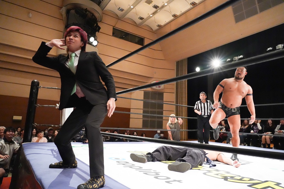 10月26日、愛知・今池ガスホールで「それいけ!イマイケモットイケ2025」が開催。セミファイナルでは前日の大阪大会に続き、11.3両国国技館大会でのKO-Dタッグ選手権の前哨戦として、今度は現タッグ王者・The Apexの飯野雄貴と、挑戦者組・STRANGE LOVE CONNECTIONのMAOがシングルマッチで対戦。
