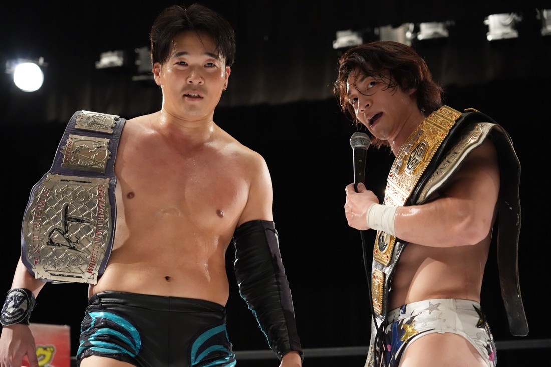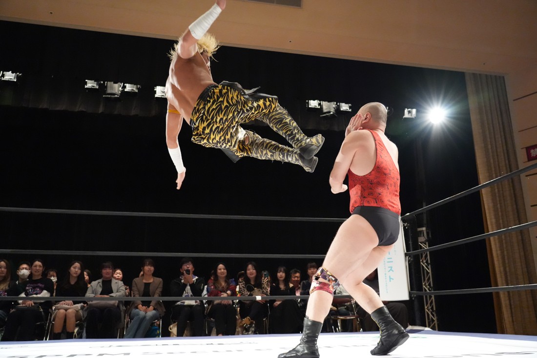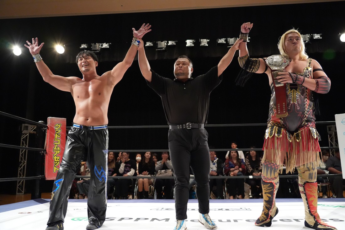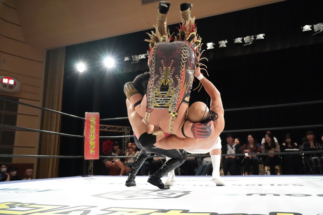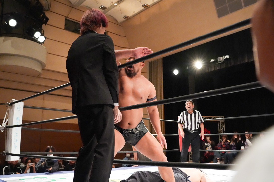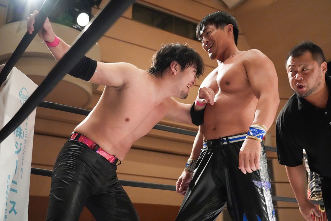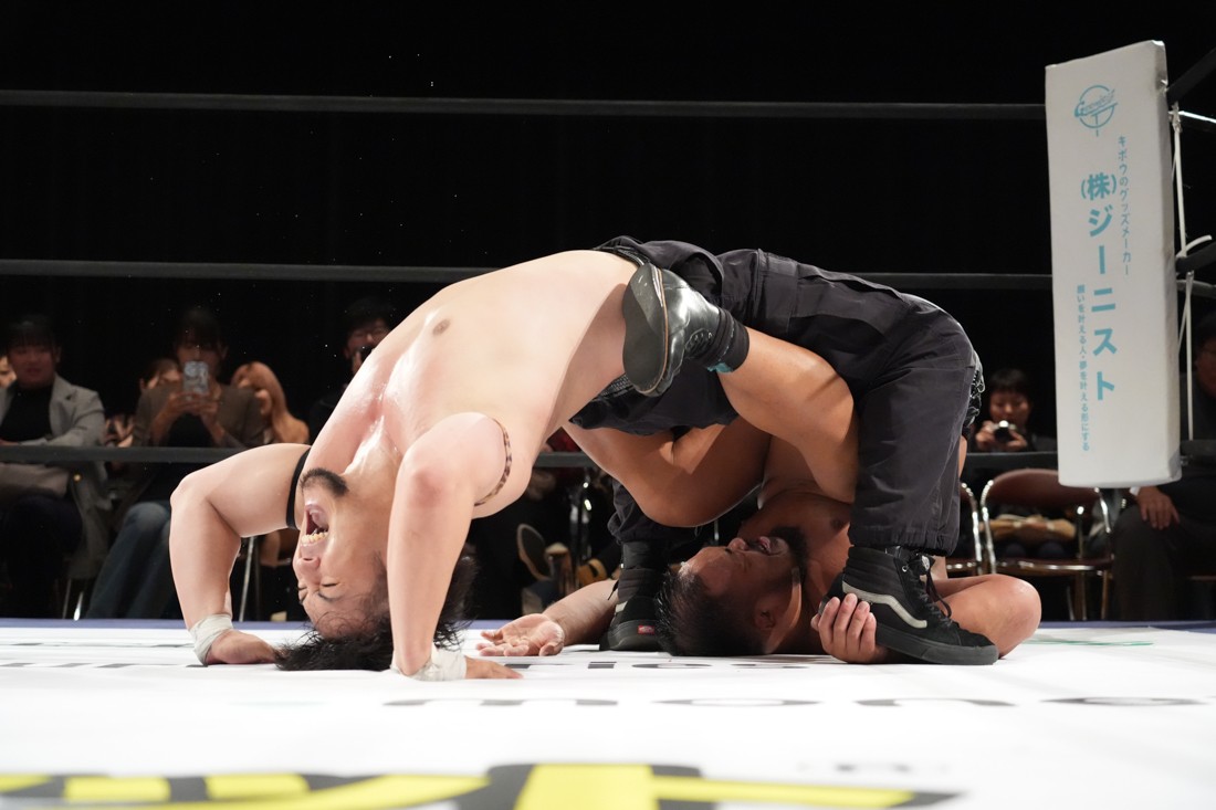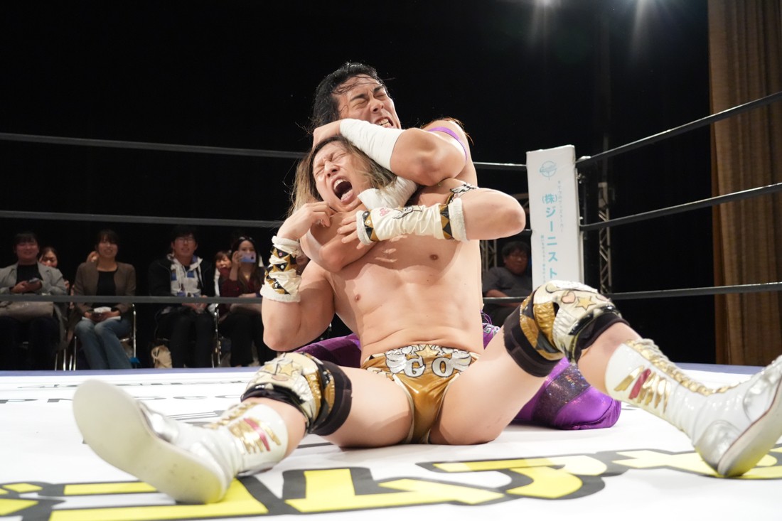 10月26日、愛知・今池ガスホールで「それいけ!イマイケモットイケ2025」が開催。セミファイナルでは前日の大阪大会に続き、11.3両国国技館大会でのKO-Dタッグ選手権の前哨戦として、今度は現タッグ王者・The Apexの飯野雄貴と、挑戦者組・STRANGE LOVE CONNECTIONのMAOがシングルマッチで対戦。