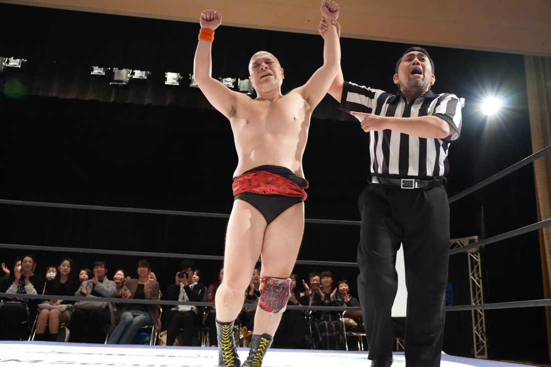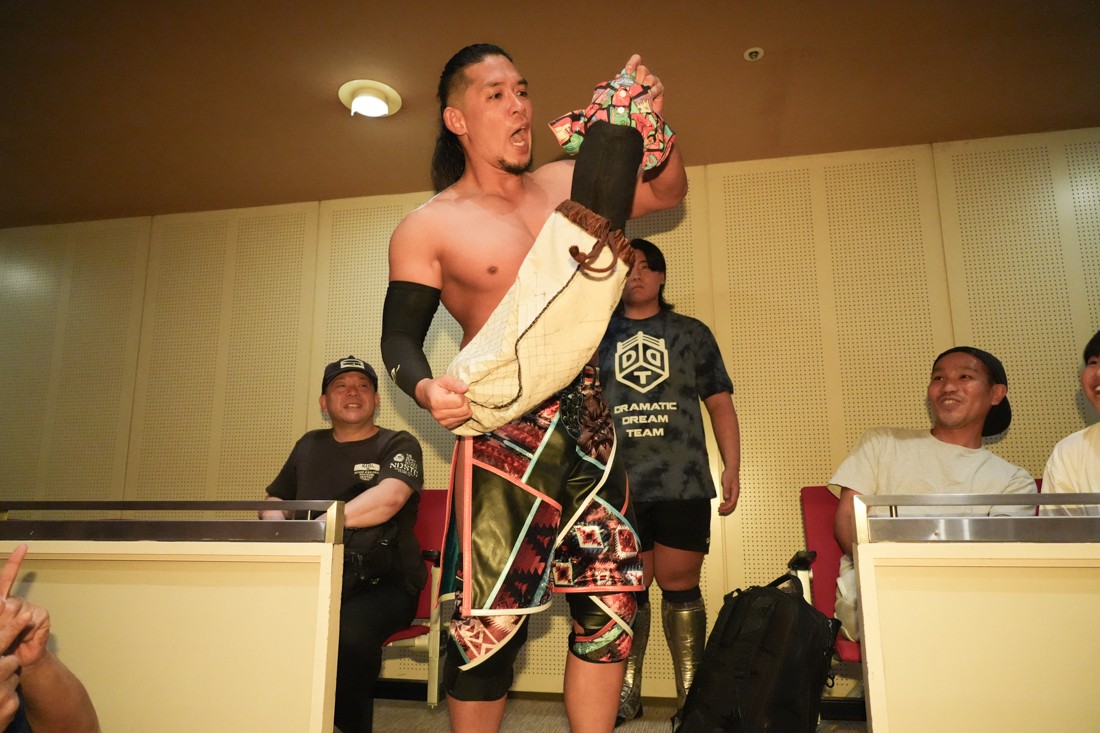 ヘビー級のパワーとジュニアヘビー級時代の動きを併せ持つスタイルで飯野に勝利。The ApexとS.L.C.の前哨戦はこれで1勝1敗。ここにチーム200キロが加わるわけだが、MAOは「これまさにUltimate Partyでしょ! DDT Ultimate Partyやりまくるぞー!」と宣言した。